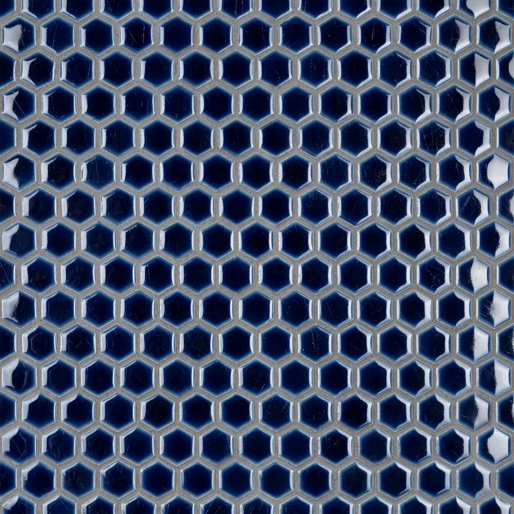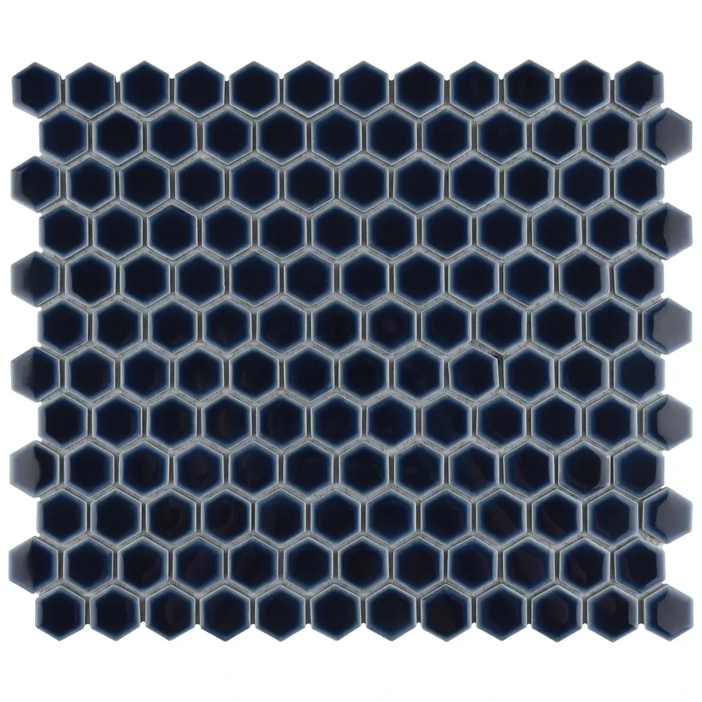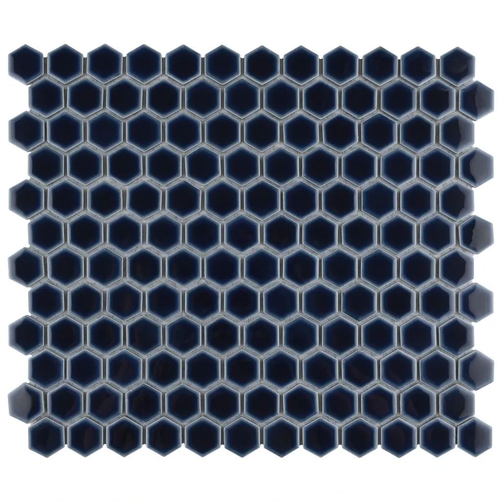 Our Hudson 1 in. Hex Smokey Blue Porcelain Mosaic Floor and Wall Tile instantly elevates spaces through a refreshing dose of geometric design. Featuring a reactive glaze with an eye-drop effect, these tiles have a dark royal blue color tone that blend to white around the edges. This mosaic is a pleasing mixture of cool-toned tints with additional dimension added by the smooth, high-gloss finish. This porcelain mosaic floor and wall tile is unique yet simplistic enough to integrate into any design, ranging from traditional style renovations to modern home projects. Its impervious and frost-resistant features make this an ideal choice for both commercial and residential indoor and outdoor floor and wall installations including, kitchen backsplashes, bathroom showers and accent walls. This hexagon mosaic can be used as a whole sheet or cut into smaller strips as an accent piece. It is a perfect choice on its own or coordinated with other colors in our Hudson Hex series. Tile is the better choice for your space. This tile is made from natural ingredients, making it a healthy choice as it is free from allergens, VOCs, formaldehyde and PVC. 11.2 square feet, 10 pieces per case. Case weight is 19 lbs. Grade 1, first-quality porcelain tile for floor and wall use 11.88 in. width x 13.25 in. length x 0.19 in. thick mesh-mounted mosaic Glazed, smooth finish with a high sheen and slight variation in tone PEI Rating II is suitable for all interior walls and light foot traffic such as powder rooms Impervious tiles have a water absorption of less than 0.5% for indoor and outdoor use and are frost resistant This tile is not ADA approved for slip resistance with a DCOF value less than 0.42. Completely frost resistant for indoor or outdoor applications; use a latex-modified thinset for acceptable bond strength Please note: A sample of this product may be a partial piece cut from the full size tile in order to provide an affordable and convenient way for customers to judge the quality and finish of this item. Samples are not returnable.