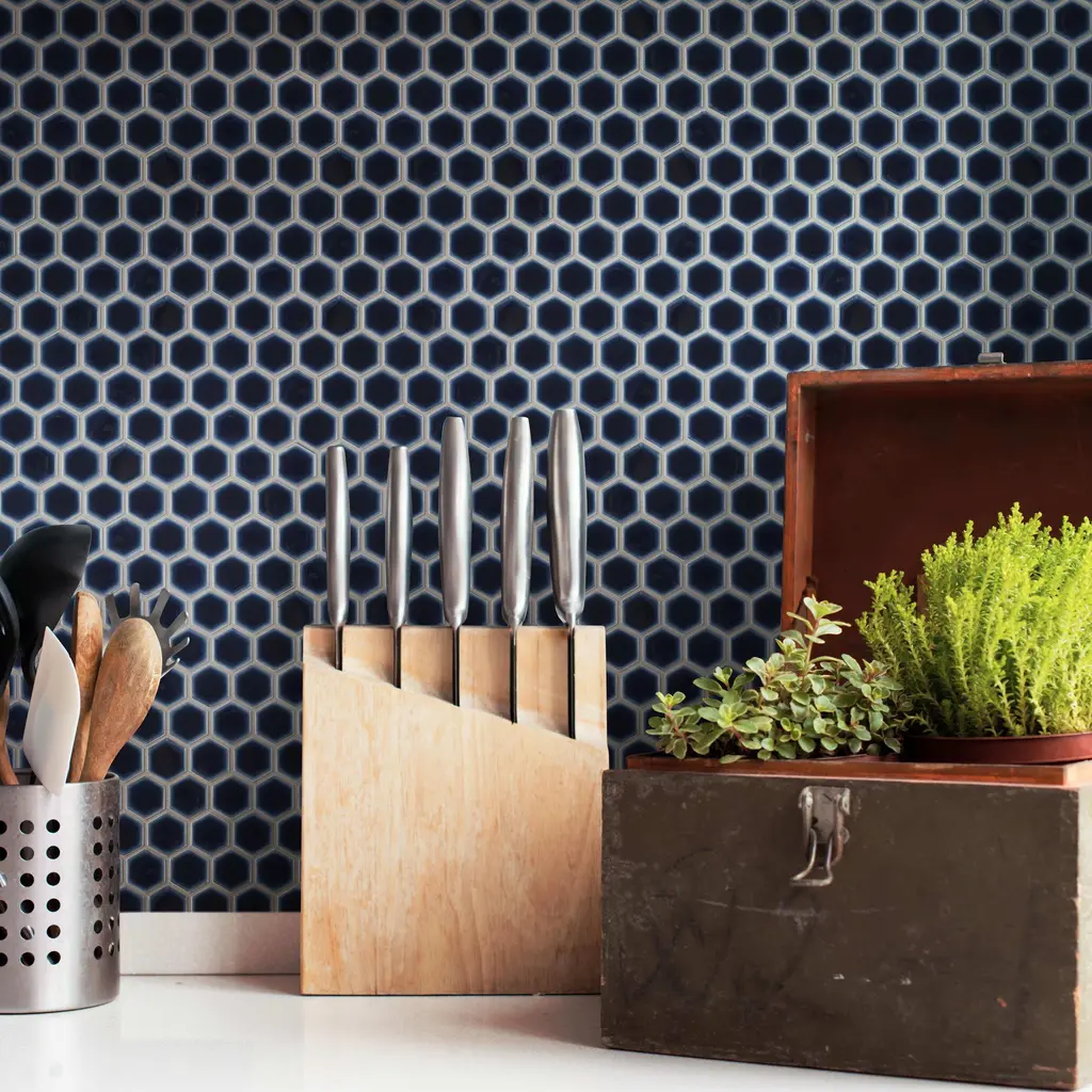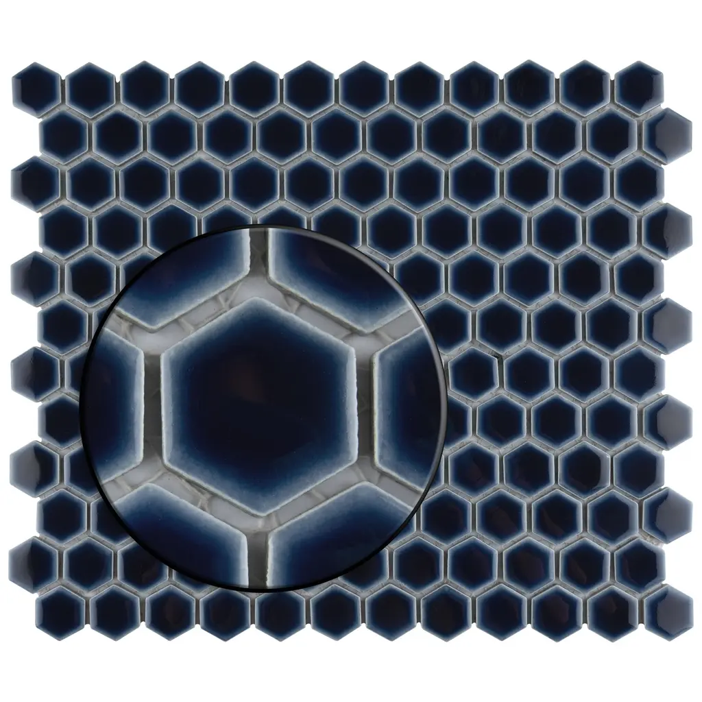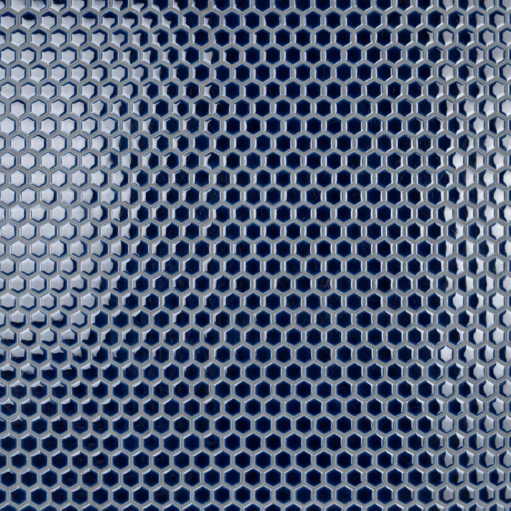 Our Hudson 1 in. Hex Smokey Blue Porcelain Mosaic Floor and Wall Tile instantly elevates spaces through a refreshing dose of geometric design. Featuring a reactive glaze with an eye-drop effect, these tiles have a dark royal blue color tone that blend to white around the edges. This mosaic is a pleasing mixture of cool-toned tints with additional dimension added by the smooth, high-gloss finish. This porcelain mosaic floor and wall tile is unique yet simplistic enough to integrate into any design, ranging from traditional style renovations to modern home projects. Its impervious and frost-resistant features make this an ideal choice for both commercial and residential indoor and outdoor floor and wall installations including, kitchen backsplashes, bathroom showers and accent walls. This hexagon mosaic can be used as a whole sheet or cut into smaller strips as an accent piece. It is a perfect choice on its own or coordinated with other colors in our Hudson Hex series. Tile is the better choice for your space. This tile is made from natural ingredients, making it a healthy choice as it is free from allergens, VOCs, formaldehyde and PVC. 11.2 square feet, 10 pieces per case. Case weight is 19 lbs. Grade 1, first-quality porcelain tile for floor and wall use 11.88 in. width x 13.25 in. length x 0.19 in. thick mesh-mounted mosaic Glazed, smooth finish with a high sheen and slight variation in tone PEI Rating II is suitable for all interior walls and light foot traffic such as powder rooms Impervious tiles have a water absorption of less than 0.5% for indoor and outdoor use and are frost resistant This tile is not ADA approved for slip resistance with a DCOF value less than 0.42. Completely frost resistant for indoor or outdoor applications; use a latex-modified thinset for acceptable bond strength Please note: A sample of this product may be a partial piece cut from the full size tile in order to provide an affordable and convenient way for customers to judge the quality and finish of this item. Samples are not returnable.