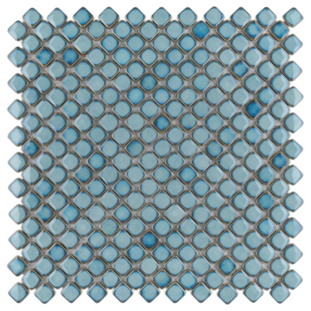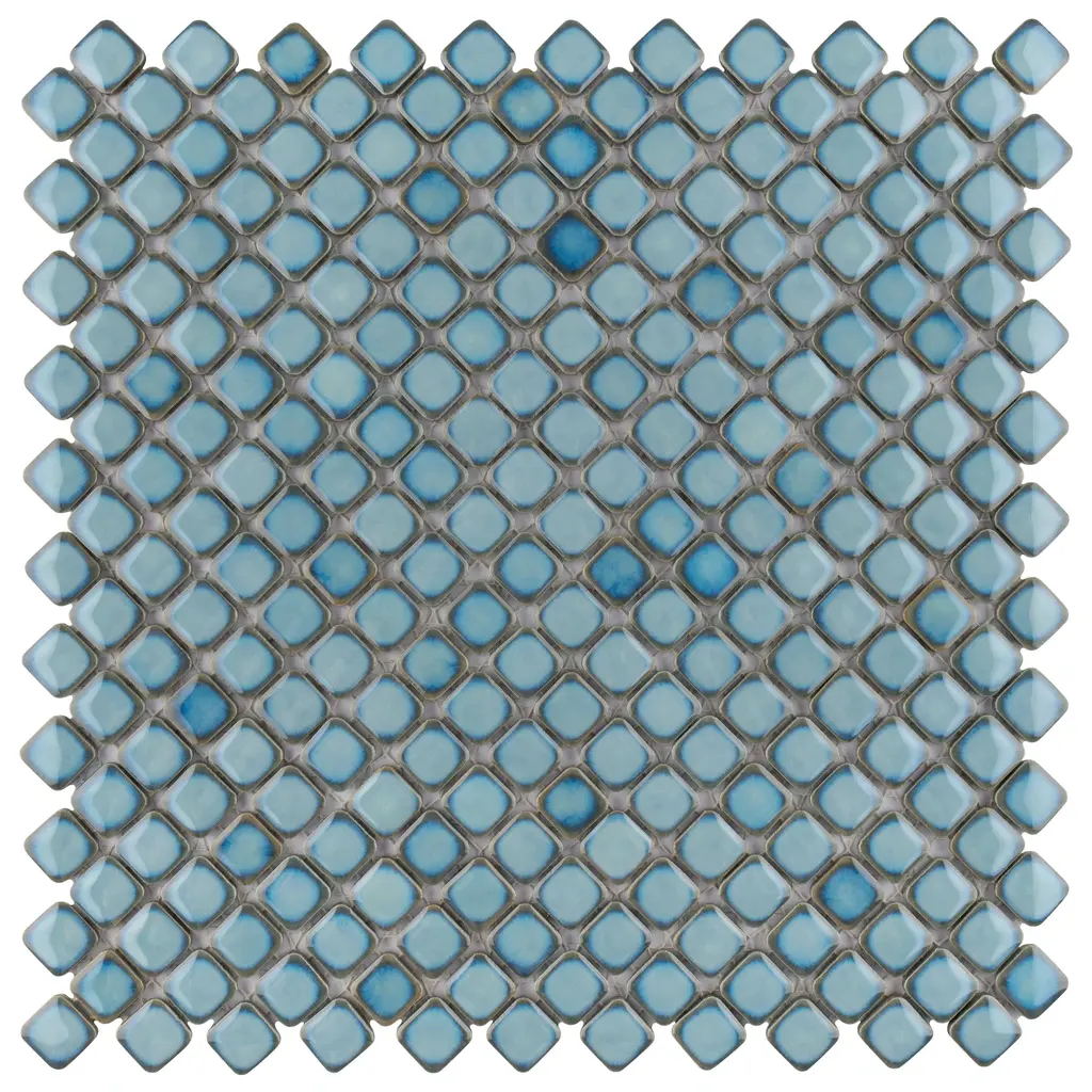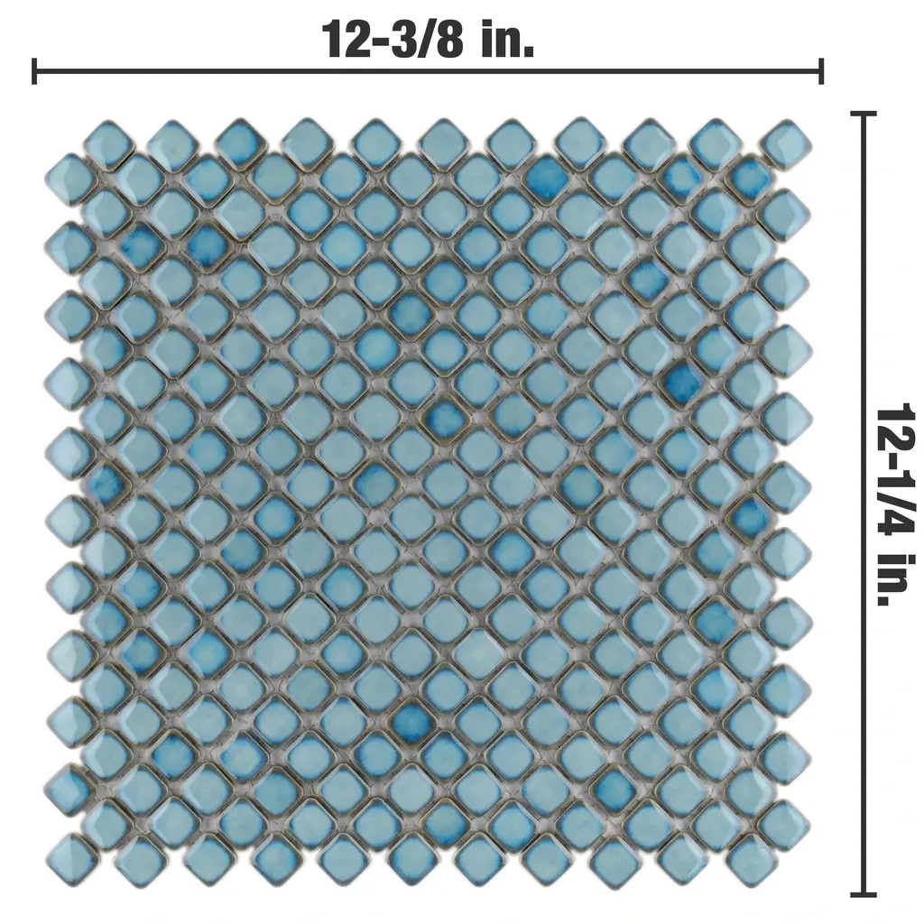 Offering a mosaic look, our Hudson Diamond Marine Porcelain Floor and Wall Tile features a smooth, glossy finish, providing decorative appeal that adapts to a variety of stylistic contexts. With its impervious, frost-resistant features, this mosaic is an ideal selection for both indoor and outdoor commercial and residential installations, including kitchens, bathrooms, backsplashes, showers, hallways, entryways, patios and fireplace facades. This tile is a perfect choice on its own or paired with other products in the Hudson Collection. Tile is the better choice for your space! 10.6 square feet, 10 pieces per case. Case weight is 19.4 lbs. Grade 1, first-quality porcelain tile for floor and wall use 12.25 in. width x 12.38 in. length x 0.2 in. thick mesh-mounted mosaic Glazed, smooth finish with a high sheen and slight variation in tone PEI Rating IV has high resistance to abrasion and is suitable for heavy-duty residential and commercial kitchens, hotels, exhibition and sales rooms with some dirt conditions Impervious tiles have a water absorption of less than 0.5% for indoor and outdoor use and are frost resistant This tile has a COF wet rating less than or equal to 0.50 and is considered to have a marginally low skid resistance. This tile is not ADA approved for slip resistance. Completely frost resistant for indoor or outdoor applications; use a latex-modified thinset for acceptable bond strength Please note: A sample of this product may be a partial piece cut from the full size tile in order to provide an affordable and convenient way for customers to judge the quality and finish of this item. Samples are not returnable.