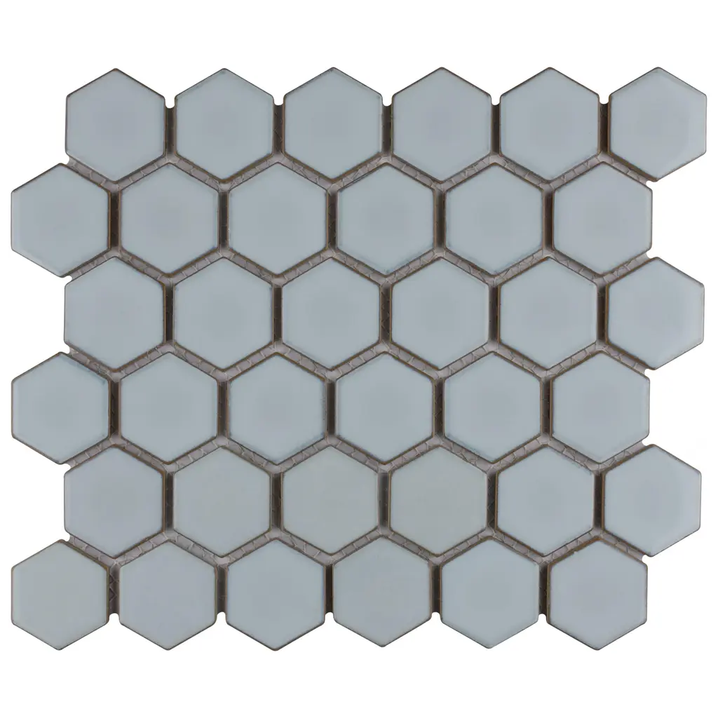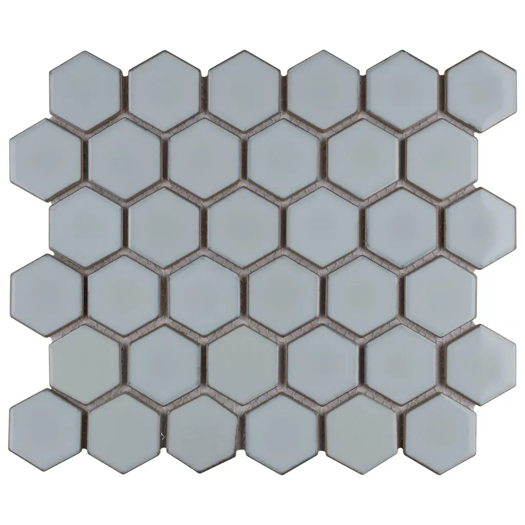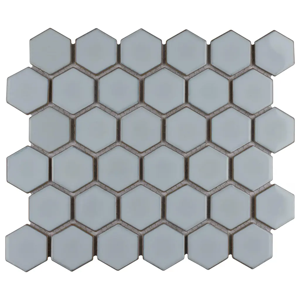 As a modern, enlarged deviation from the classic hexagon mosaic, our Hudson Due 2 in. Hex Silk White Porcelain Floor and Wall Mosaic Tile instantly elevates spaces through a refreshing dose of geometric design. Featuring a reactive glaze with an eye-drop effect, these tiles have a soft, silk white color tone with a subtle baby blue undertone that blend to taupe around the edges. This porcelain mosaic floor and wall tile creates a uniquely sporadic design through a pleasing mixture of cool-toned tints with additional dimension added by the smooth, high-gloss finish. Its impervious and frost-resistant features make this an ideal choice for both commercial and residential indoor and outdoor floor and wall installations including, kitchen backsplashes, bathroom showers and accent walls. This hexagon mosaic can be used as a whole sheet or cut into smaller strips as an accent piece. It is a perfect choice on its own or coordinated with other colors in our Hudson Due Hex series. Tile is the better choice for your space. This tile is made from natural ingredients, making it a healthy choice as it is free from allergens, VOCs, formaldehyde and PVC. 9.7 square feet, 10 pieces per case. Case weight is 20.78 lbs. Grade 1, first-quality porcelain tile for floor and wall use 10.88 in. width x 12.63 in. length x 0.19 in. thick mesh-mounted mosaic Glazed, smooth finish with a high sheen and slight variation in tone PEI Rating IV has high resistance to abrasion and is suitable for heavy-duty residential and commercial kitchens, hotels, exhibition and sales rooms with some dirt conditions Impervious tiles have a water absorption of less than 0.5% for indoor and outdoor use and are frost resistant This tile is not ADA approved for slip resistance with a DCOF value less than 0.42. Completely frost resistant for indoor or outdoor applications; use a latex-modified thinset for acceptable bond strength Please note: A sample of this product may be a partial piece cut from the full size tile in order to provide an affordable and convenient way for customers to judge the quality and finish of this item. Samples are not returnable.