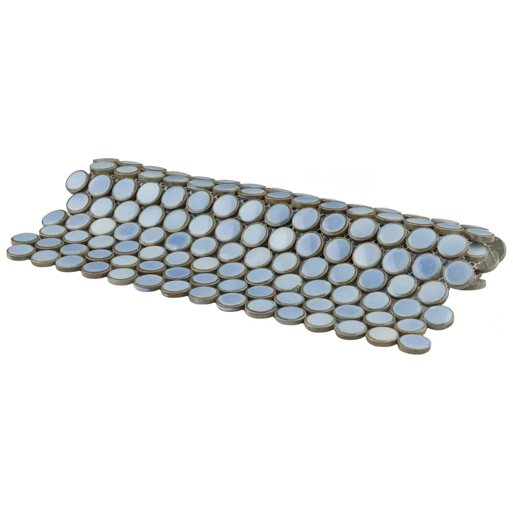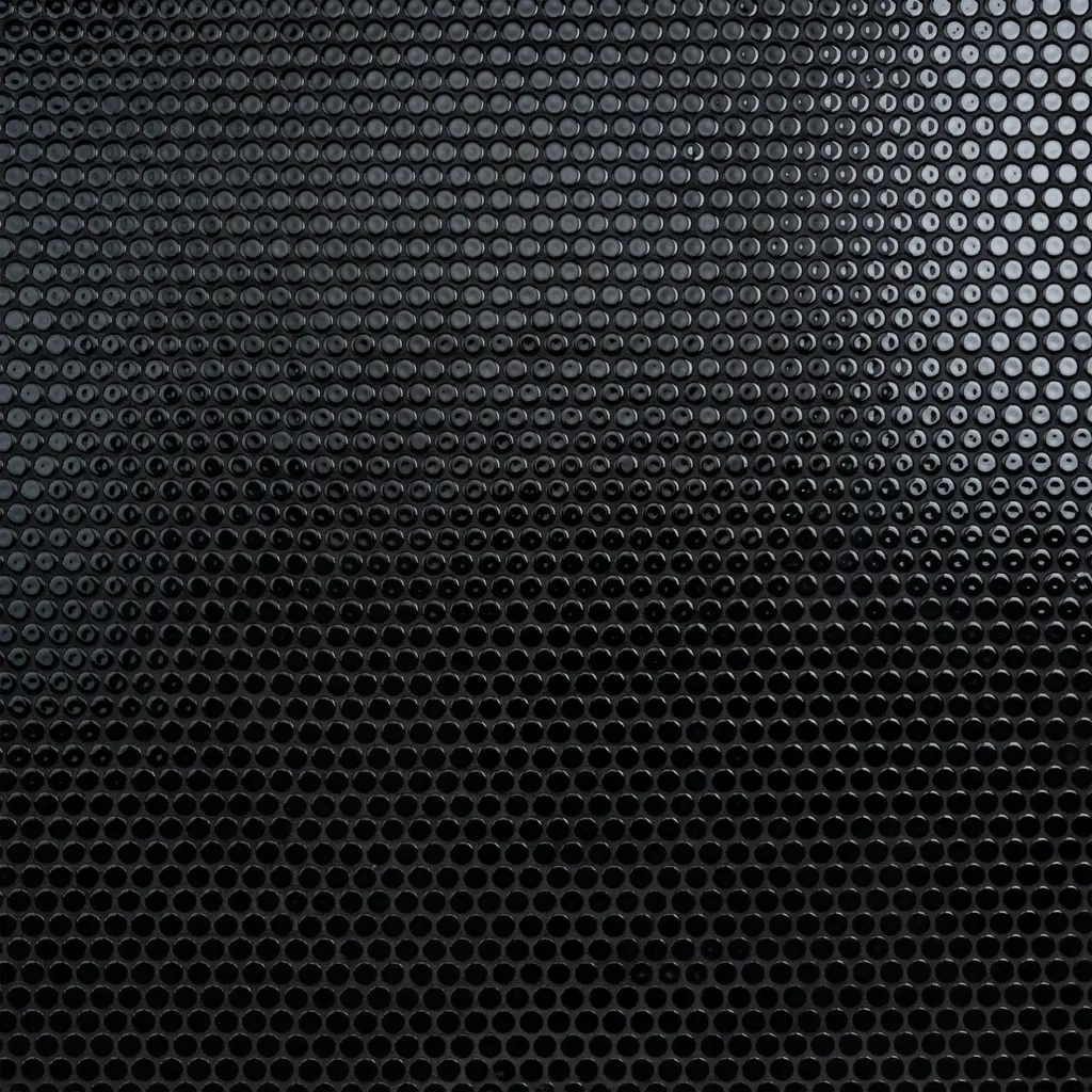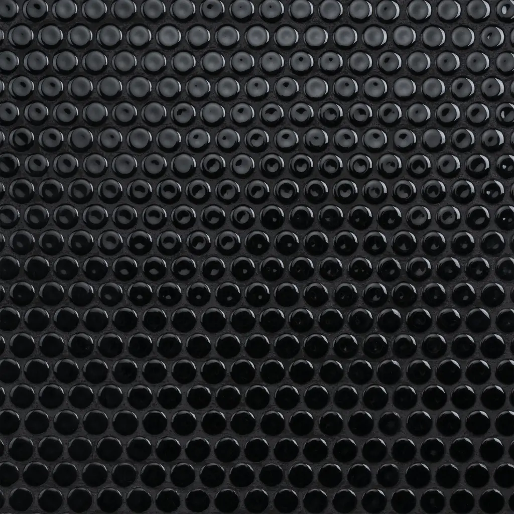 Our Hudson Penny Round Glossy Black Porcelain Mosaic Tile lends a refreshing aesthetic to the classic penny round shape. This tile features a uniformly glazed surface with a smooth texture and a glossy black color tone. It offers a versatile appearance that is unique yet simplistic enough to integrate into any design, ranging from traditional style renovations to modern home projects. Its impervious and frost-resistant features make this penny tile an ideal choice for indoor and outdoor floor and wall installations including, kitchen backsplashes, bathroom showers and accent walls. This penny round tile can be used as a whole sheet or cut into smaller strips as an accent piece. It is a perfect choice on its own or coordinated with other colors in our Hudson Penny Round series. 10.5 square feet, 10 pieces per case. Case weight is 18.02 lbs. Grade 1, first-quality porcelain tile for floor and wall use 11.88 in. width x 12.63 in. length x 0.21 in. thick mesh-mounted mosaic Glazed, smooth finish with a high sheen and uniform appearance in tone PEI Rating II is suitable for all interior walls and light foot traffic such as powder rooms Impervious tiles have a water absorption of less than 0.5% for indoor and outdoor use and are frost resistant This tile is not ADA approved for slip resistance with a DCOF value less than 0.42. Completely frost resistant for indoor or outdoor applications; use a latex-modified thinset for acceptable bond strength Please note: A sample of this product may be a partial piece cut from the full size tile in order to provide an affordable and convenient way for customers to judge the quality and finish of this item. Samples are not returnable.