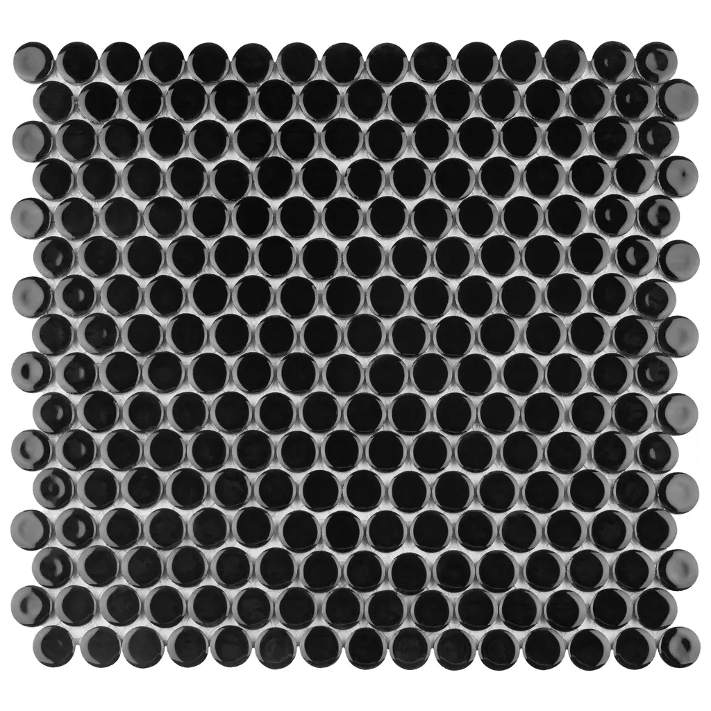 Merola Tile Hudson Penny Round Glossy Black 11-7/8" X 12-5/8" Porcelain Floor And Wall Tile - Sample Swatch