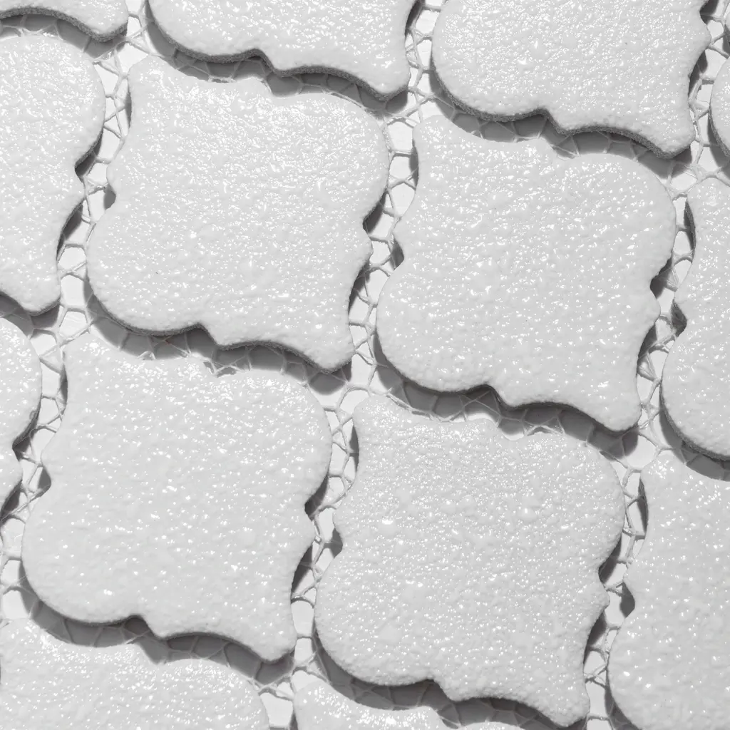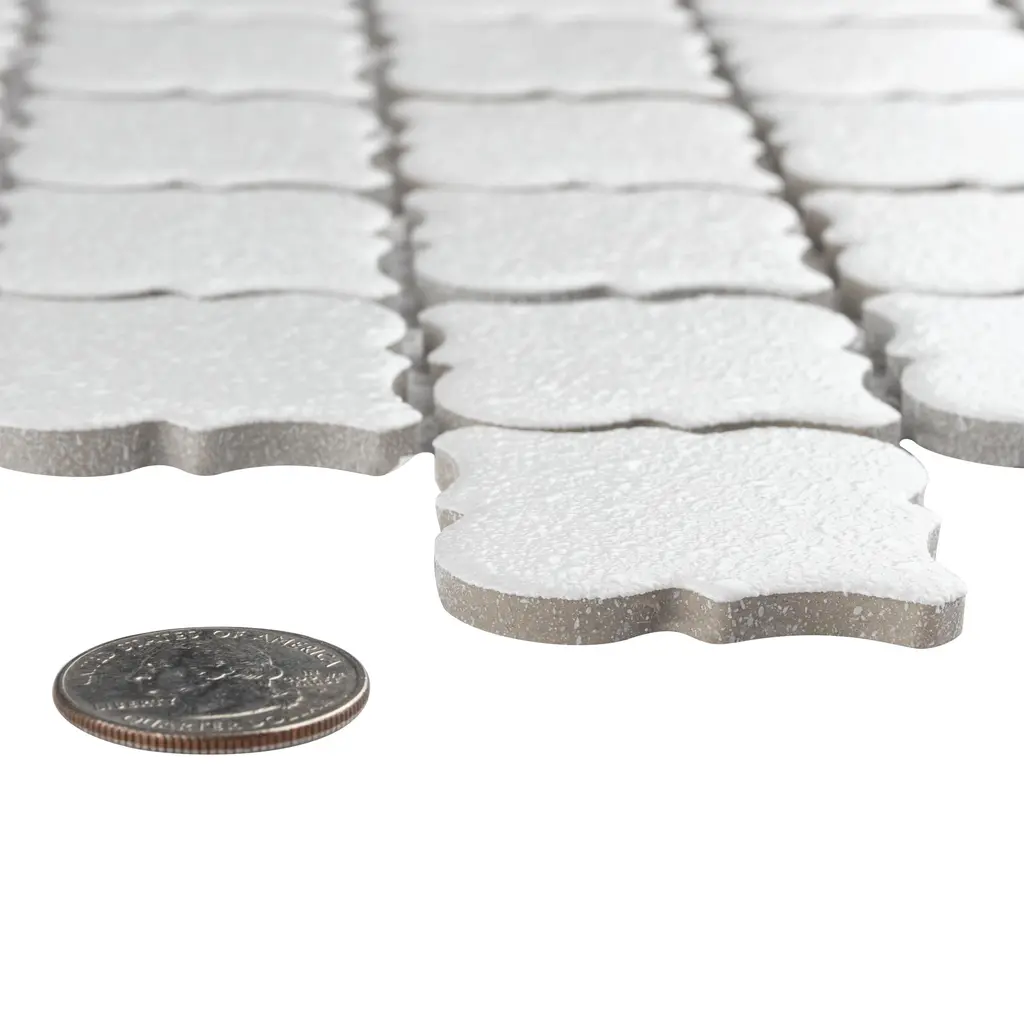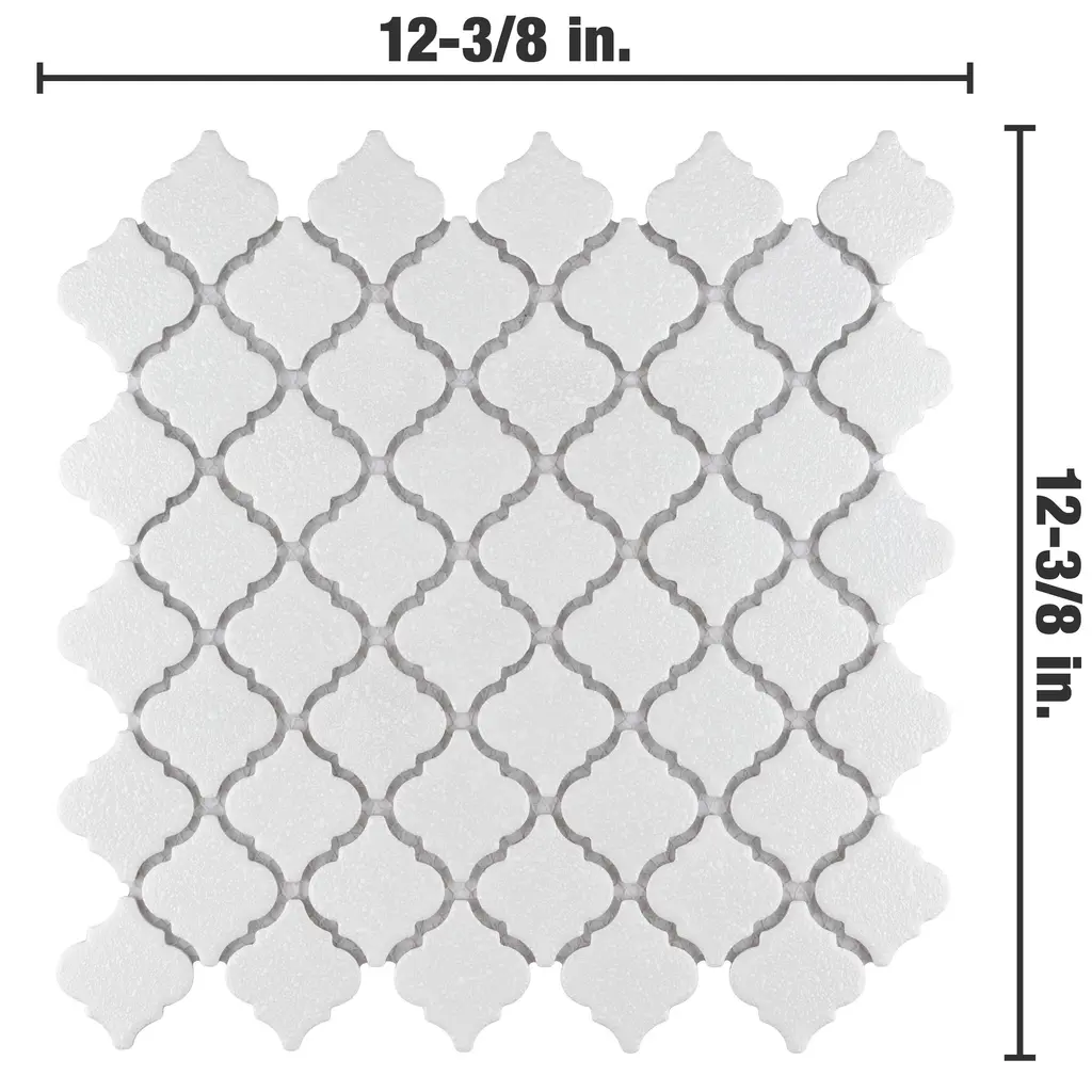 Offering a mosaic look, our Hudson Tangier Crystalline White Porcelain Floor and Wall Tile features a smooth, glossy finish, providing decorative appeal that adapts to a variety of stylistic contexts. With its impervious, frost-resistant features, this mosaic is an ideal selection for both indoor and outdoor residential installations, including kitchens, bathrooms, backsplashes, showers, hallways and fireplace facades. This tile is a perfect choice on its own or paired with other products in the Hudson Collection. Tile is the better choice for your space! 11.0 square feet, 10 pieces per case. Case weight is 21.2 lbs. Grade 1, first-quality porcelain tile for floor and wall use 12.38 in. width x 12.38 in. length x 0.2 in. thick mesh-mounted mosaic Glazed, smooth finish with a high sheen and uniform appearance in tone PEI Rating III is suitable for medium-duty residential floors including kitchens, halls, corridors, balconies, terraces and areas used more often with normal footwear and small amounts of dirt Impervious tiles have a water absorption of less than 0.5% for indoor and outdoor use and are frost resistant This tile is not ADA approved for slip resistance with a DCOF value less than 0.42. Completely frost resistant for indoor or outdoor applications; use a latex-modified thinset for acceptable bond strength Please note: A sample of this product may be a partial piece cut from the full size tile in order to provide an affordable and convenient way for customers to judge the quality and finish of this item. Samples are not returnable.
