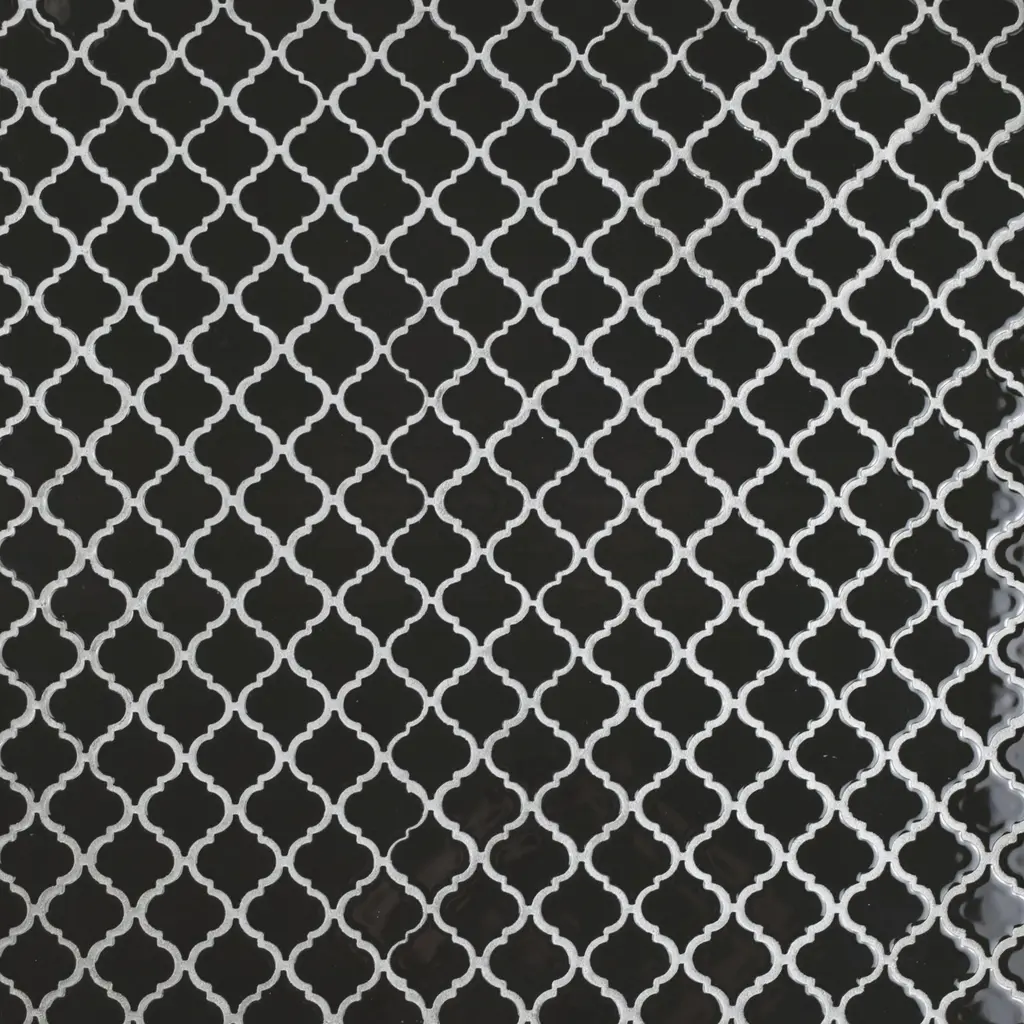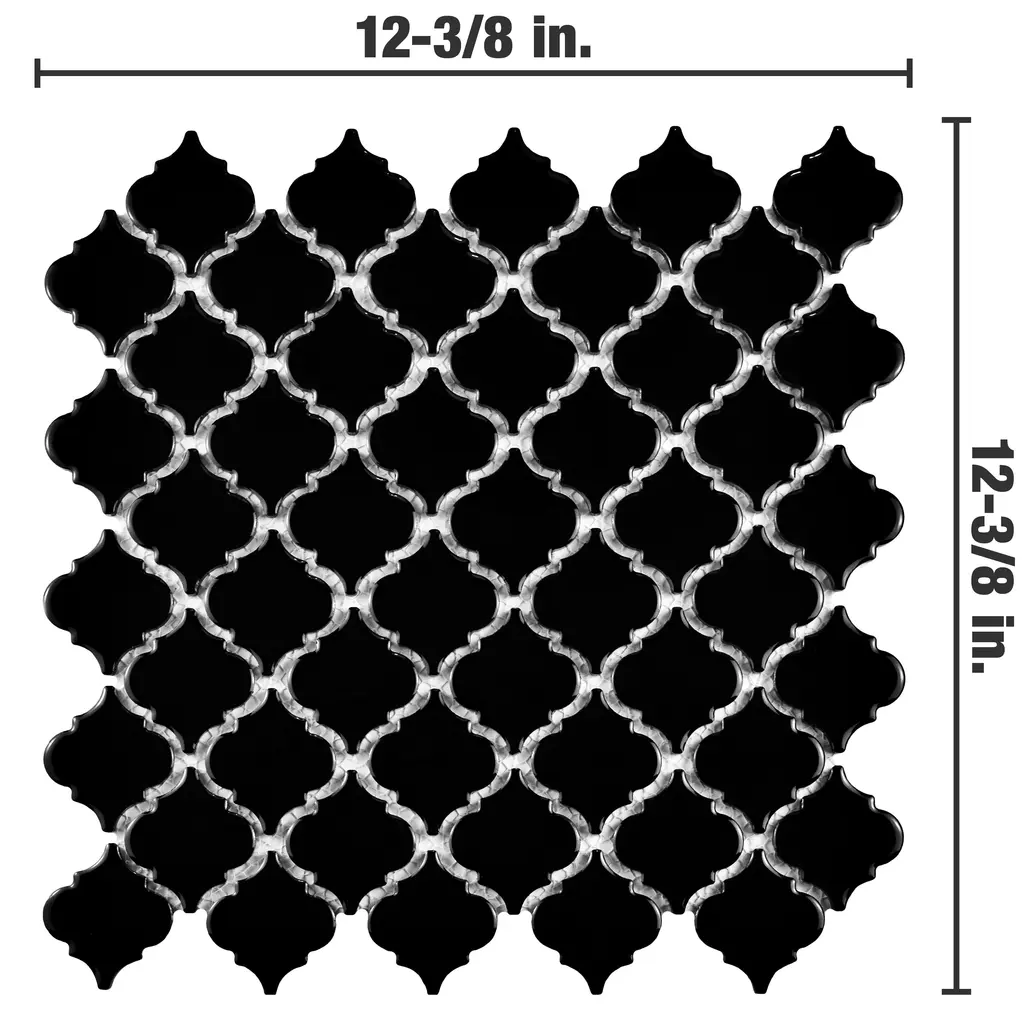 Our Hudson Tangier Glossy Black Porcelain Mosaic Tile features our popular lantern design with a modern update. Let the stark, high-gloss black glaze add a dramatic depth to your floors, baths, showers and backsplashes. Impervious, frost-resistant and easy to clean, this tile is a perfect choice on its own or coordinated with other colors in our Hudson series. Tile is the better choice for your space. This tile is made from natural ingredients, making it a healthy choice as it is free from allergens, VOCs, formaldehyde and PVC. 11.0 square feet, 10 pieces per case. Case weight is 21.3 lbs. Grade 1, first-quality porcelain tile for floor and wall use 12.38 in. width x 12.38 in. length x 0.2 in. thick mesh-mounted mosaic Glazed, smooth finish with a high sheen and uniform appearance in tone PEI Rating II is suitable for all interior walls and light foot traffic such as powder rooms Impervious tiles have a water absorption of less than 0.5% for indoor and outdoor use and are frost resistant This tile is not ADA approved for slip resistance with a DCOF value less than 0.42. Completely frost resistant for indoor or outdoor applications; use a latex-modified thinset for acceptable bond strength Please note: A sample of this product may be a partial piece cut from the full size tile in order to provide an affordable and convenient way for customers to judge the quality and finish of this item. Samples are not returnable.