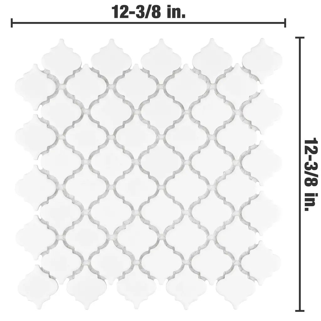 Offering a mosaic look, our Hudson Tangier Glossy White Porcelain Floor and Wall Tile features a smooth, glossy finish, providing decorative appeal that adapts to a variety of stylistic contexts. With its impervious, frost-resistant features, this mosaic is an ideal selection for both indoor and outdoor commercial and residential installations, including kitchens, bathrooms, backsplashes, showers, hallways, entryways, patios and fireplace facades. This tile is a perfect choice on its own or paired with other products in the Hudson Collection. Tile is the better choice for your space! 11.0 square feet, 10 pieces per case. Case weight is 20.5 lbs. Grade 1, first-quality porcelain tile for floor and wall use 12.38 in. width x 12.38 in. length x 0.2 in. thick mesh-mounted mosaic Glazed, smooth finish with a high sheen and uniform appearance in tone PEI Rating IV has high resistance to abrasion and is suitable for heavy-duty residential and commercial kitchens, hotels, exhibition and sales rooms with some dirt conditions Impervious tiles have a water absorption of less than 0.5% for indoor and outdoor use and are frost resistant This tile is not ADA approved for slip resistance with a DCOF value less than 0.42. Completely frost resistant for indoor or outdoor applications; use a latex-modified thinset for acceptable bond strength Please note: A sample of this product may be a partial piece cut from the full size tile in order to provide an affordable and convenient way for customers to judge the quality and finish of this item. Samples are not returnable.
