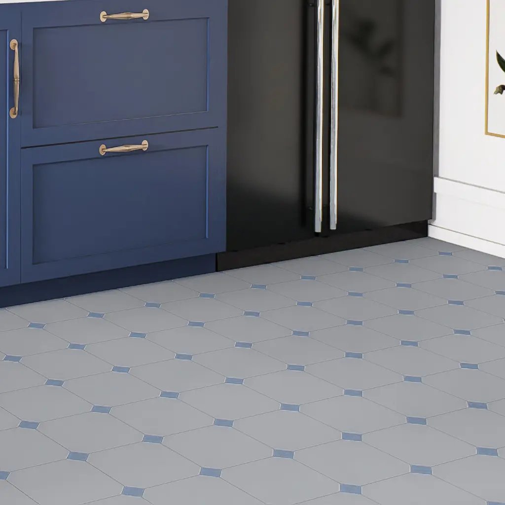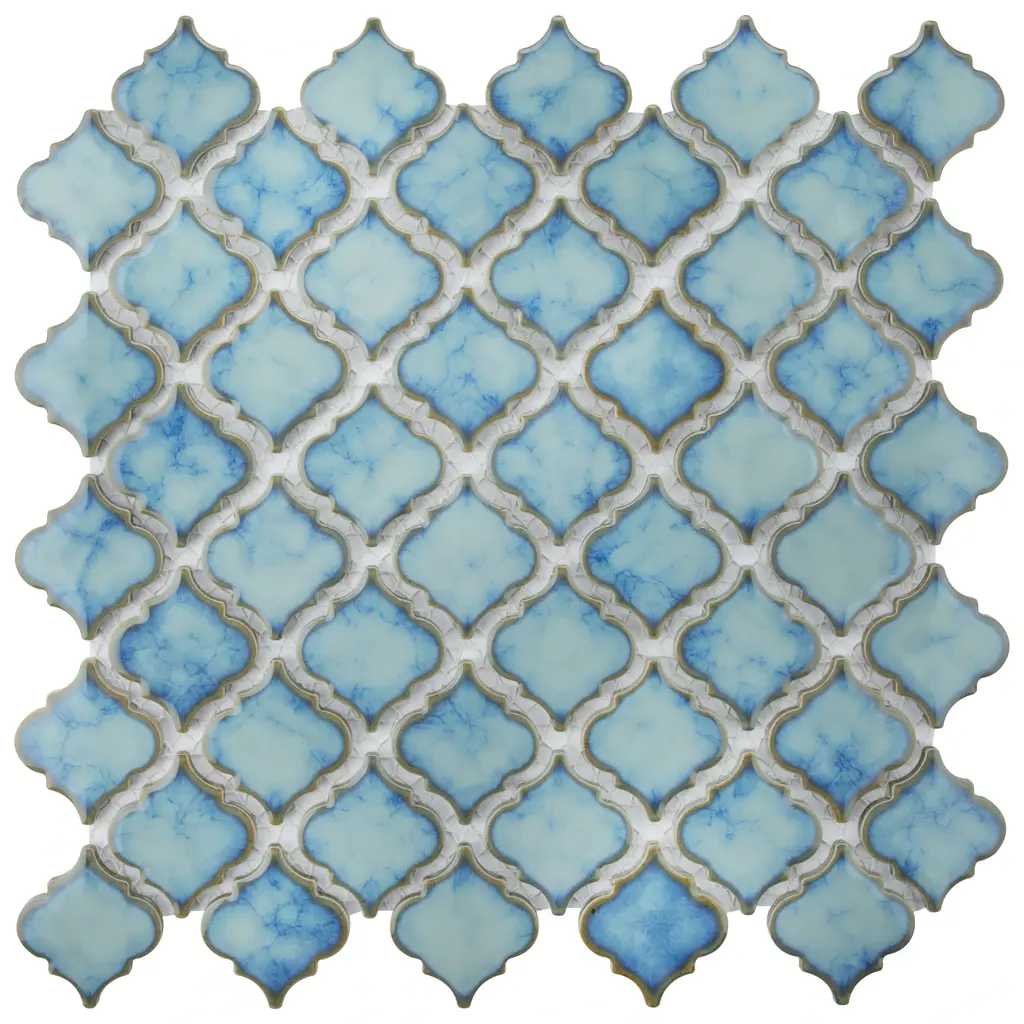 Offering a mosaic look, our Hudson Tangier Marine Porcelain Floor and Wall Tile features a smooth, glossy finish, providing decorative appeal that adapts to a variety of stylistic contexts. With its impervious, frost-resistant features, this mosaic is an ideal selection for both indoor and outdoor commercial and residential installations, including kitchens, bathrooms, backsplashes, showers, hallways, entryways, patios and fireplace facades. This tile is a perfect choice on its own or paired with other products in the Hudson Collection. Tile is the better choice for your space! 11.0 square feet, 10 pieces per case. Case weight is 18.9 lbs. Grade 1, first-quality porcelain tile for floor and wall use 12.38 in. width x 12.38 in. length x 0.2 in. thick mesh-mounted mosaic Glazed, smooth finish with a high sheen and slight variation in tone PEI Rating IV has high resistance to abrasion and is suitable for heavy-duty residential and commercial kitchens, hotels, exhibition and sales rooms with some dirt conditions Impervious tiles have a water absorption of less than 0.5% for indoor and outdoor use and are frost resistant This tile is not ADA approved for slip resistance with a DCOF value less than 0.42. Completely frost resistant for indoor or outdoor applications; use a latex-modified thinset for acceptable bond strength Please note: A sample of this product may be a partial piece cut from the full size tile in order to provide an affordable and convenient way for customers to judge the quality and finish of this item. Samples are not returnable.