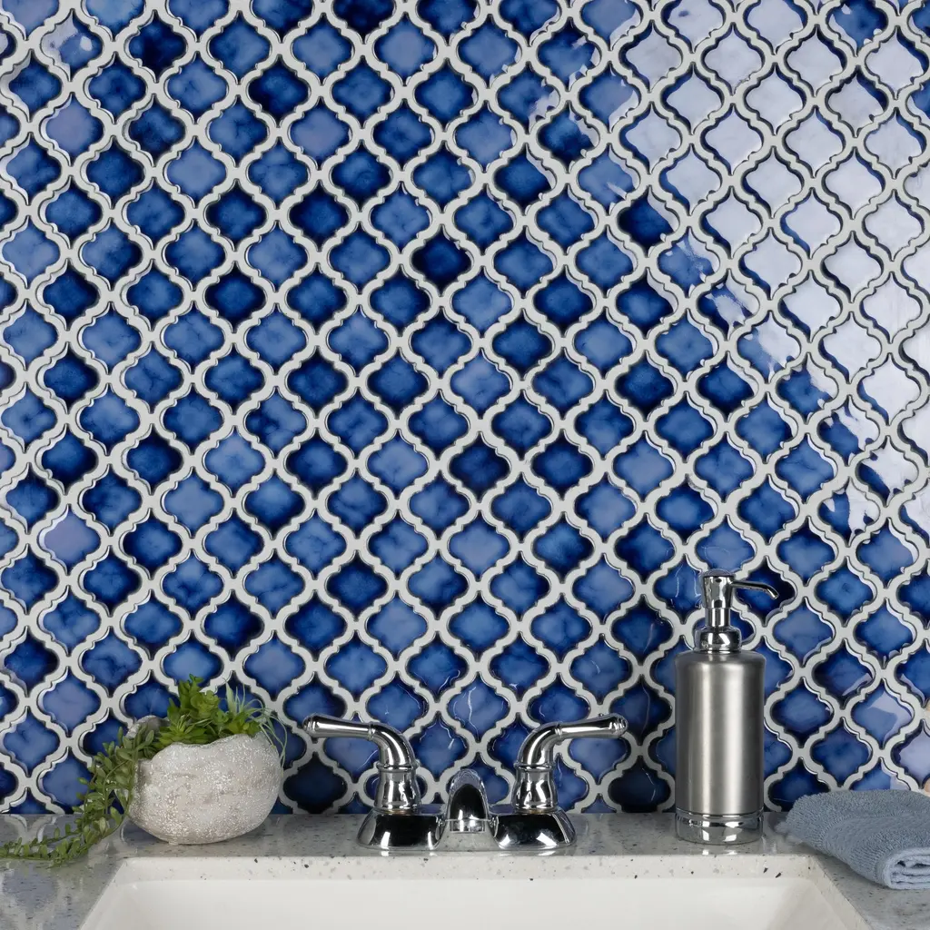 Offering a mosaic look, our Hudson Tangier Sapphire Porcelain Floor and Wall Tile features a smooth, glossy finish, providing decorative appeal that adapts to a variety of stylistic contexts. With its impervious, frost-resistant features, this mosaic is an ideal selection for both indoor and outdoor residential installations, including bathrooms, backsplashes, showers, hallways and fireplace facades. This tile is a perfect choice on its own or paired with other products in the Hudson Collection. Tile is the better choice for your space! 11.0 square feet, 10 pieces per case. Case weight is 18.9 lbs. Grade 1, first-quality porcelain tile for floor and wall use 12.38 in. width x 12.38 in. length x 0.2 in. thick mesh-mounted mosaic Glazed, smooth finish with a high sheen and slight variation in tone PEI Rating II is suitable for all interior walls and light foot traffic such as powder rooms Impervious tiles have a water absorption of less than 0.5% for indoor and outdoor use and are frost resistant This tile is not ADA approved for slip resistance with a DCOF value less than 0.42. Completely frost resistant for indoor or outdoor applications; use a latex-modified thinset for acceptable bond strength Please note: A sample of this product may be a partial piece cut from the full size tile in order to provide an affordable and convenient way for customers to judge the quality and finish of this item. Samples are not returnable.