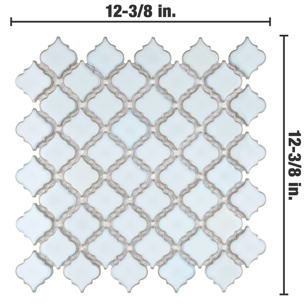 Offering a mosaic look, our Hudson Tangier Silk White Porcelain Floor and Wall Tile features a smooth, glossy finish, providing decorative appeal that adapts to a variety of stylistic contexts. With its impervious, frost-resistant features, this mosaic is an ideal selection for both indoor and outdoor commercial and residential installations, including kitchens, bathrooms, backsplashes, showers, hallways, entryways, patios and fireplace facades. This tile is a perfect choice on its own or paired with other products in the Hudson Collection. Tile is the better choice for your space! 11.0 square feet, 10 pieces per case. Case weight is 21.2 lbs. Grade 1, first-quality porcelain tile for floor and wall use 12.38 in. width x 12.38 in. length x 0.2 in. thick mesh-mounted mosaic Glazed, smooth finish with a high sheen and slight variation in tone PEI Rating IV has high resistance to abrasion and is suitable for heavy-duty residential and commercial kitchens, hotels, exhibition and sales rooms with some dirt conditions Impervious tiles have a water absorption of less than 0.5% for indoor and outdoor use and are frost resistant This tile is not ADA approved for slip resistance with a DCOF value less than 0.42. Completely frost resistant for indoor or outdoor applications; use a latex-modified thinset for acceptable bond strength Please note: A sample of this product may be a partial piece cut from the full size tile in order to provide an affordable and convenient way for customers to judge the quality and finish of this item. Samples are not returnable.