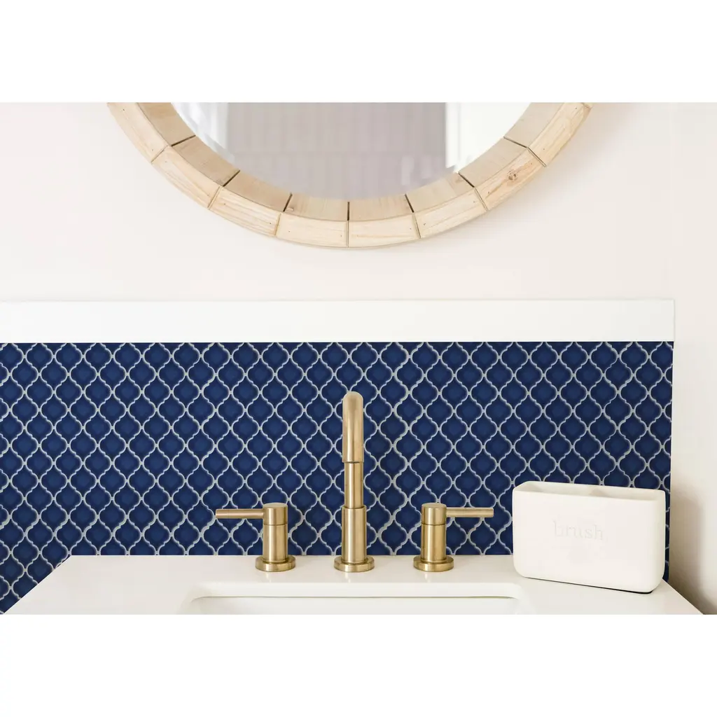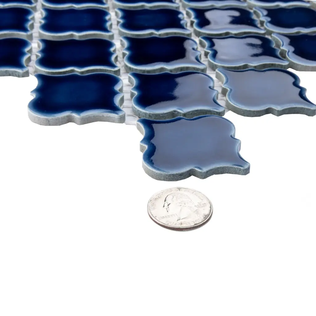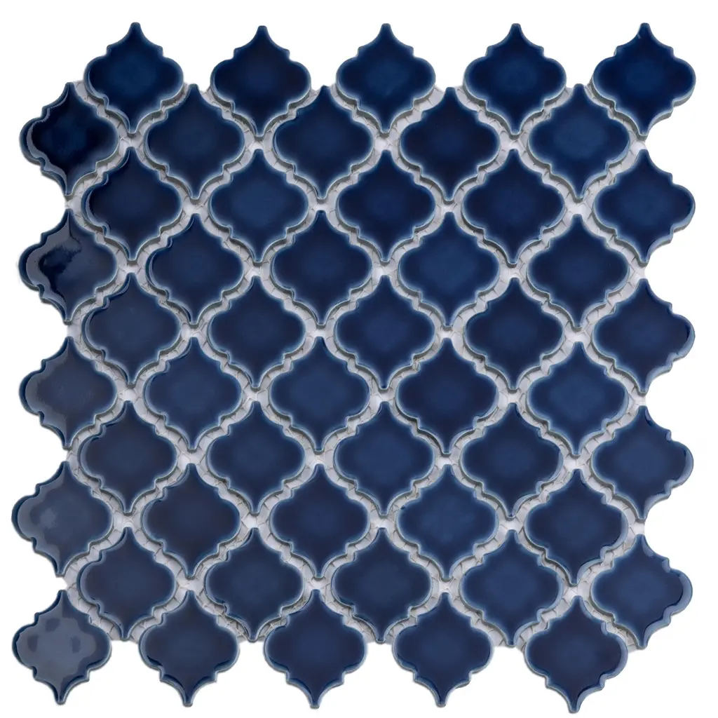 Our Hudson Tangier Smoky Blue Porcelain Mosaic Tile features our popular lantern design with a modern update. These tiles feature an eye-drop effect reactive glaze, creating rich blue tones in the center, with a white gradient on the edge. The end effect is a pleasing mixture of cool-toned tints with additional dimension added by the high-gloss finish. Impervious, frost-resistant and easy to clean, this tile is a perfect choice on its own or coordinated with other colors in our Hudson series. Tile is the better choice for your space. This tile is made from natural ingredients, making it a healthy choice as it is free from allergens, VOCs, formaldehyde and PVC. 11.0 square feet, 10 pieces per case. Case weight is 21.2 lbs. Grade 1, first-quality porcelain tile for floor and wall use 12.38 in. width x 12.38 in. length x 0.2 in. thick mesh-mounted mosaic Glazed, smooth finish with a high sheen and slight variation in tone PEI Rating II is suitable for all interior walls and light foot traffic such as powder rooms Impervious tiles have a water absorption of less than 0.5% for indoor and outdoor use and are frost resistant This tile is not ADA approved for slip resistance with a DCOF value less than 0.42. Completely frost resistant for indoor or outdoor applications; use a latex-modified thinset for acceptable bond strength Please note: A sample of this product may be a partial piece cut from the full size tile in order to provide an affordable and convenient way for customers to judge the quality and finish of this item. Samples are not returnable.