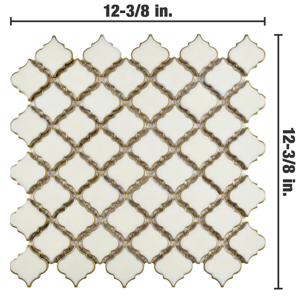 Our Hudson Tangier Snowcap White Porcelain Mosaic Tile features our popular lantern design with a modern update. These tiles feature an eye-drop effect reactive glaze, creating a soft, creamy white tone in the center mixed with beige shades on the edge. The end effect is a pleasing mixture of tints with additional dimension added by the high-gloss finish. Impervious, frost-resistant and easy to clean, this tile is a perfect choice on its own or coordinated with other colors in our Hudson series. Tile is the better choice for your space. This tile is made from natural ingredients, making it a healthy choice as it is free from allergens, VOCs, formaldehyde and PVC. 11.0 square feet, 10 pieces per case. Case weight is 21.3 lbs. Grade 1, first-quality porcelain tile for floor and wall use 12.38 in. width x 12.38 in. length x 0.2 in. thick mesh-mounted mosaic Glazed, smooth finish with a high sheen and uniform appearance in tone PEI Rating IV has high resistance to abrasion and is suitable for heavy-duty residential and commercial kitchens, hotels, exhibition and sales rooms with some dirt conditions Impervious tiles have a water absorption of less than 0.5% for indoor and outdoor use and are frost resistant This tile is not ADA approved for slip resistance with a DCOF value less than 0.42. Completely frost resistant for indoor or outdoor applications; use a latex-modified thinset for acceptable bond strength Please note: A sample of this product may be a partial piece cut from the full size tile in order to provide an affordable and convenient way for customers to judge the quality and finish of this item. Samples are not returnable.