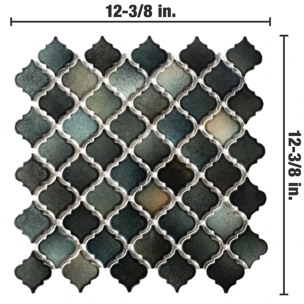 Offering a mosaic look, our Hudson Tangier Stormy Night Porcelain Floor and Wall Tile features a smooth, glossy finish, providing decorative appeal that adapts to a variety of stylistic contexts. With its impervious, frost-resistant features, this green lantern mosaic is an ideal selection for both indoor and outdoor commercial and residential installations, including kitchens, bathrooms, backsplashes, showers, hallways, entryways, patios and fireplace facades. This tile is a perfect choice on its own or paired with other products in the Hudson Collection. Tile is the better choice for your space! 11.0 square feet, 10 pieces per case. Case weight is 20.91 lbs. Grade 1, first-quality porcelain tile for floor and wall use 12.38 in. width x 12.38 in. length x 0.2 in. thick mesh-mounted mosaic Glazed, smooth finish with a high sheen and slight variation in tone PEI Rating IV has high resistance to abrasion and is suitable for heavy-duty residential and commercial kitchens, hotels, exhibition and sales rooms with some dirt conditions Impervious tiles have a water absorption of less than 0.5% for indoor and outdoor use and are frost resistant This tile is not ADA approved for slip resistance with a DCOF value less than 0.42. Completely frost resistant for indoor or outdoor applications; use a latex-modified thinset for acceptable bond strength Please note: A sample of this product may be a partial piece cut from the full size tile in order to provide an affordable and convenient way for customers to judge the quality and finish of this item. Samples are not returnable.