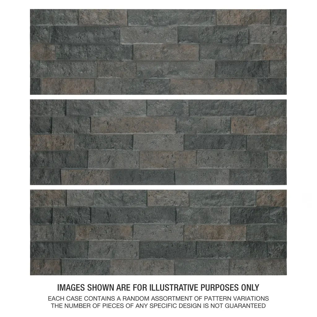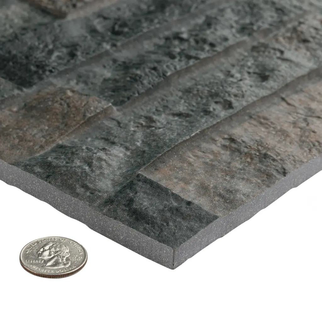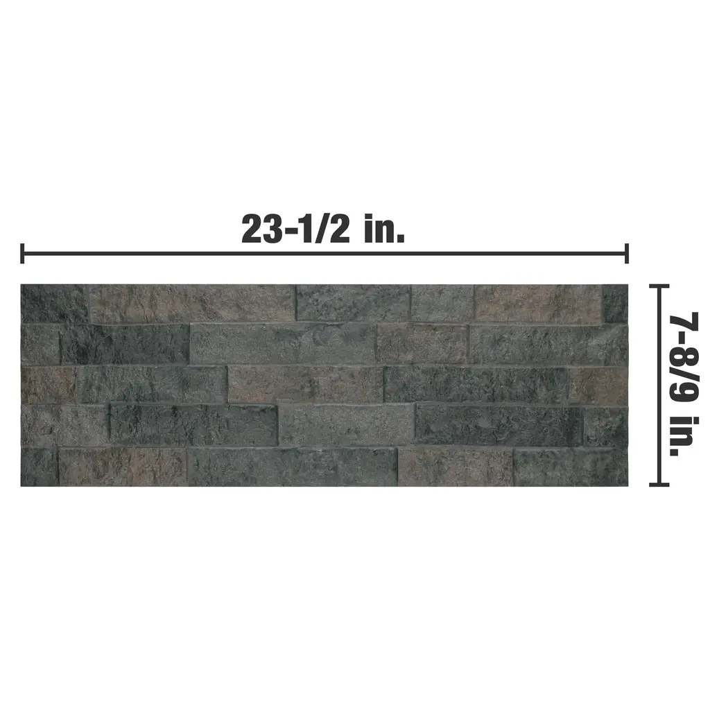 Replicating the appearance of natural stone, our Irazu Antractica Porcelain Wall Tile transforms any space into a functional and stylish extension of nature. This enlarged rectangular wall tile features an offset stacked stone pattern in varying shades of dark grey and brown. With a textured three-dimensional surface, this unique porcelain panel offers organic, rustic beauty. Its impervious and frost-proof features make it an ideal choice for indoor and outdoor wall installations including kitchen backsplashes, shower walls, and fireplace facades. Tile is the better choice for your space. This tile is made from natural ingredients, making it a healthy choice as it is free from allergens, VOCs, formaldehyde, and PVC. 9.03 square feet, 7 pieces per case. Case weight is 41 lbs. Grade 1, first-quality porcelain tile for wall use 7.88 in. width x 23.5 in. length x 0.5 in. thick Glazed, slightly textured finish with a low sheen and moderate variation in tone PEI Rating 0 is suitable for wall use only Impervious tiles have a water absorption of less than 0.5% for indoor and outdoor use and are frost resistant DCOF value is not available for this product. Please reference the PEI and MOHS rating for installation. Completely frost resistant for indoor or outdoor applications; use a latex-modified thinset for acceptable bond strength Please note: A sample of this product may be a partial piece cut from the full size tile in order to provide an affordable and convenient way for customers to judge the quality and finish of this item. Samples are not returnable.