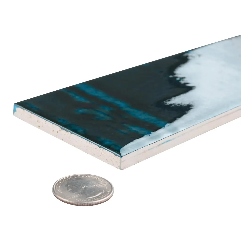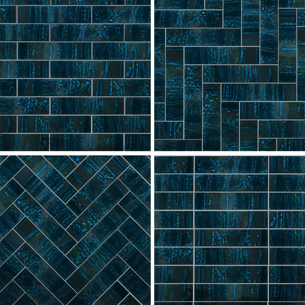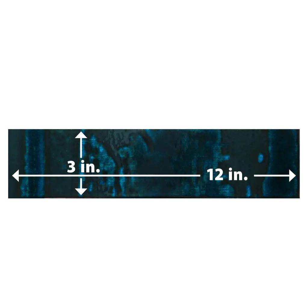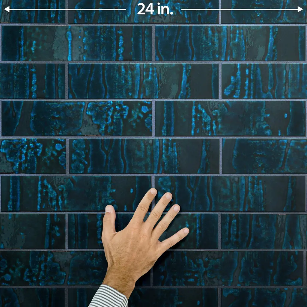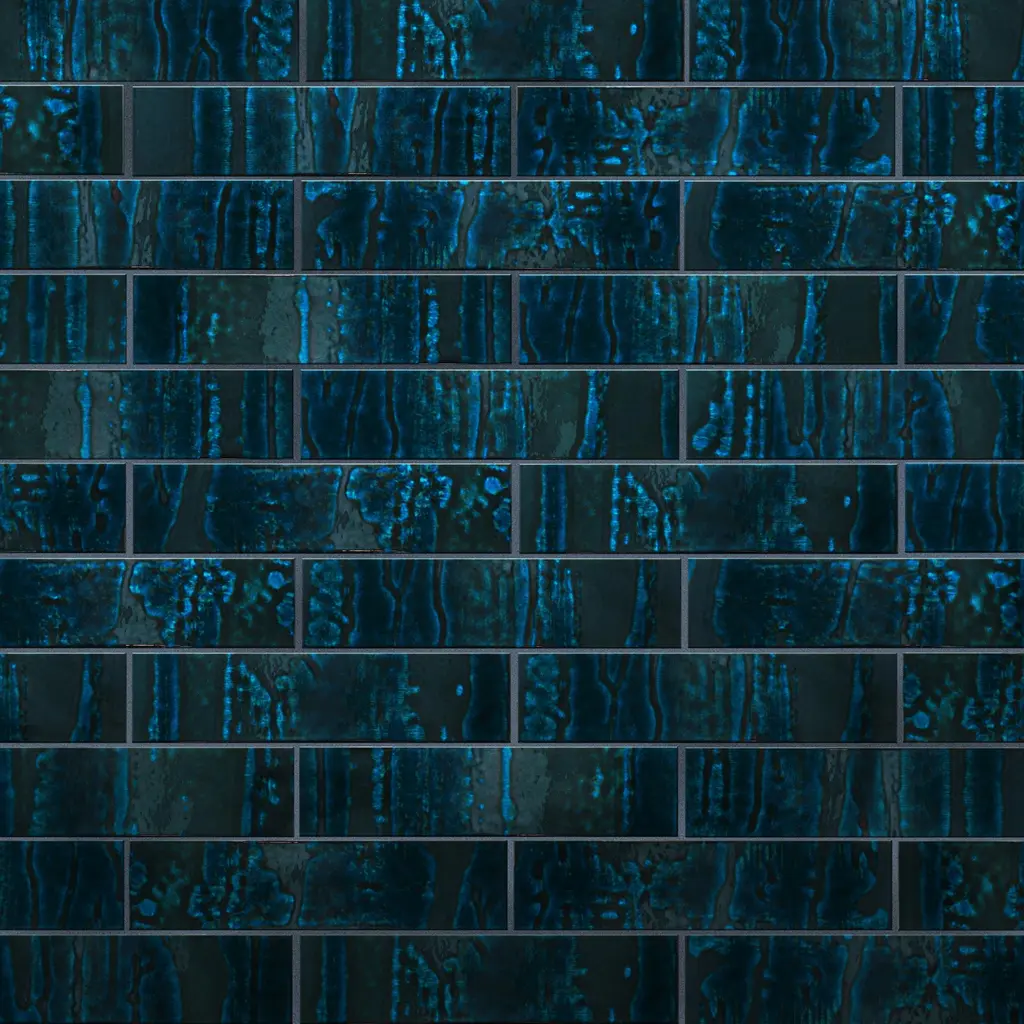 Blending innovative design and visually rich details, our Joilet Sapphire Ceramic Wall Tile is a bold take on traditional subway tile with an irresistible raku glazing. This ceramic tile features mottled pattern variations in deep shades of blue and green. With a unique raku glaze, this tile has an extensive Japanese-inspired creation process where fire hits the tile directly, resulting in an exquisite natural iridescent glaze. Its highly reflective glossy finish and undulated surface creates dramatic visual rhythm and depth. Available in 41 different print variations that are randomly scattered throughout each case, this tile offers a one-of-a-kind look. Its glazed feature makes this tile an ideal choice for indoor wall installations including kitchen backsplashes, bathroom showers, and fireplace facades. Tile is the better choice for your space. This tile is made from natural ingredients, making it a healthy choice as it is free from allergens, VOCs, formaldehyde and PVC. 11.96 square feet, 46 pieces per case. Case weight is 34.04 lbs. Grade 1, first-quality ceramic tile for wall use 3 in. width x 12 in. length x 0.34 in. thick Glazed, slightly textured finish with a high sheen and slight variation in tone PEI Rating 0 is suitable for wall use only Non-Vitreous tiles have water absorption of more than 7% for indoor use DCOF value is not available for this product. Please reference the PEI and MOHS rating for installation. Not frost resistant Please note: Samples are not returnable