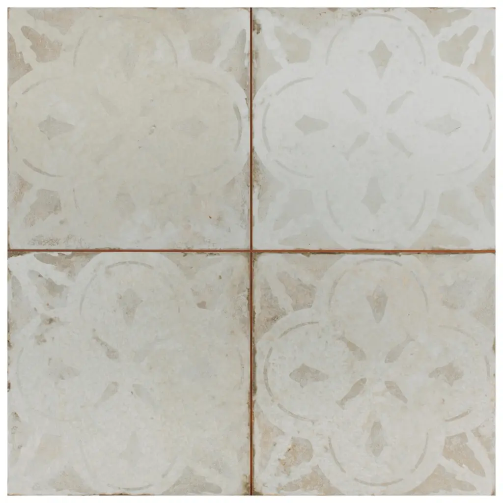 Capturing the appearance of an encaustic look, our Kings Aurora White Ceramic Floor and Wall Tile features a slightly textured, matte finish, providing decorative appeal that adapts to a variety of stylistic contexts. Containing 7 different print variations that are randomly distributed throughout each case, this beige square tile offers a one-of-a-kind look. With its semi-vitreous features, this tile is an ideal selection for indoor commercial and residential installations, including kitchens, bathrooms, backsplashes, showers, hallways, entryways and fireplace facades. This tile is a perfect choice on its own or paired with other products in the Kings Collection. Tile is the better choice for your space!
