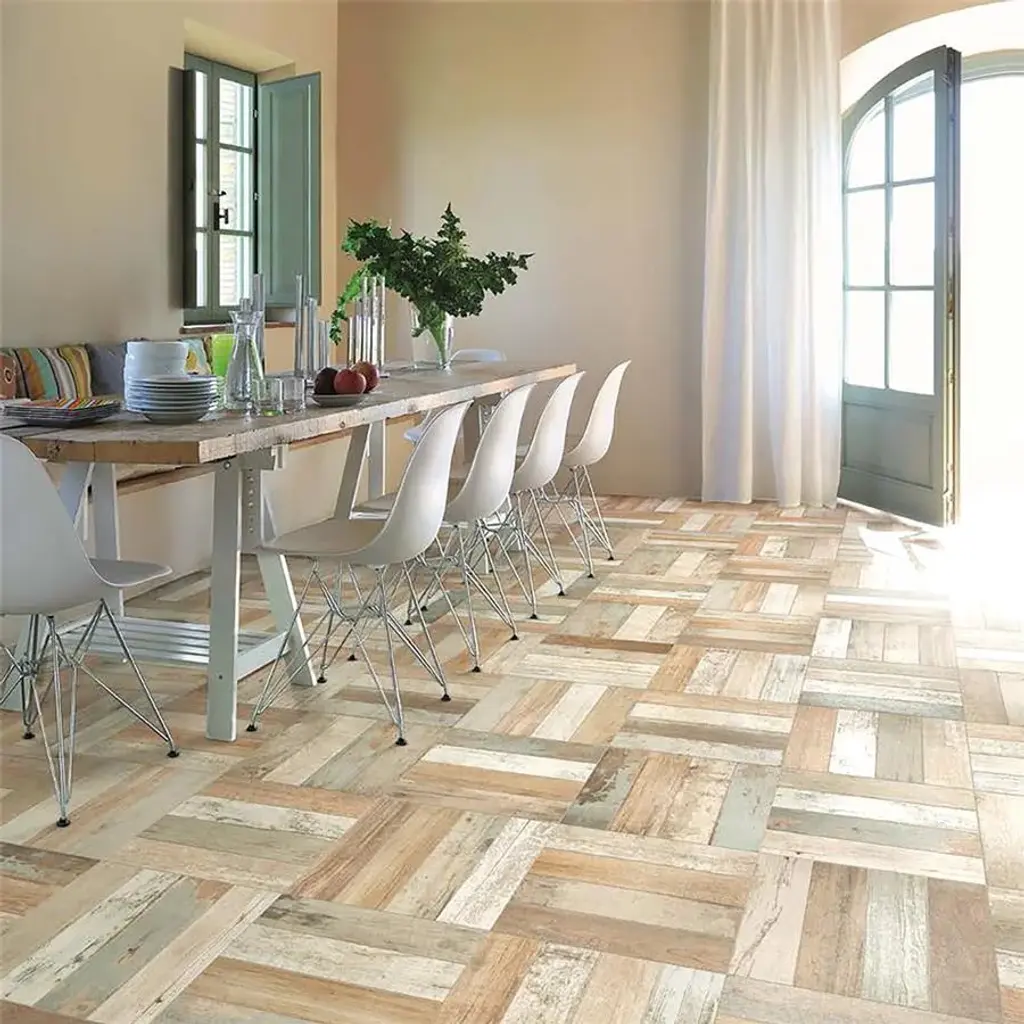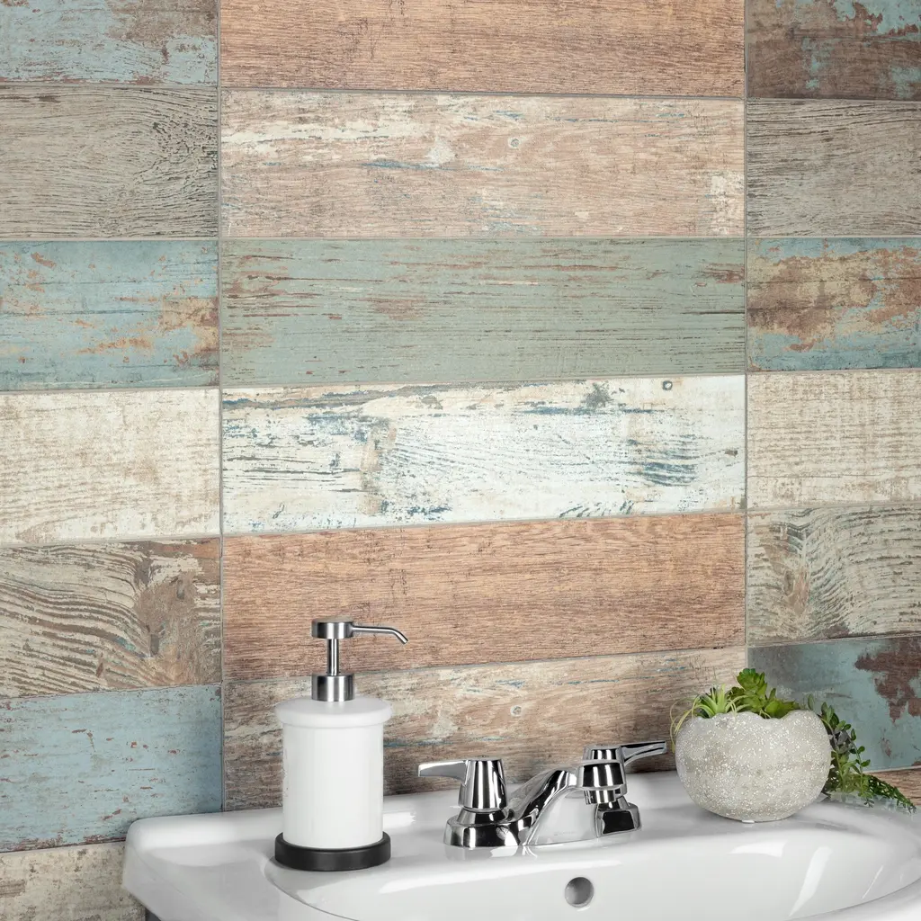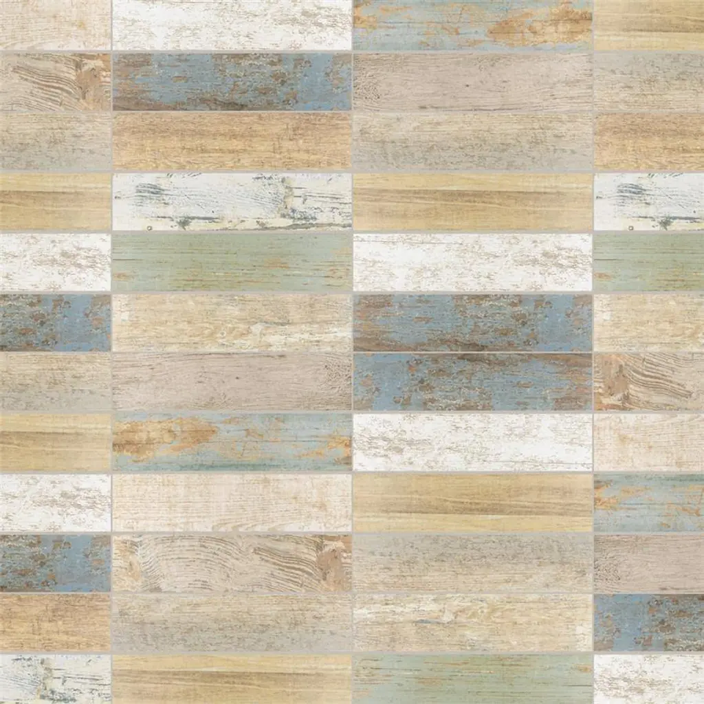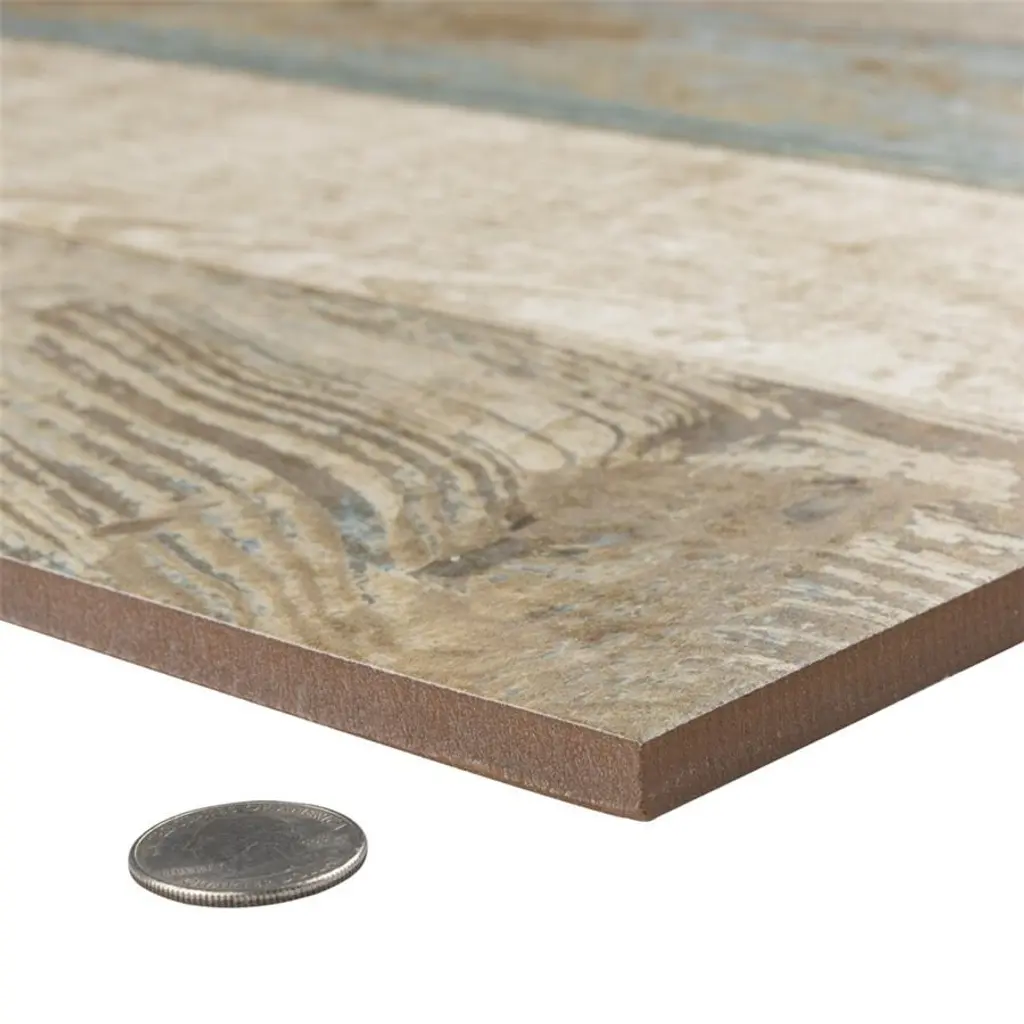 Old-world European elegance radiates from our Kings Bretagne Ceramic Floor and Wall Tile. Save time and labor spent arranging smaller tiles and instead install these durable ceramic slabs, which have four individual planks with realistic lines in between to mimic grout. The scored grout lines can be grouted with the color of your choice to further customize your installation. The defining feature of this encaustic-inspired tile is the unique, low-sheen glaze. The union of clear divisions and a textured look are offset by the wood grain effect, an intriguing combination of intricately detailed panels and coloring that resembles real wood, all in beautiful palette colors that complement each other perfectly. With 18 different possible variations in patterns, you will receive a random mix which may contain duplicates in each case of 5 tiles. Designed by interior architect and furniture designer Francisco Segarra, this tile is a true reflection of vintage industrial design. Imitations of scuffs and spots that are the marks of well-loved, worn, century-old tile bring rustic charm to your interior. These rustic scuffs and spots convince that this tile is truly aged. 10.95 square feet, 5 pieces per case. Case weight is 46.63 lbs. Grade 1, first-quality ceramic tile for floor and wall use 17.63 in. width x 17.63 in. length x 0.37 in. thick Glazed, slightly textured finish with a low sheen and moderate variation in tone PEI Rating IV has high resistance to abrasion and is suitable for heavy-duty residential and commercial kitchens, hotels, exhibition and sales rooms with some dirt conditions Semi-Vitreous tiles have water absorption of more than 3% but less than 7% for indoor use This tile is not ADA approved for slip resistance with a DCOF value less than 0.42. Not frost resistant Please note: A sample of this product may be a partial piece cut from the full size tile in order to provide an affordable and convenient way for customers to judge the quality and finish of this item. Samples are not returnable.