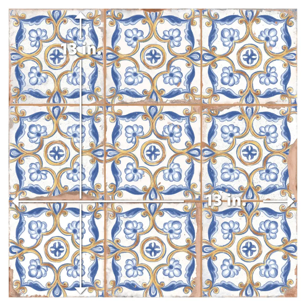 Capturing the appearance of a patterned look, our Kings Campania Atrani Ceramic Floor and Wall Tile features a mixed textured finish, providing decorative appeal that adapts to a variety of stylistic contexts. Experience the Kings Campania Collection’s unique interplay of matte and glossy ceramic, capturing the Mediterranean’s luminous palette in every tile. Containing 8 different print variations that are randomly distributed throughout each case, this blue square tile offers a one-of-a-kind look. With its semi-vitreous features, this tile is an ideal selection for indoor commercial and residential installations, including kitchens, bathrooms, backsplashes, showers, hallways, entryways and fireplace facades. This tile is a perfect choice on its own or paired with other products in the Kings Collection. Tile is the better choice for your space! 12.0 square feet, 10 pieces per case. Case weight is 48.32 lbs. Grade 1, first-quality ceramic tile for floor and wall use 13 in. width x 13 in. length x 0.37 in. thick Glazed, mixed texture with a mixed finish and slight variation in tone PEI Rating IV has high resistance to abrasion and is suitable for heavy-duty residential and commercial kitchens, hotels, exhibition and sales rooms with some dirt conditions Semi-Vitreous tiles have water absorption of more than 3% but less than 7% for indoor use This tile has no available COF wet rating. This tile is not ADA approved for slip resistance. Not frost resistant Please note: A sample of this product may be a partial piece cut from the full size tile in order to provide an affordable and convenient way for customers to judge the quality and finish of this item. Samples are not returnable.