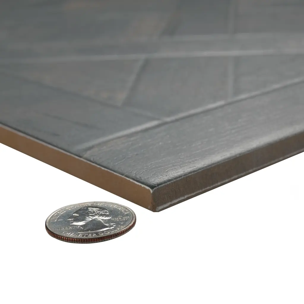 Replicating a wood look, our Kings Forest Lattice Black Ceramic Floor and Wall Tile features a smooth, matte finish, providing decorative appeal that adapts to a variety of stylistic contexts. The Kings Forest Collection celebrates the beauty of wood and its transformation over time, with wood-look ceramic tiles that look aged, manipulated, painted, burnt, and nailed, in plank and lattice formats. Containing 10 different print variations that are randomly distributed throughout each case, this black square tile offers a one-of-a-kind look. With its semi-vitreous features, this tile is an ideal selection for indoor residential installations, including kitchens, bathrooms, backsplashes, showers, hallways and fireplace facades. This tile is a perfect choice on its own or paired with other products in the Kings Collection. Tile is the better choice for your space! 10.95 square feet, 5 pieces per case. Case weight is 46.63 lbs. Grade 1, first-quality ceramic tile for floor and wall use 17.63 in. width x 17.63 in. length x 0.37 in. thick Glazed, smooth finish with a low sheen and moderate variation in tone PEI Rating III is suitable for medium-duty residential floors including kitchens, halls, corridors, balconies, terraces and areas used more often with normal footwear and small amounts of dirt Semi-Vitreous tiles have water absorption of more than 3% but less than 7% for indoor use This tile is ADA approved for slip resistance with a DCOF value of 0.42 or higher. Not frost resistant Please note: A sample of this product may be a partial piece cut from the full size tile in order to provide an affordable and convenient way for customers to judge the quality and finish of this item. Samples are not returnable.