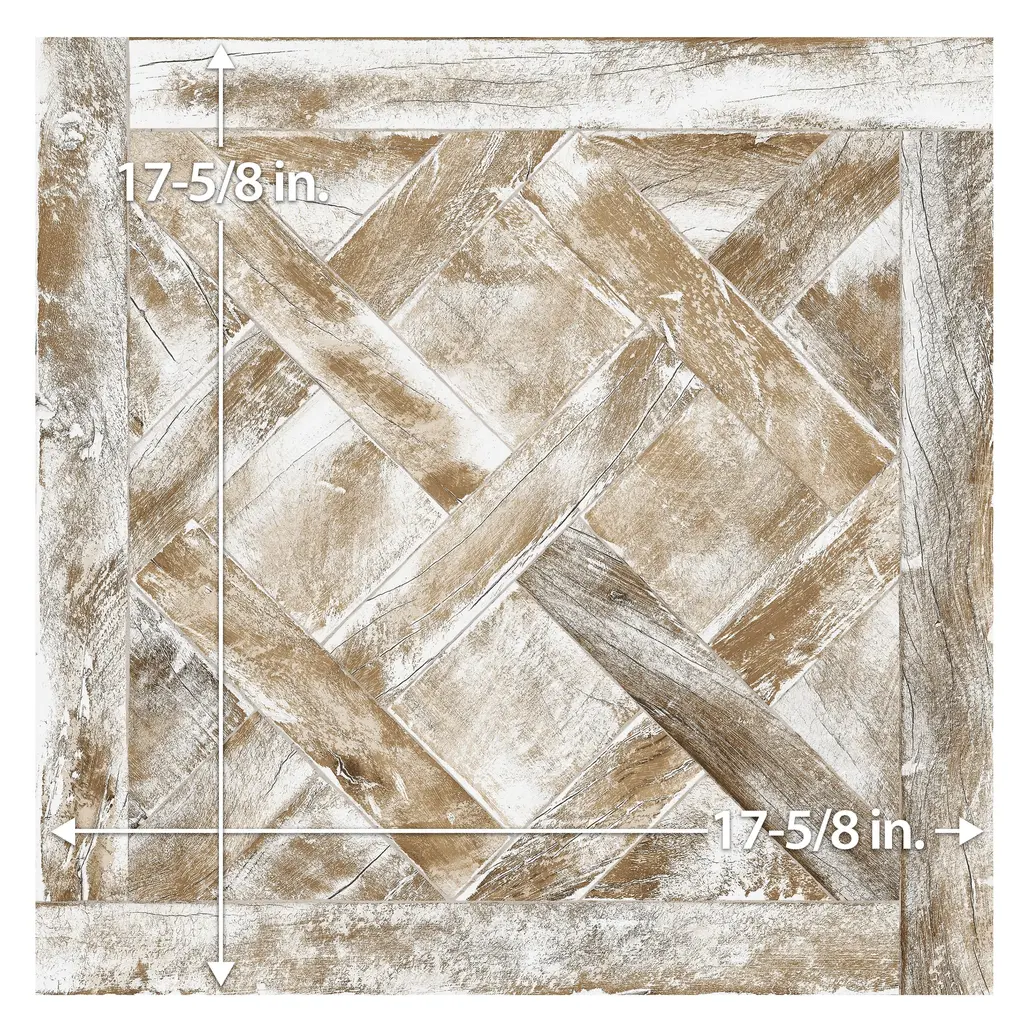 Replicating a wood look, our Kings Forest Lattice White Ceramic Floor and Wall Tile features a smooth, matte finish, providing decorative appeal that adapts to a variety of stylistic contexts. The Kings Forest Collection celebrates the beauty of wood and its transformation over time, with wood-look ceramic tiles that look aged, manipulated, painted, burnt, and nailed, in plank and lattice formats. Containing 10 different print variations that are randomly distributed throughout each case, this brown square tile offers a one-of-a-kind look. With its semi-vitreous features, this tile is an ideal selection for indoor commercial and residential installations, including kitchens, bathrooms, backsplashes, showers, hallways, entryways and fireplace facades. This tile is a perfect choice on its own or paired with other products in the Kings Collection. Tile is the better choice for your space! 10.95 square feet, 5 pieces per case. Case weight is 46.63 lbs. Grade 1, first-quality ceramic tile for floor and wall use 17.63 in. width x 17.63 in. length x 0.37 in. thick Glazed, smooth finish with a low sheen and moderate variation in tone PEI Rating IV has high resistance to abrasion and is suitable for heavy-duty residential and commercial kitchens, hotels, exhibition and sales rooms with some dirt conditions Semi-Vitreous tiles have water absorption of more than 3% but less than 7% for indoor use This tile is ADA approved for slip resistance with a DCOF value of 0.42 or higher. Not frost resistant Please note: A sample of this product may be a partial piece cut from the full size tile in order to provide an affordable and convenient way for customers to judge the quality and finish of this item. Samples are not returnable.