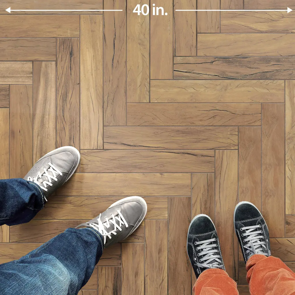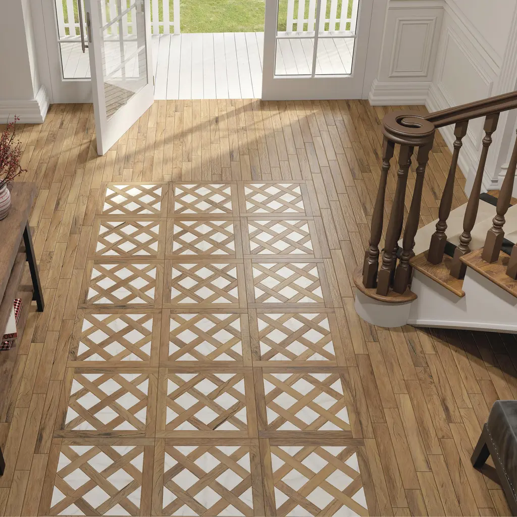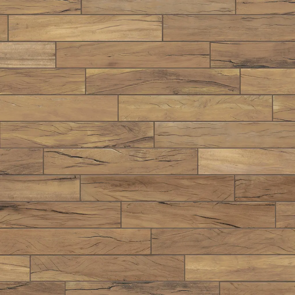 Replicating a wood look, our Kings Forest Natural Ceramic Floor and Wall Tile features a smooth, matte finish, providing decorative appeal that adapts to a variety of stylistic contexts. The Kings Forest Collection celebrates the beauty of wood and its transformation over time, with wood-look ceramic tiles that look aged, manipulated, painted, burnt, and nailed, in plank and lattice formats. Containing 48 different print variations that are randomly distributed throughout each case, this brown rectangle tile offers a one-of-a-kind look. With its semi-vitreous features, this tile is an ideal selection for indoor residential installations, including kitchens, bathrooms, backsplashes, showers, hallways and fireplace facades. This tile is a perfect choice on its own or paired with other products in the Kings Collection. Tile is the better choice for your space!