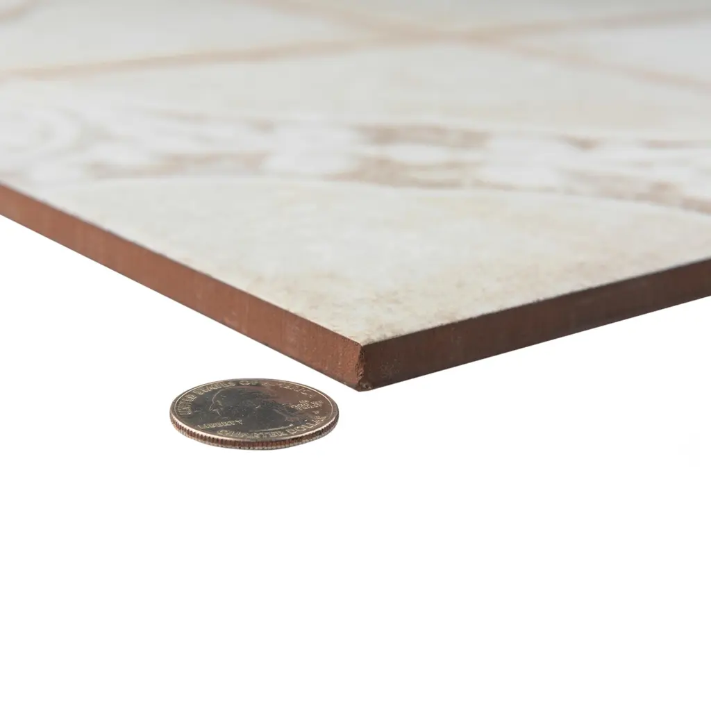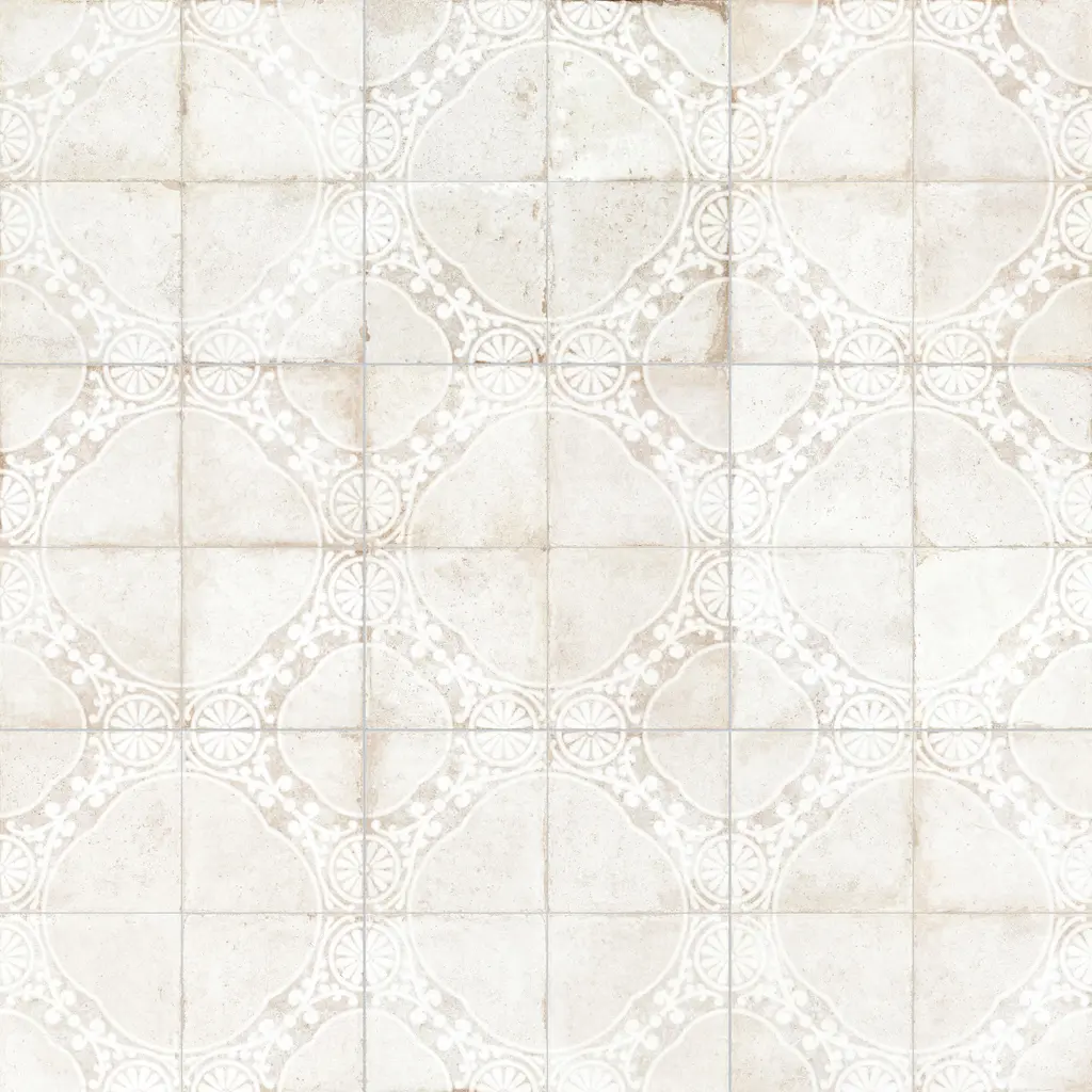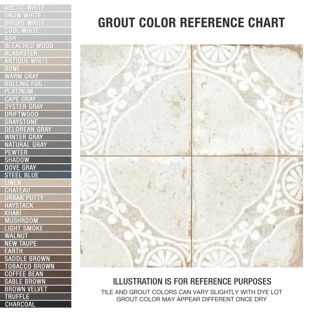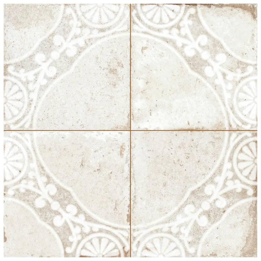 Inspired by a vintage look, our Kings Jaipur White Ceramic Floor and Wall Tile features a mixed textured finish, providing decorative appeal that adapts to a variety of stylistic contexts. The Kings Jaipur Ceramic Tile Collection is a tribute to Indian craftsmanship, with pre-scored monochromatic, vintage-inspired, geometric patterns, made with cutting edge technology to create a blending of tradition and innovation in a versatile and sophisticated tile collection. Containing 10 different print variations that are randomly distributed throughout each case, this white square tile offers a one-of-a-kind look. With its semi-vitreous features, this tile is an ideal selection for indoor commercial and residential installations, including kitchens, bathrooms, backsplashes, showers, hallways, entryways and fireplace facades. This tile is a perfect choice on its own or paired with other products in the Kings Collection. Tile is the better choice for your space! 10.95 square feet, 5 pieces per case. Case weight is 46.63 lbs. Grade 1, first-quality ceramic tile for floor and wall use 17.63 in. width x 17.63 in. length x 0.37 in. thick Glazed, mixed texture with a mixed finish and slight variation in tone PEI Rating IV has high resistance to abrasion and is suitable for heavy-duty residential and commercial kitchens, hotels, exhibition and sales rooms with some dirt conditions Semi-Vitreous tiles have water absorption of more than 3% but less than 7% for indoor use This tile is ADA approved for slip resistance with a DCOF value of 0.42 or higher. Not frost resistant Please note: A sample of this product may be a partial piece cut from the full size tile in order to provide an affordable and convenient way for customers to judge the quality and finish of this item. Samples are not returnable.
