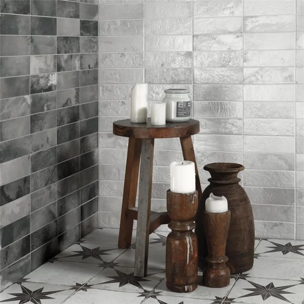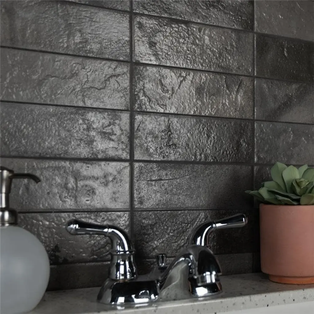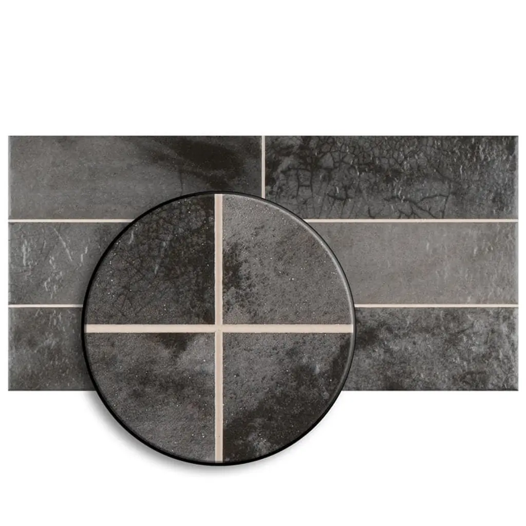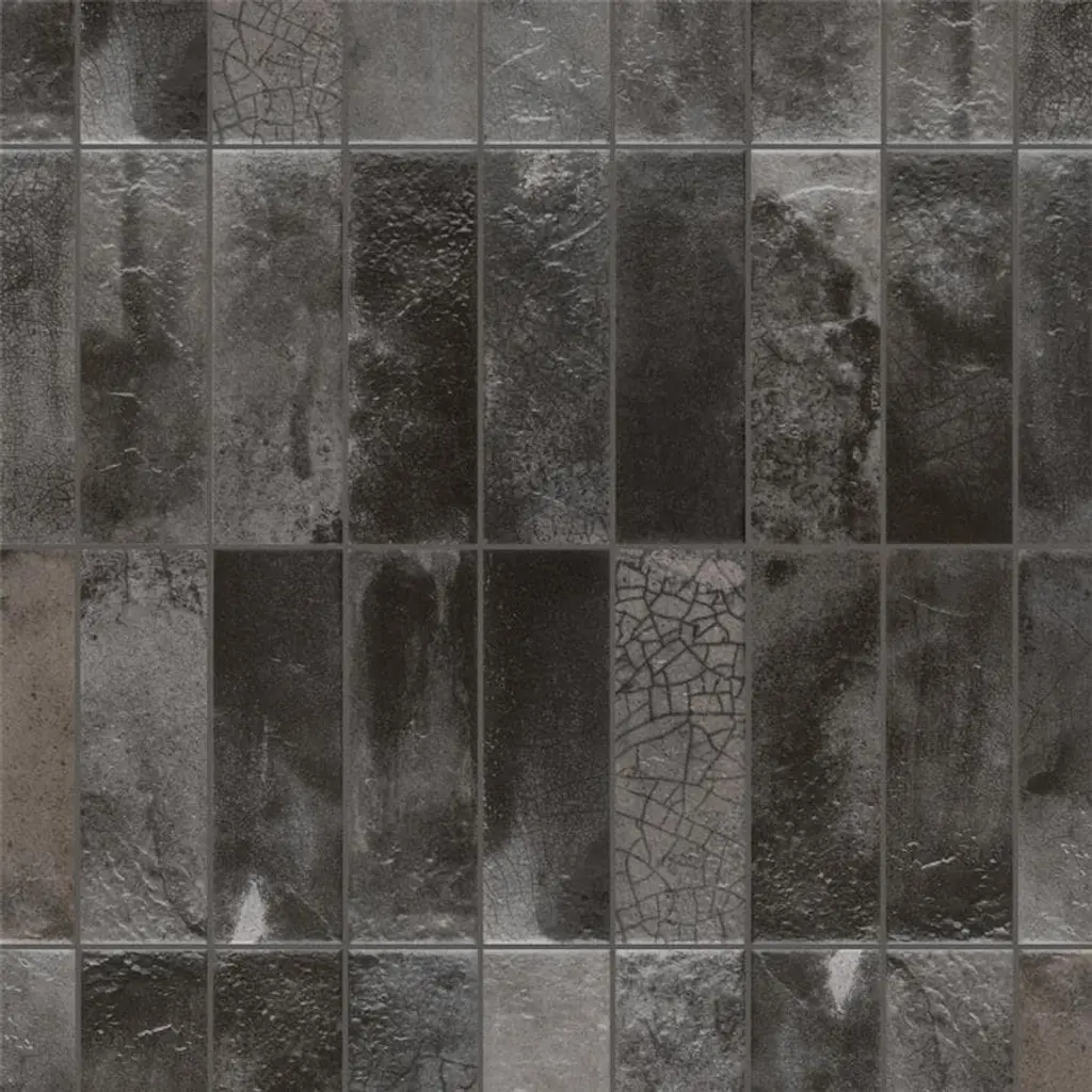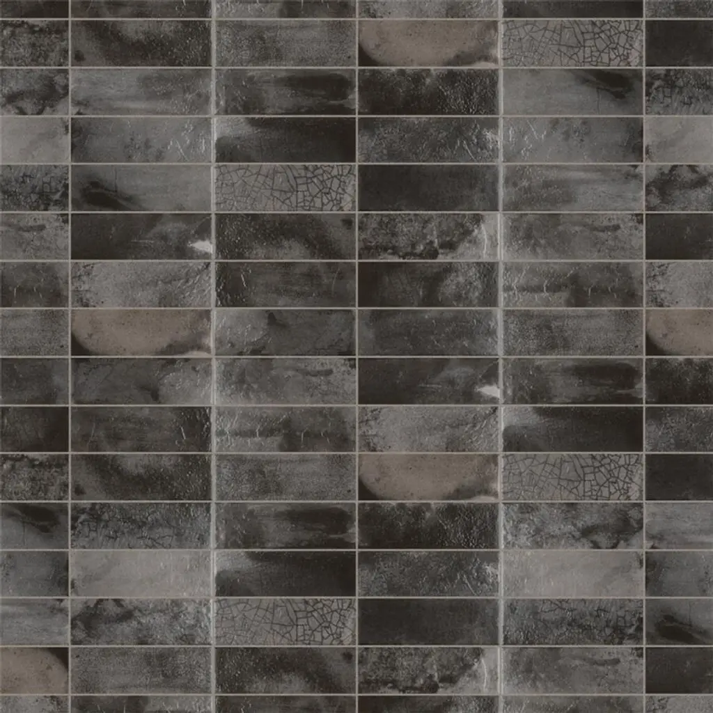 Imported from Spain, our Kings Raku Black 7-7/8" x 15 3/4" Ceramic Wall Tile radiates old-world European elegance. This wall tile features a unique, mixed finish glaze in varying tones of faded black. To commemorate 50 years of production, interior architect and furniture designer, Francisco Segarra, designed this collection to pay tribute to the manufacturing facility that brought his ideas to life. Using an age-old pottery technique as his source of inspiration, he created this collection with colors, textures, and crackle-look surfaces that all evoke the beauty of raku pottery. Available in thirty-five print variations that are randomly scattered throughout each case, the variation throughout each tile mimics an authentic aged appearance. Save time and labor spent arranging smaller brick tiles and instead install these durable large ceramic rectangles, which have six smaller brick rectangles squares separated by scored grout lines. Its glazed feature makes this tile an ideal choice for indoor wall installations including, kitchen backsplashes, bathroom showers and fireplace facades. Tile is the better choice for your space. This tile is made from natural ingredients, making it a healthy choice as it is free from allergens, VOCs, formaldehyde and PVC.