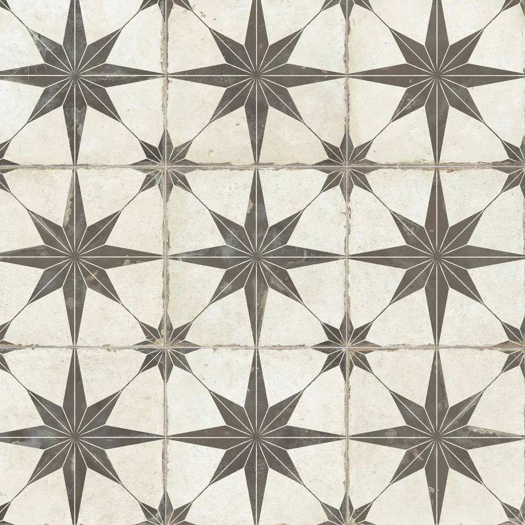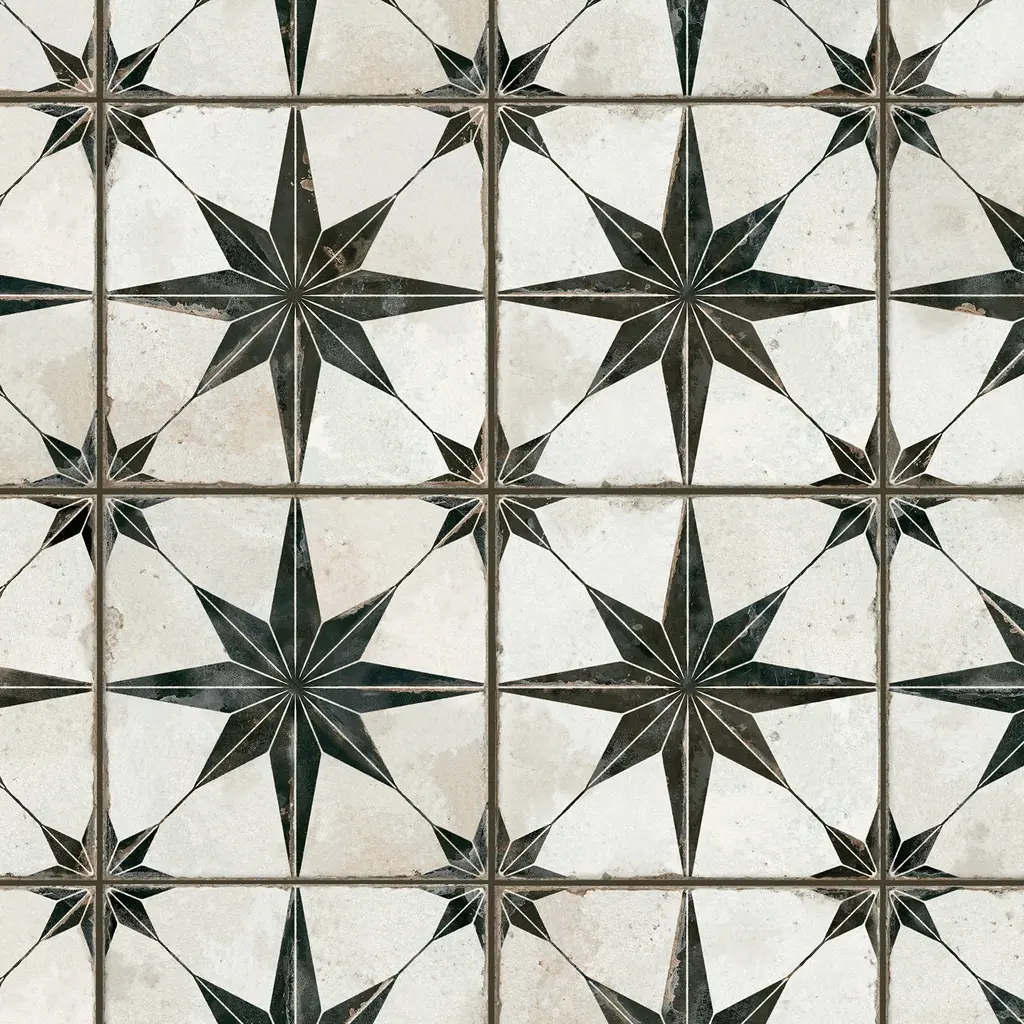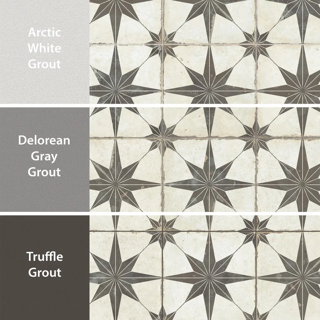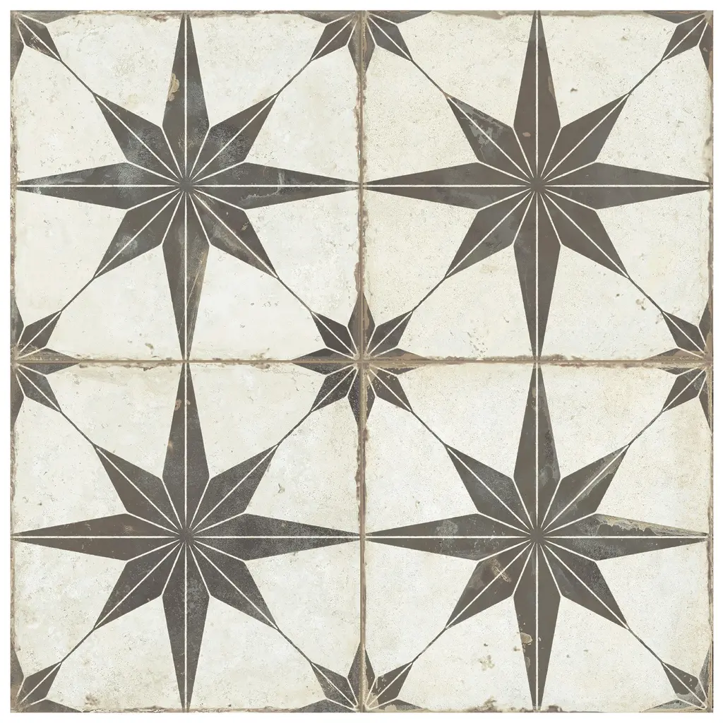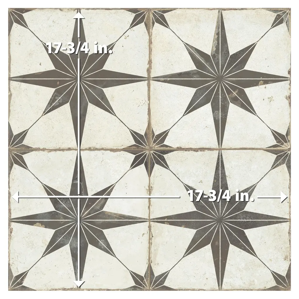 Capturing the appearance of a patterned look, our Kings Star Supernova Nero Porcelain Floor and Wall Tile features a slightly textured, matte finish, providing decorative appeal that adapts to a variety of stylistic contexts. A durable addition to our Kings Star Collection, Supernova Nero's porcelain design offers unmatched versatility and water resistance, making it perfect for indoor and outdoor spaces, statement walls to patios, adding a touch of elegance and resilience to any setting. Containing 10 different print variations that are randomly distributed throughout each case, this beige square tile offers a one-of-a-kind look. With its impervious, frost-resistant features, this tile is an ideal selection for both indoor and outdoor commercial and residential installations, including kitchens, bathrooms, backsplashes, showers, hallways, entryways, patios and fireplace facades. This tile is a perfect choice on its own or paired with other products in the Kings Collection. Tile is the better choice for your space! 11.1 square feet, 5 pieces per case. Case weight is 49.6 lbs. Grade 1, first-quality porcelain tile for floor and wall use 17.75 in. width x 17.75 in. length x 0.37 in. thick Glazed, slightly textured finish with a low sheen and slight variation in tone PEI Rating IV has high resistance to abrasion and is suitable for heavy-duty residential and commercial kitchens, hotels, exhibition and sales rooms with some dirt conditions Impervious tiles have a water absorption of less than 0.5% for indoor and outdoor use and are frost resistant This tile is ADA approved for slip resistance with a DCOF value of 0.42 or higher. Completely frost resistant for indoor or outdoor applications; use a latex-modified thinset for acceptable bond strength Please note: A sample of this product may be a partial piece cut from the full size tile in order to provide an affordable and convenient way for customers to judge the quality and finish of this item. Samples are not returnable.
