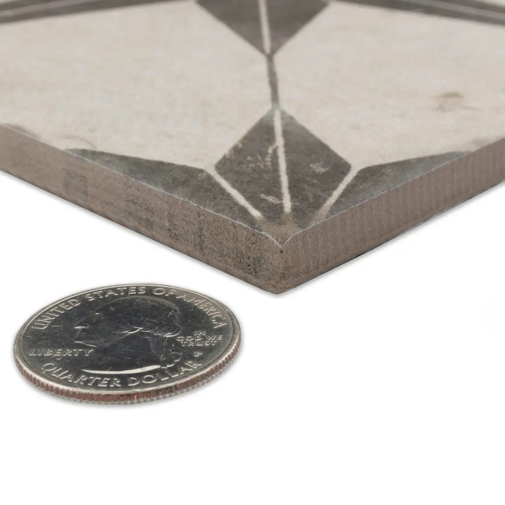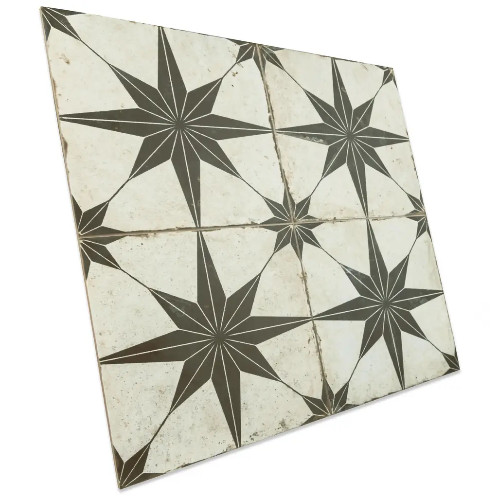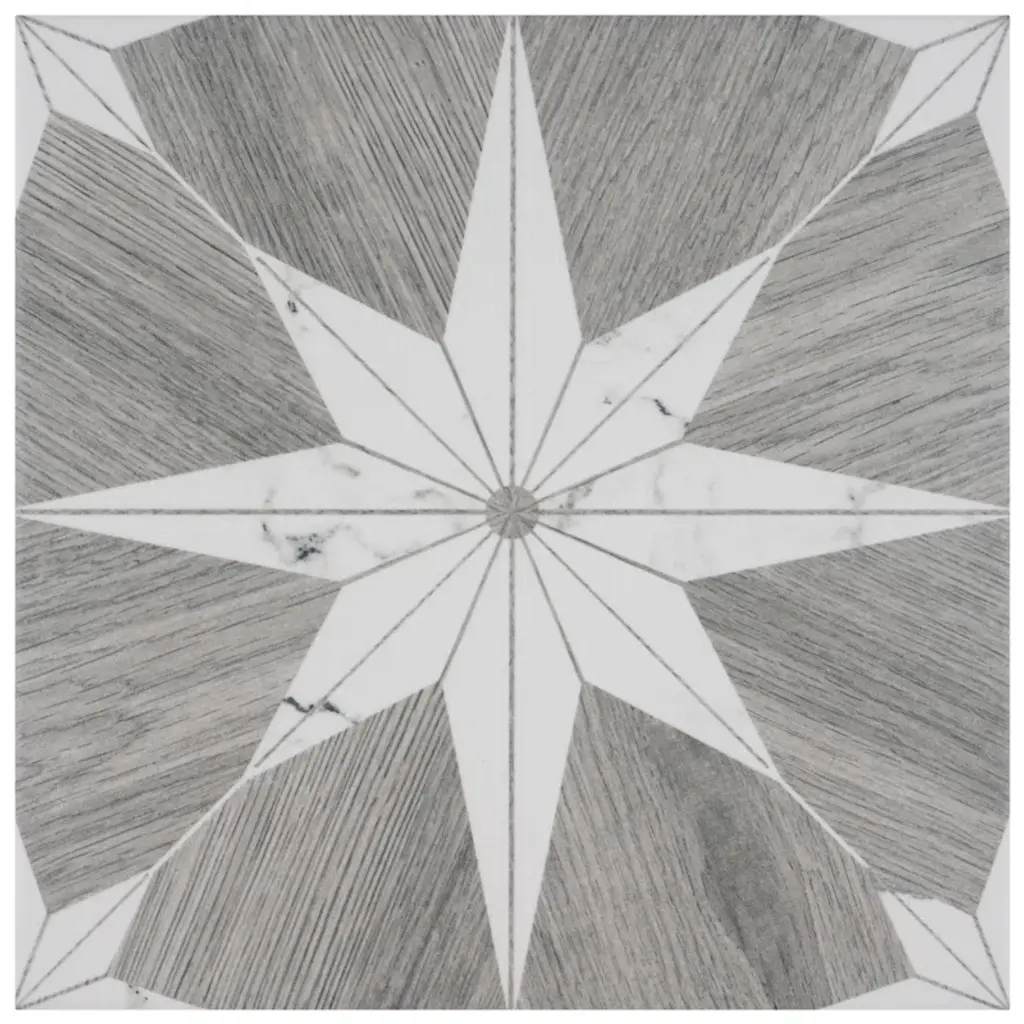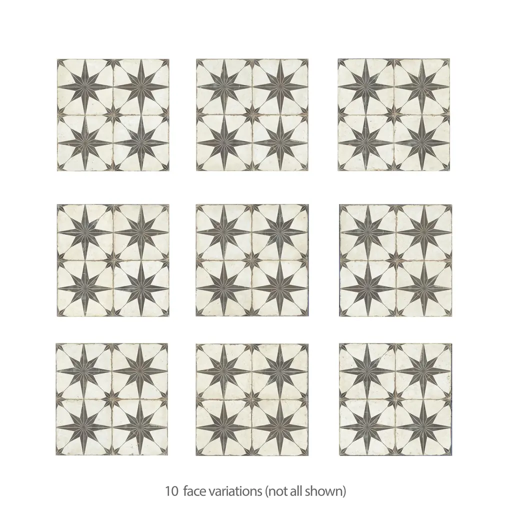Capturing the appearance of a patterned look, our Kings Star Supernova Nero Porcelain Floor and Wall Tile features a slightly textured, matte finish, providing decorative appeal that adapts to a variety of stylistic contexts. A durable addition to our Kings Star Collection, Supernova Nero's porcelain design offers unmatched versatility and water resistance, making it perfect for indoor and outdoor spaces, statement walls to patios, adding a touch of elegance and resilience to any setting. Containing 10 different print variations that are randomly distributed throughout each case, this beige square tile offers a one-of-a-kind look. With its impervious, frost-resistant features, this tile is an ideal selection for both indoor and outdoor commercial and residential installations, including kitchens, bathrooms, backsplashes, showers, hallways, entryways, patios and fireplace facades. This tile is a perfect choice on its own or paired with other products in the Kings Collection. Tile is the better choice for your space! 11.1 square feet, 5 pieces per case. Case weight is 49.6 lbs. Grade 1, first-quality porcelain tile for floor and wall use 17.75 in. width x 17.75 in. length x 0.37 in. thick Glazed, slightly textured finish with a low sheen and slight variation in tone PEI Rating IV has high resistance to abrasion and is suitable for heavy-duty residential and commercial kitchens, hotels, exhibition and sales rooms with some dirt conditions Impervious tiles have a water absorption of less than 0.5% for indoor and outdoor use and are frost resistant This tile is ADA approved for slip resistance with a DCOF value of 0.42 or higher. Completely frost resistant for indoor or outdoor applications; use a latex-modified thinset for acceptable bond strength Please note: A sample of this product may be a partial piece cut from the full size tile in order to provide an affordable and convenient way for customers to judge the quality and finish of this item. Samples are not returnable.