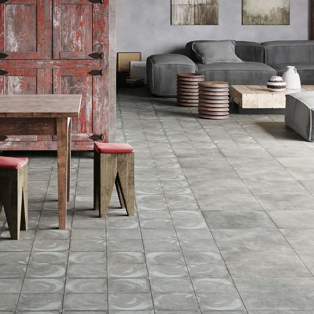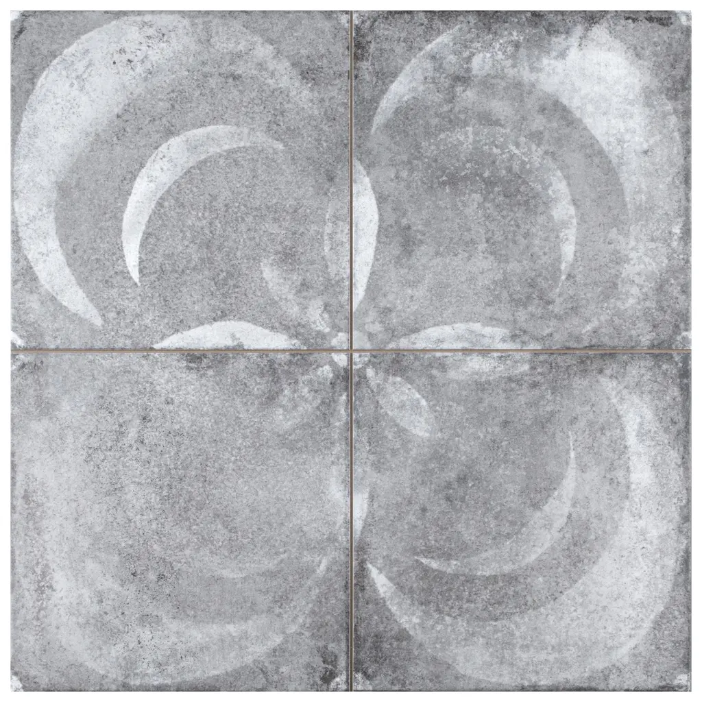 Modern and vintage design elements blend together to create our Kings Vendome Gris Porcelain Floor and Wall Tile. Featuring a worn cement appearance, this tile is a subtle statement piece created by ornamental craftsman's designs in faded white shades. Available in 16 print variations that are randomly scattered throughout each case, the variation throughout each tile mimics an authentic aged appearance. Designed by interior architect and furniture designer Francisco Segarra, this tile is a true reflection of vintage industrial design. Realistic imitations of scuffs and spots that are the marks of well-loved, worn, century-old tile bring rustic charm to your interior. Save time and labor spent arranging smaller square tiles and instead install these durable porcelain slabs, which have four squares separated by scored grout lines. The scored grout lines can be grouted with the color of your choice to further customize your installation. Tile is the better choice for your space. This tile is made from natural ingredients, making it a healthy choice as it is free from allergens, VOCs, formaldehyde and PVC. 11.1 square feet, 5 pieces per case. Case weight is 51.18 lbs. Grade 1, first-quality porcelain tile for floor and wall use 17.75 in. width x 17.75 in. length x 0.4 in. thick Glazed, smooth finish with a low sheen and moderate variation in tone PEI Rating IV has high resistance to abrasion and is suitable for heavy-duty residential and commercial kitchens, hotels, exhibition and sales rooms with some dirt conditions Impervious tiles have a water absorption of less than 0.5% for indoor and outdoor use and are frost resistant This tile is ADA approved for slip resistance with a DCOF value of 0.42 or higher. Completely frost resistant for indoor or outdoor applications; use a latex-modified thinset for acceptable bond strength Please note: A sample of this product may be a partial piece cut from the full size tile in order to provide an affordable and convenient way for customers to judge the quality and finish of this item. Samples are not returnable.