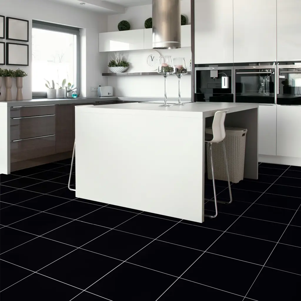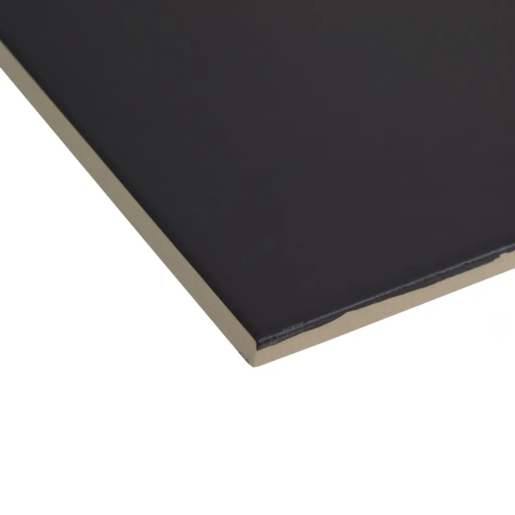 Our Klavier Matte Black Porcelain Floor and Wall Tile features both a modern and retro deco feel. The bold black glaze is uniformly applied to make a striking matte surface, recalling the look of piano keys. Whether its paired with neutral tones or bold colors, this multipurpose tile will strike the right chord wherever its installed. Tile is the better choice for your space. This tile is made from natural ingredients, making it a healthy choice as it is free from allergens, VOCs, formaldehyde and PVC. 11.25 square feet, 5 pieces per case. Case weight is 40.38 lbs. Grade 1, first-quality porcelain tile for floor and wall use 17.88 in. width x 17.88 in. length x 0.31 in. thick Glazed, smooth finish with a low sheen and uniform appearance in tone PEI Rating II is suitable for all interior walls and light foot traffic such as powder rooms Impervious tiles have a water absorption of less than 0.5% for indoor and outdoor use and are frost resistant This tile is ADA approved for slip resistance with a DCOF value of 0.42 or higher. Completely frost resistant for indoor or outdoor applications; use a latex-modified thinset for acceptable bond strength Please note: A sample of this product may be a partial piece cut from the full size tile in order to provide an affordable and convenient way for customers to judge the quality and finish of this item. Samples are not returnable.