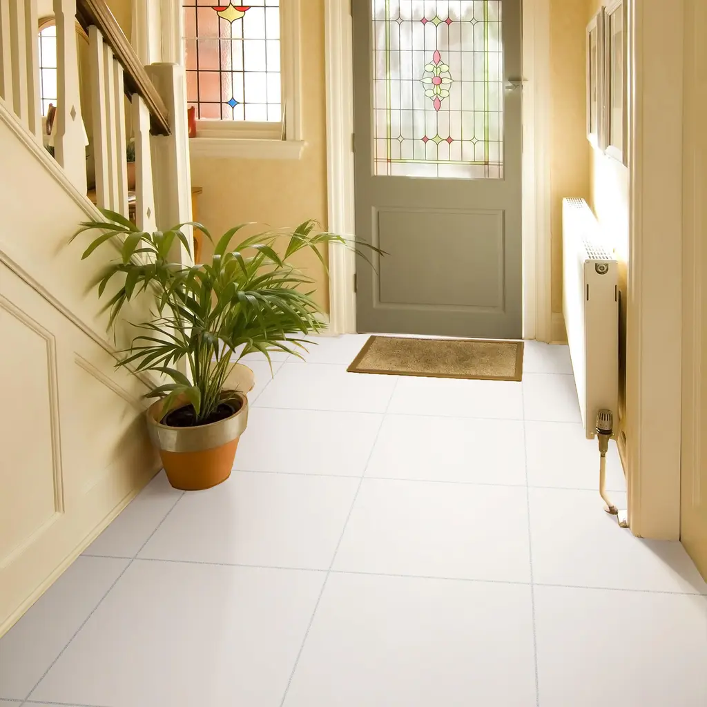 Our Klavier Matte White Porcelain Floor and Wall Tile features both a modern and retro deco feel. The bold white glaze is uniformly applied to make a striking matte surface, recalling the look of piano keys. Whether its paired with neutral tones or bold colors, this multipurpose tile will strike the right chord wherever its installed. Tile is the better choice for your space. This tile is made from natural ingredients, making it a healthy choice as it is free from allergens, VOCs, formaldehyde and PVC. 11.25 square feet, 5 pieces per case. Case weight is 40.38 lbs. Grade 1, first-quality porcelain tile for floor and wall use 17.88 in. width x 17.88 in. length x 0.31 in. thick Glazed, smooth finish with a low sheen and uniform appearance in tone PEI Rating IV has high resistance to abrasion and is suitable for heavy-duty residential and commercial kitchens, hotels, exhibition and sales rooms with some dirt conditions Impervious tiles have a water absorption of less than 0.5% for indoor and outdoor use and are frost resistant This tile is ADA approved for slip resistance with a DCOF value of 0.42 or higher. Completely frost resistant for indoor or outdoor applications; use a latex-modified thinset for acceptable bond strength Please note: A sample of this product may be a partial piece cut from the full size tile in order to provide an affordable and convenient way for customers to judge the quality and finish of this item. Samples are not returnable.