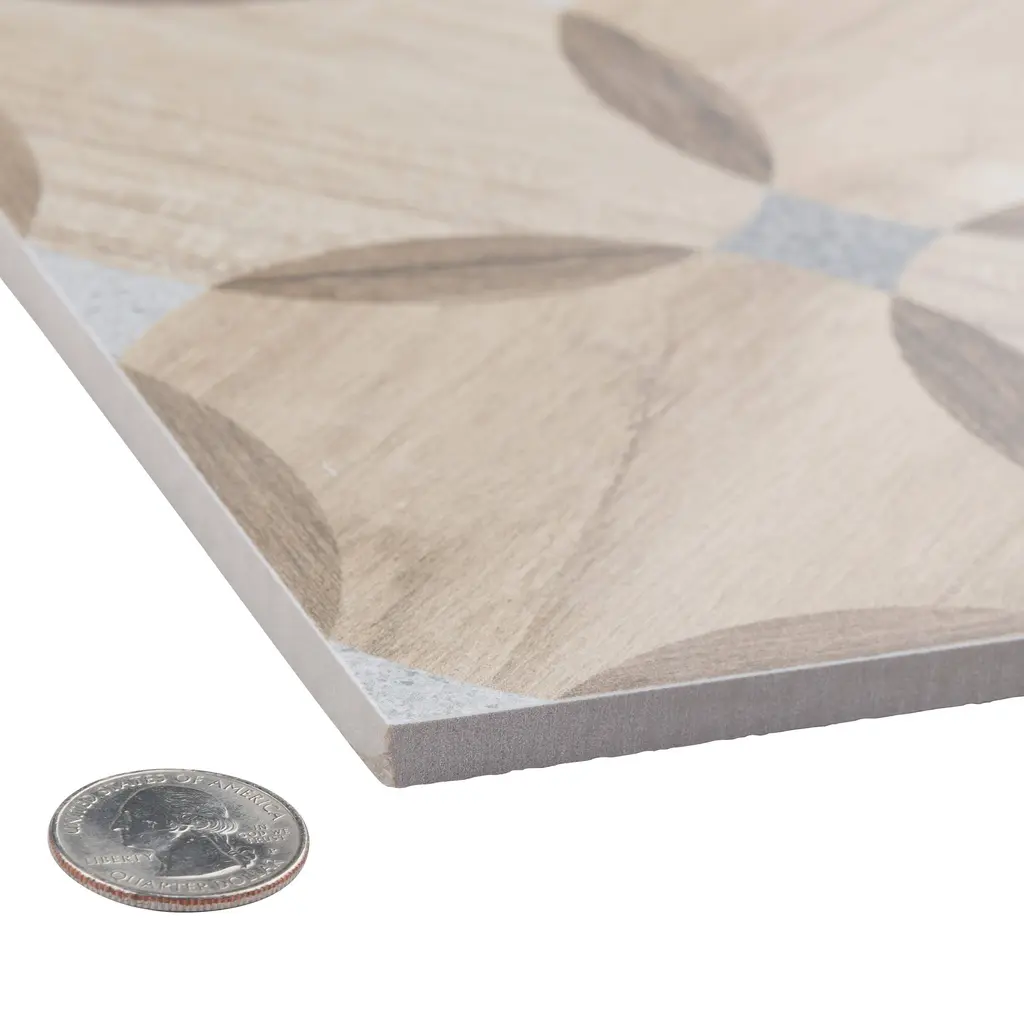 Modeling a geometric look, our Komi Mossy Porcelain Floor and Wall Tile features a smooth, matte finish, providing decorative appeal that adapts to a variety of stylistic contexts. Containing 19 different print variations that are randomly distributed throughout each case, this brown square tile offers a one-of-a-kind look. With its impervious, frost-resistant features, this tile is an ideal selection for both indoor and outdoor residential installations, including kitchens, bathrooms, backsplashes, showers, hallways and fireplace facades. This tile is a perfect choice on its own or paired with other products in the Komi Collection. Tile is the better choice for your space! 11.25 square feet, 25 pieces per case. Case weight is 40 lbs. Grade 1, first-quality porcelain tile for floor and wall use 7.88 in. width x 7.88 in. length x 0.31 in. thick Glazed, smooth finish with a low sheen and slight variation in tone PEI Rating III is suitable for medium-duty residential floors including kitchens, halls, corridors, balconies, terraces and areas used more often with normal footwear and small amounts of dirt Impervious tiles have a water absorption of less than 0.5% for indoor and outdoor use and are frost resistant This tile is ADA approved for slip resistance with a DCOF value of 0.42 or higher. Completely frost resistant for indoor or outdoor applications; use a latex-modified thinset for acceptable bond strength Please note: A sample of this product may be a partial piece cut from the full size tile in order to provide an affordable and convenient way for customers to judge the quality and finish of this item. Samples are not returnable.