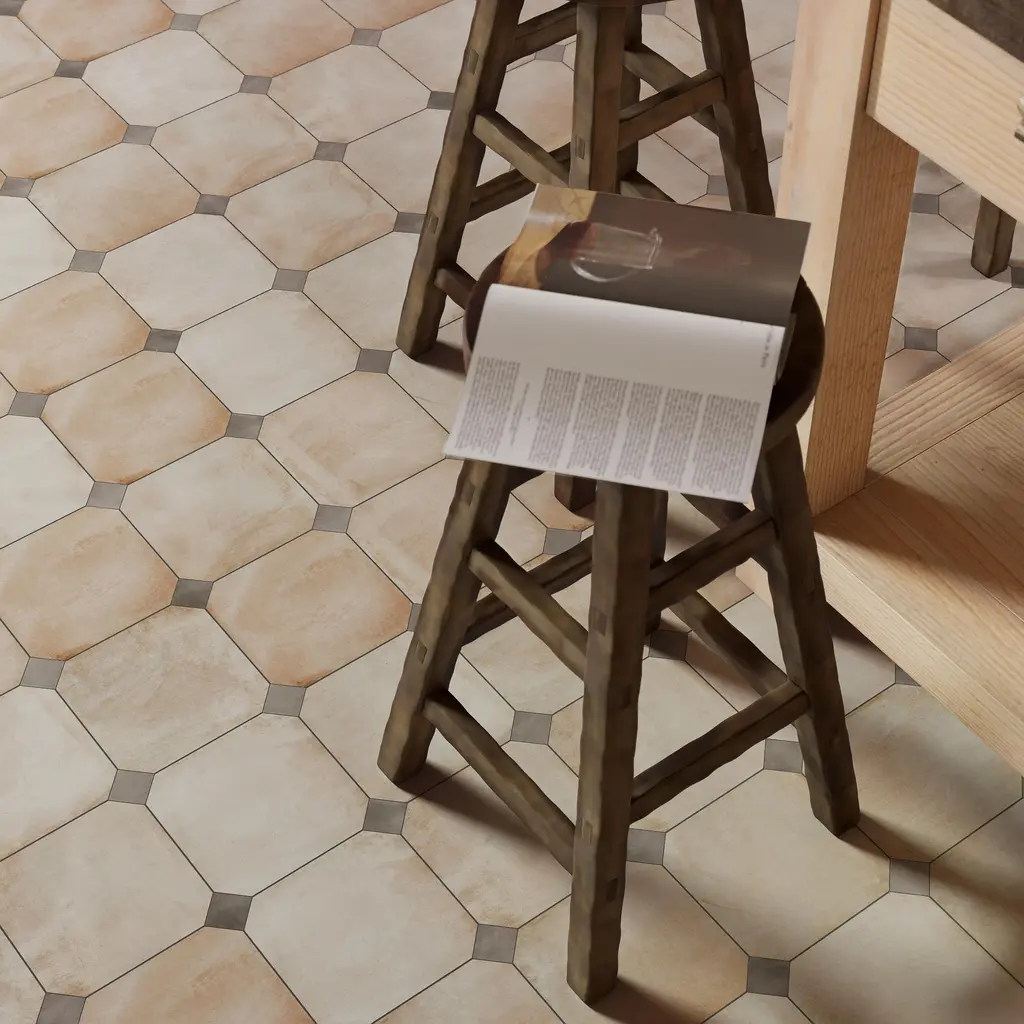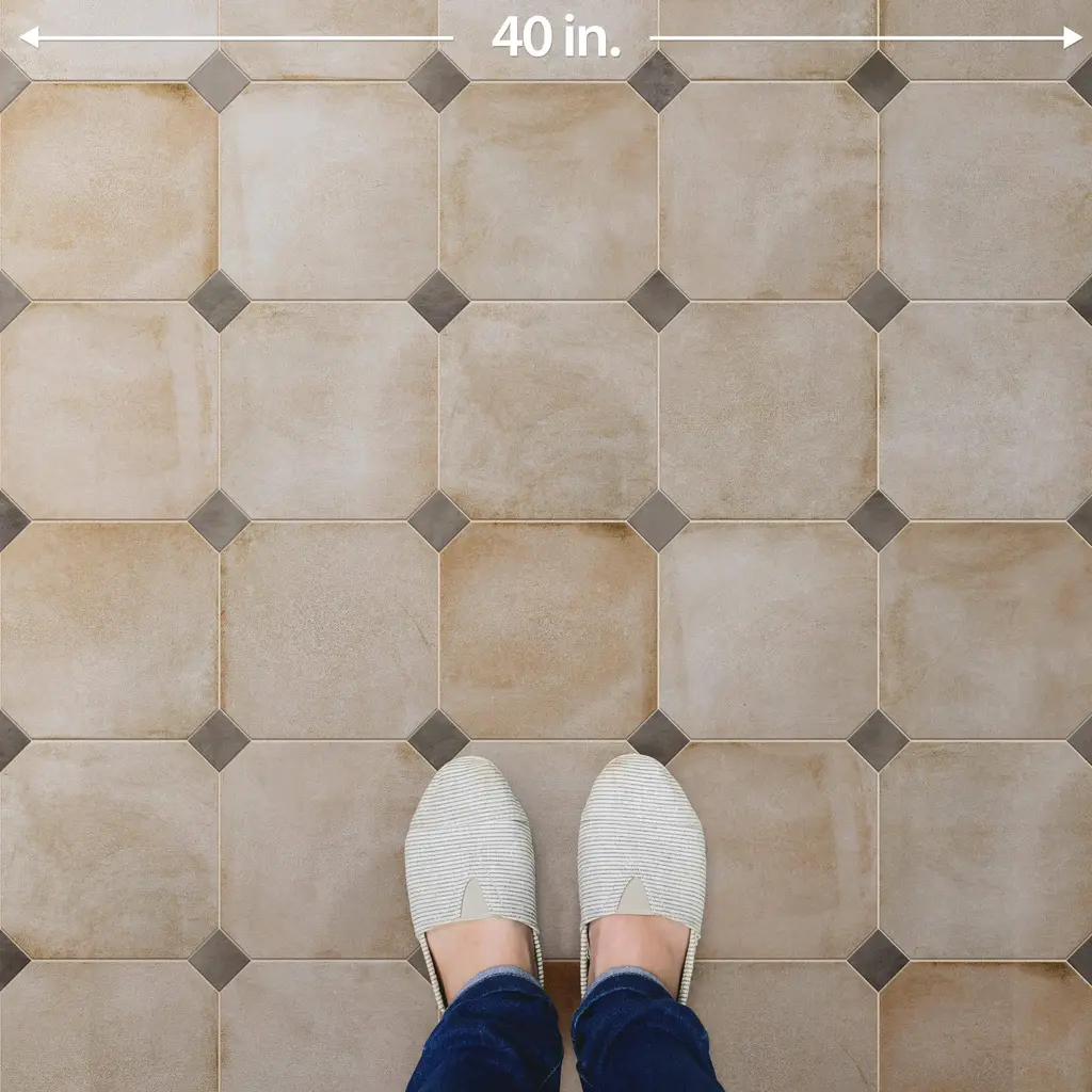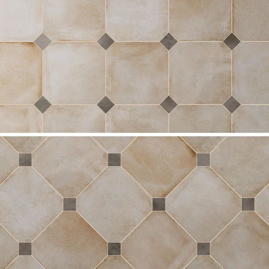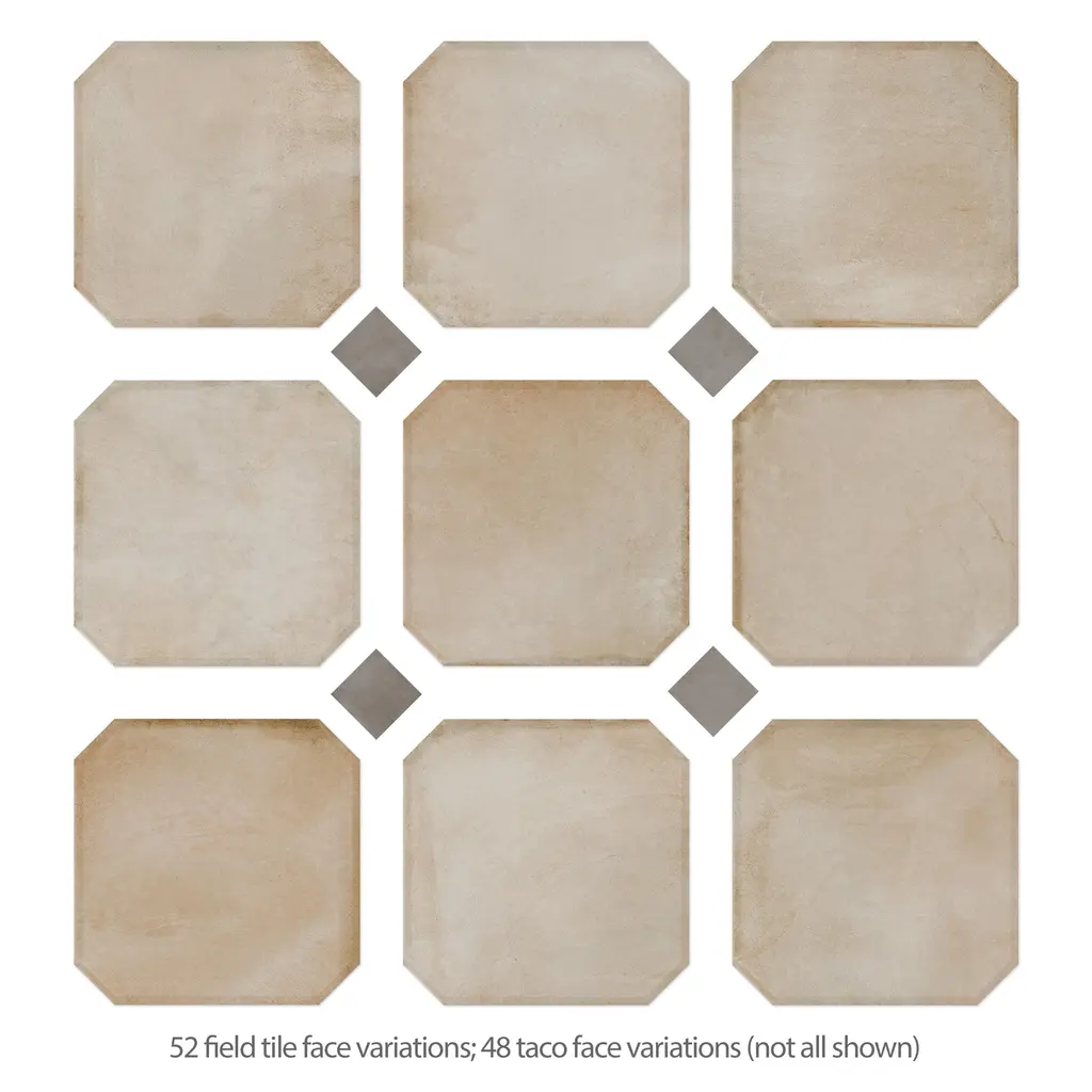 Offering a cement look, our Laverton Octagon Arena with Taco Grafito Porcelain Floor and Wall Tile features a smooth, matte finish, providing decorative appeal that adapts to a variety of stylistic contexts. Inspired by Laverton's quaint stone cottages and picturesque hills, this collection's matte finish, slight undulation, and versatile colors create a unique blend of rustic charm and timeless elegance, transforming your space into a cozy haven reminiscent of the English countryside. Containing 52 different print variations that are randomly distributed throughout each case, this beige specialty tile offers a one-of-a-kind look. With its impervious, frost-resistant features, this tile is an ideal selection for a variety of spaces including indoor and outdoor residential installations, bathrooms, backsplashes, showers, hallways, pools and fireplace facades. Discover more products from the Merola Tile Laverton Collection to complete your design. To ensure optimal results, please consult with your installer and review the product specifications to confirm that this tile meets the specific needs of your project. 11.25 square feet, 50 pieces per case. Case weight is 41.72 lbs. Grade 1, first-quality porcelain tile for floor and wall use This kit includes a total of 50 pieces, featuring a variety of components in different sizes and shapes - refer to the images for installation inspiration and ideas Glazed, smooth finish with a low sheen and moderate variation in tone PEI Rating II is suitable for all interior walls and light foot traffic such as powder rooms Impervious tiles have a water absorption of less than 0.5% for indoor and outdoor use and are frost resistant This tile is ADA approved for slip resistance with a DCOF value of 0.42 or higher. Completely frost resistant for indoor or outdoor applications; use a latex-modified thinset for acceptable bond strength Please note: A sample of this product may be a partial piece cut from the full size tile in order to provide an affordable and convenient way for customers to judge the quality and finish of this item. Samples are not returnable.