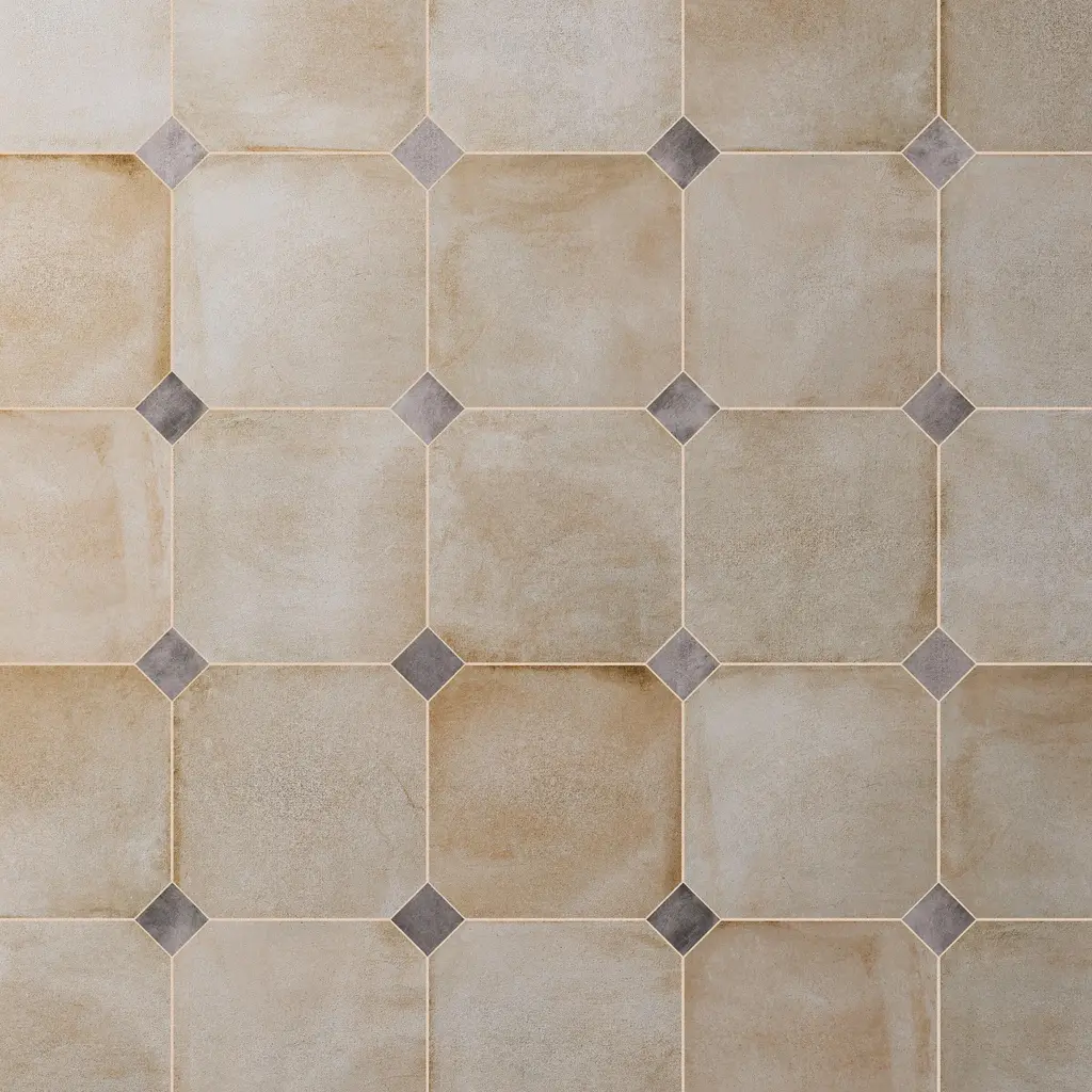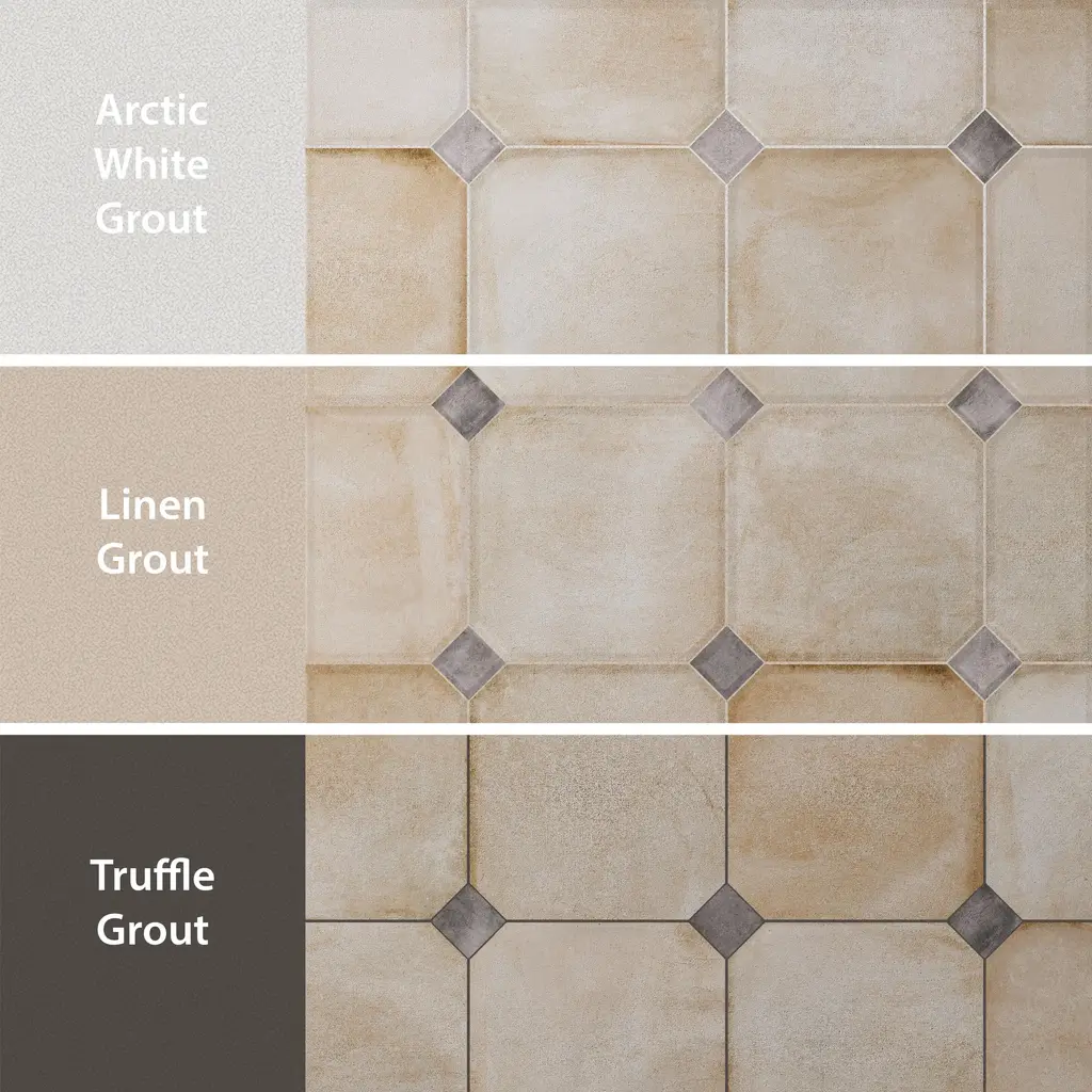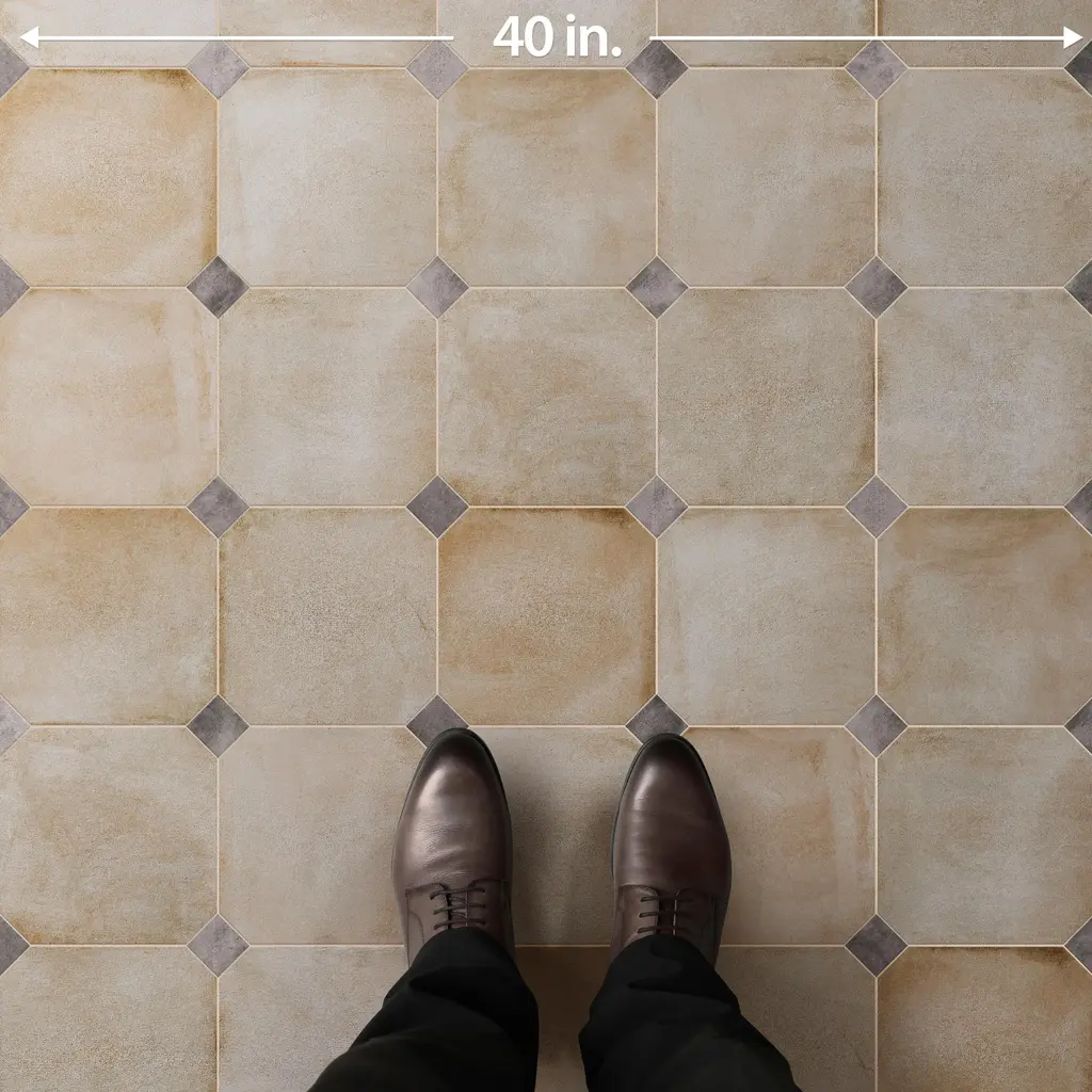 Offering a cement look, our Laverton Octagon Arena with Taco Gris Porcelain Floor and Wall Tile features a smooth, matte finish, providing decorative appeal that adapts to a variety of stylistic contexts. Inspired by Laverton's quaint stone cottages and picturesque hills, this collection's matte finish, slight undulation, and versatile colors create a unique blend of rustic charm and timeless elegance, transforming your space into a cozy haven reminiscent of the English countryside. Containing 52 different print variations that are randomly distributed throughout each case, this beige specialty tile offers a one-of-a-kind look. With its impervious, frost-resistant features, this tile is an ideal selection for a variety of spaces including indoor and outdoor residential installations, kitchens, bathrooms, backsplashes, showers, hallways, pools and fireplace facades. Discover more products from the Merola Tile Laverton Collection to complete your design. To ensure optimal results, please consult with your installer and review the product specifications to confirm that this tile meets the specific needs of your project. 11.25 square feet, 50 pieces per case. Case weight is 41.72 lbs. Grade 1, first-quality porcelain tile for floor and wall use This kit includes a total of 50 pieces, featuring a variety of components in different sizes and shapes - refer to the images for installation inspiration and ideas Glazed, smooth finish with a low sheen and moderate variation in tone PEI Rating III is suitable for medium-duty residential floors including kitchens, halls, corridors, balconies, terraces and areas used more often with normal footwear and small amounts of dirt Impervious tiles have a water absorption of less than 0.5% for indoor and outdoor use and are frost resistant This tile is ADA approved for slip resistance with a DCOF value of 0.42 or higher. Completely frost resistant for indoor or outdoor applications; use a latex-modified thinset for acceptable bond strength Please note: A sample of this product may be a partial piece cut from the full size tile in order to provide an affordable and convenient way for customers to judge the quality and finish of this item. Samples are not returnable.