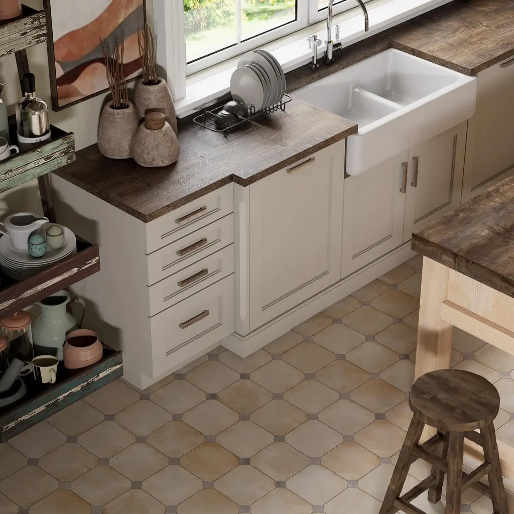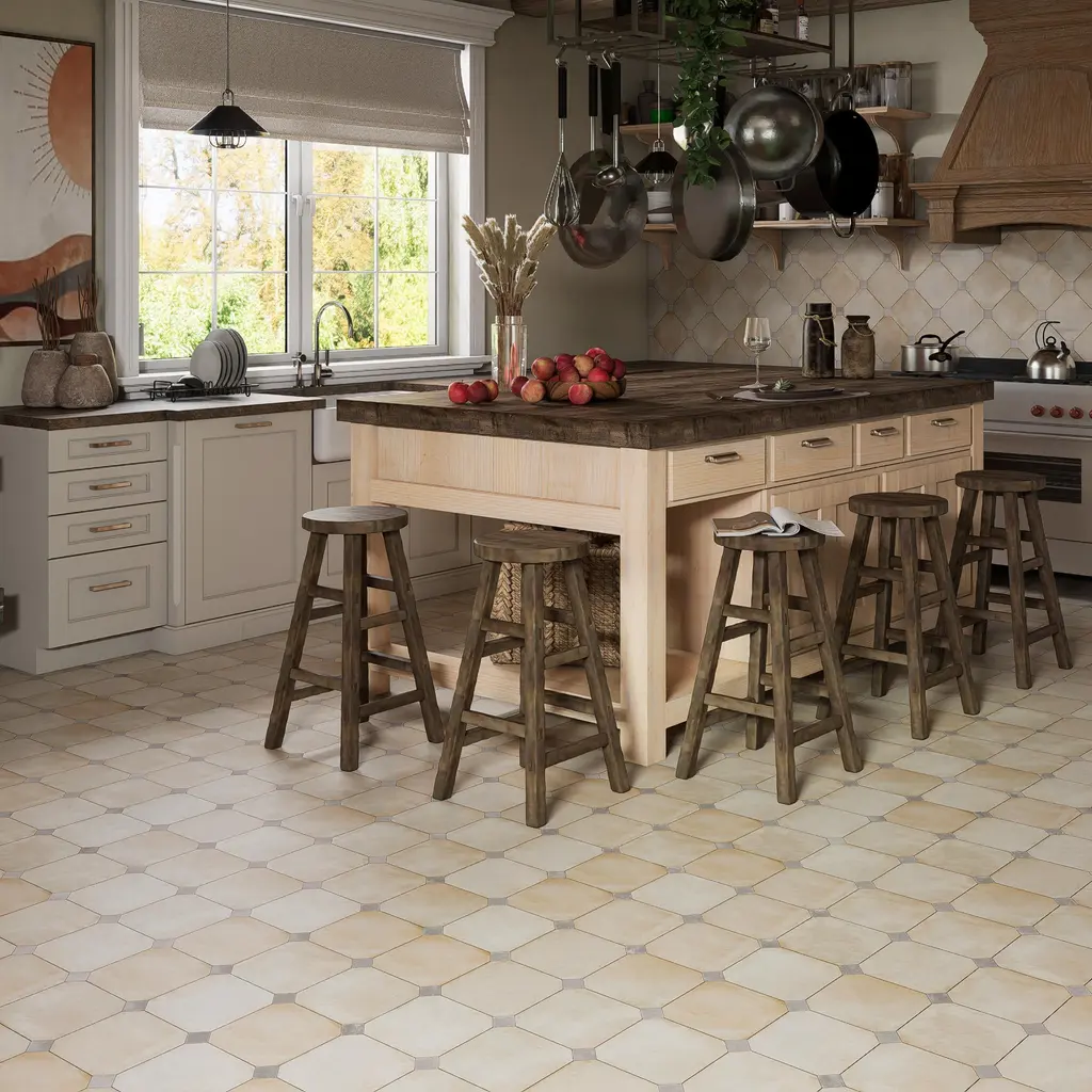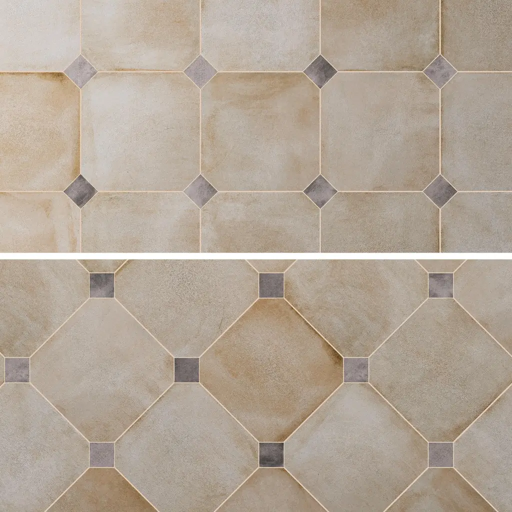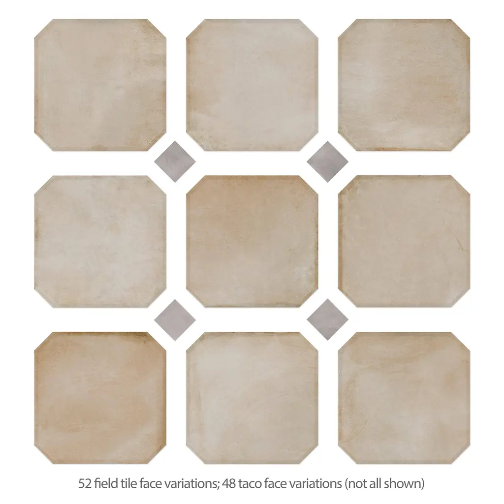 Offering a cement look, our Laverton Octagon Arena with Taco Gris Porcelain Floor and Wall Tile features a smooth, matte finish, providing decorative appeal that adapts to a variety of stylistic contexts. Inspired by Laverton's quaint stone cottages and picturesque hills, this collection's matte finish, slight undulation, and versatile colors create a unique blend of rustic charm and timeless elegance, transforming your space into a cozy haven reminiscent of the English countryside. Containing 52 different print variations that are randomly distributed throughout each case, this beige specialty tile offers a one-of-a-kind look. With its impervious, frost-resistant features, this tile is an ideal selection for a variety of spaces including indoor and outdoor residential installations, kitchens, bathrooms, backsplashes, showers, hallways, pools and fireplace facades. Discover more products from the Merola Tile Laverton Collection to complete your design. To ensure optimal results, please consult with your installer and review the product specifications to confirm that this tile meets the specific needs of your project. 11.25 square feet, 50 pieces per case. Case weight is 41.72 lbs. Grade 1, first-quality porcelain tile for floor and wall use This kit includes a total of 50 pieces, featuring a variety of components in different sizes and shapes - refer to the images for installation inspiration and ideas Glazed, smooth finish with a low sheen and moderate variation in tone PEI Rating III is suitable for medium-duty residential floors including kitchens, halls, corridors, balconies, terraces and areas used more often with normal footwear and small amounts of dirt Impervious tiles have a water absorption of less than 0.5% for indoor and outdoor use and are frost resistant This tile is ADA approved for slip resistance with a DCOF value of 0.42 or higher. Completely frost resistant for indoor or outdoor applications; use a latex-modified thinset for acceptable bond strength Please note: A sample of this product may be a partial piece cut from the full size tile in order to provide an affordable and convenient way for customers to judge the quality and finish of this item. Samples are not returnable.