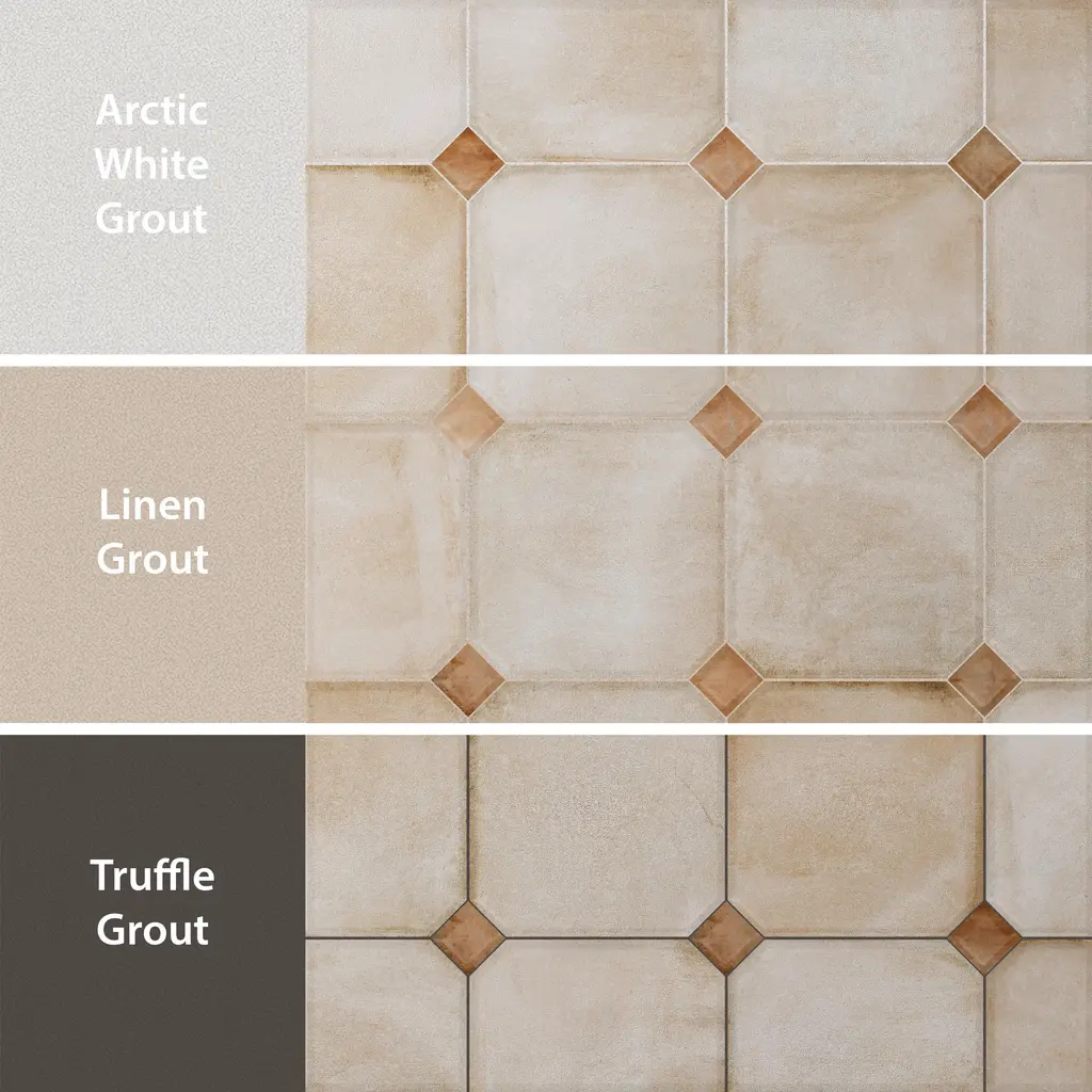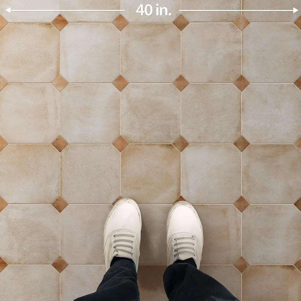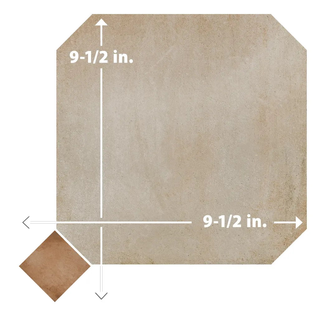 Offering a cement look, our Laverton Octagon Arena with Taco Natural Porcelain Floor and Wall Tile features a smooth, matte finish, providing decorative appeal that adapts to a variety of stylistic contexts. Inspired by Laverton's quaint stone cottages and picturesque hills, this collection's matte finish, slight undulation, and versatile colors create a unique blend of rustic charm and timeless elegance, transforming your space into a cozy haven reminiscent of the English countryside. Containing 52 different print variations that are randomly distributed throughout each case, this beige specialty tile offers a one-of-a-kind look. With its impervious, frost-resistant features, this tile is an ideal selection for a variety of spaces including indoor and outdoor residential installations, kitchens, bathrooms, backsplashes, showers, hallways, pools and fireplace facades. Discover more products from the Merola Tile Laverton Collection to complete your design. To ensure optimal results, please consult with your installer and review the product specifications to confirm that this tile meets the specific needs of your project. 11.25 square feet, 50 pieces per case. Case weight is 41.72 lbs. Grade 1, first-quality porcelain tile for floor and wall use This kit includes a total of 50 pieces, featuring a variety of components in different sizes and shapes - refer to the images for installation inspiration and ideas Glazed, smooth finish with a low sheen and moderate variation in tone PEI Rating III is suitable for medium-duty residential floors including kitchens, halls, corridors, balconies, terraces and areas used more often with normal footwear and small amounts of dirt Impervious tiles have a water absorption of less than 0.5% for indoor and outdoor use and are frost resistant This tile is ADA approved for slip resistance with a DCOF value of 0.42 or higher. Completely frost resistant for indoor or outdoor applications; use a latex-modified thinset for acceptable bond strength Please note: A sample of this product may be a partial piece cut from the full size tile in order to provide an affordable and convenient way for customers to judge the quality and finish of this item. Samples are not returnable.