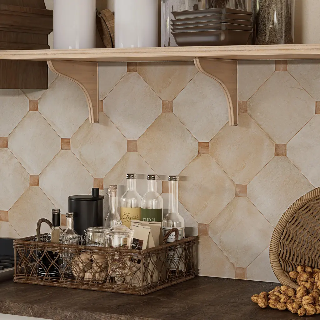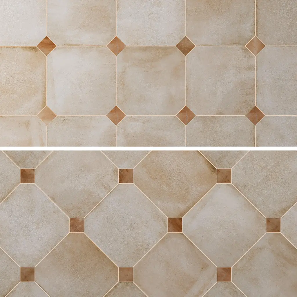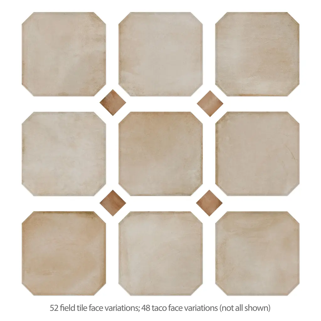 Offering a cement look, our Laverton Octagon Arena with Taco Natural Porcelain Floor and Wall Tile features a smooth, matte finish, providing decorative appeal that adapts to a variety of stylistic contexts. Inspired by Laverton's quaint stone cottages and picturesque hills, this collection's matte finish, slight undulation, and versatile colors create a unique blend of rustic charm and timeless elegance, transforming your space into a cozy haven reminiscent of the English countryside. Containing 52 different print variations that are randomly distributed throughout each case, this beige specialty tile offers a one-of-a-kind look. With its impervious, frost-resistant features, this tile is an ideal selection for a variety of spaces including indoor and outdoor residential installations, kitchens, bathrooms, backsplashes, showers, hallways, pools and fireplace facades. Discover more products from the Merola Tile Laverton Collection to complete your design. To ensure optimal results, please consult with your installer and review the product specifications to confirm that this tile meets the specific needs of your project. 11.25 square feet, 50 pieces per case. Case weight is 41.72 lbs. Grade 1, first-quality porcelain tile for floor and wall use This kit includes a total of 50 pieces, featuring a variety of components in different sizes and shapes - refer to the images for installation inspiration and ideas Glazed, smooth finish with a low sheen and moderate variation in tone PEI Rating III is suitable for medium-duty residential floors including kitchens, halls, corridors, balconies, terraces and areas used more often with normal footwear and small amounts of dirt Impervious tiles have a water absorption of less than 0.5% for indoor and outdoor use and are frost resistant This tile is ADA approved for slip resistance with a DCOF value of 0.42 or higher. Completely frost resistant for indoor or outdoor applications; use a latex-modified thinset for acceptable bond strength Please note: A sample of this product may be a partial piece cut from the full size tile in order to provide an affordable and convenient way for customers to judge the quality and finish of this item. Samples are not returnable.