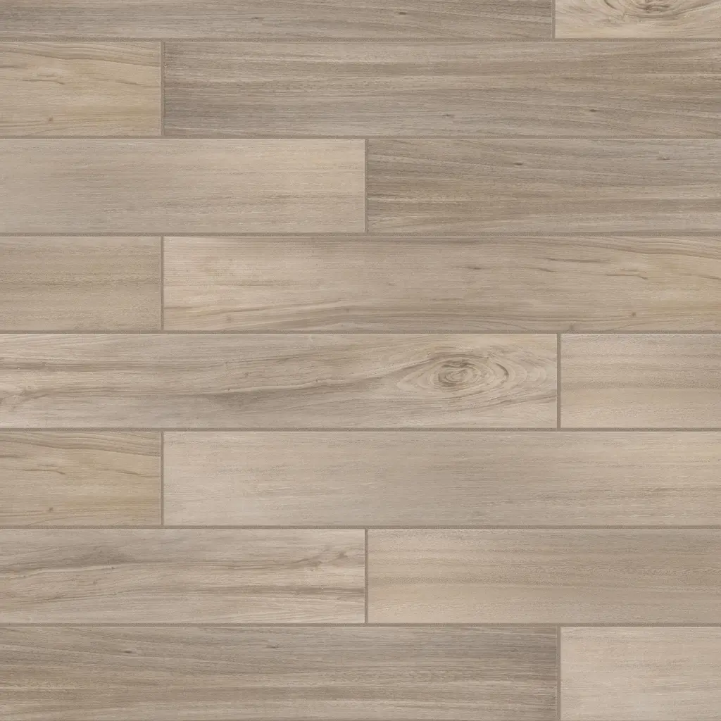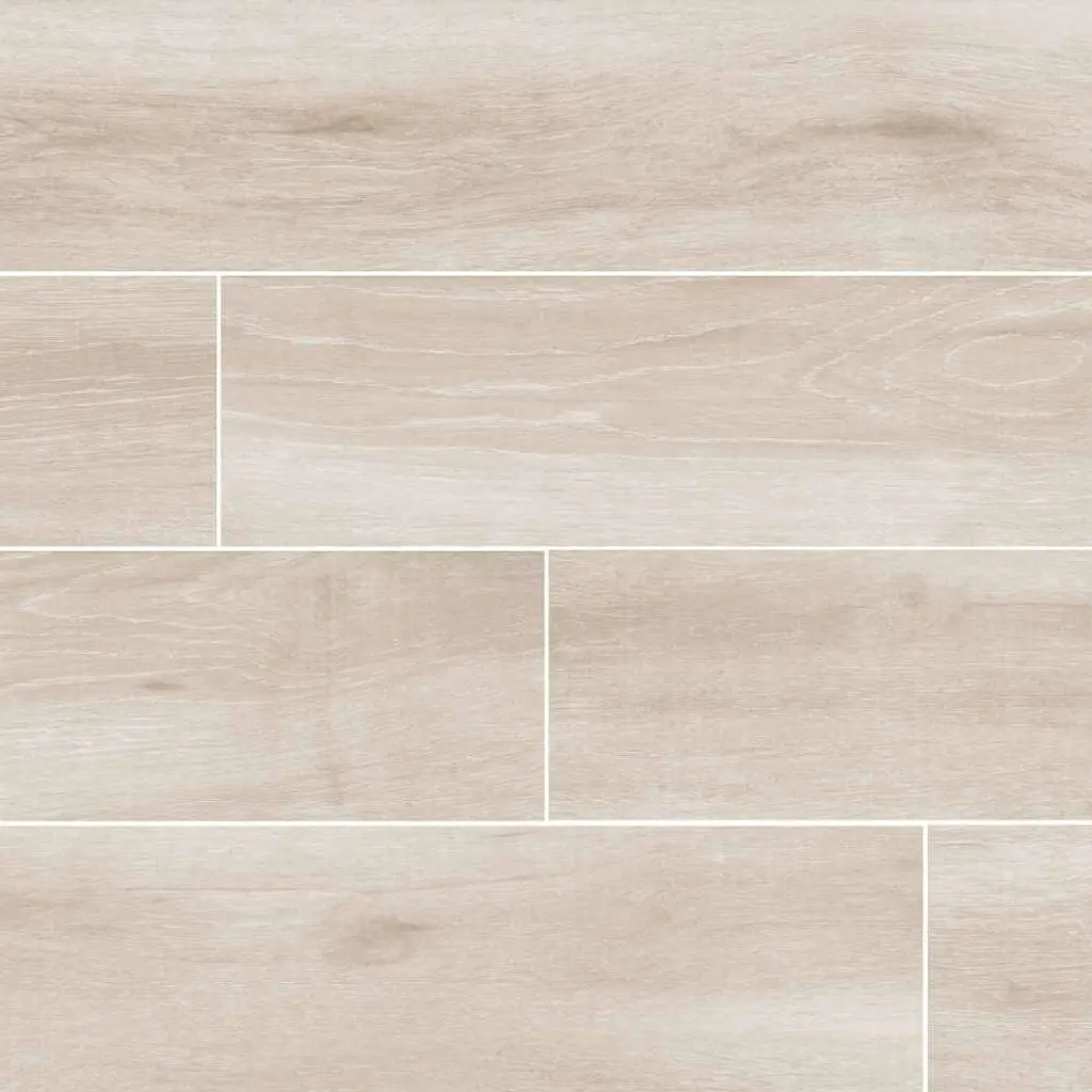 Replicating a wood look, our Llama Almond Porcelain Floor and Wall Tile features a slightly textured, mixed finish, providing decorative appeal that adapts to a variety of stylistic contexts. Capturing the warmth of natural wood, the Llama porcelain tile collection offers a unique, textured relief that blends elegance and warmth, creating a distinctive, sensory-rich décor experience that enhances any space with their timeless appeal and natural charm. Containing 18 different print variations that are randomly distributed throughout each case, this beige rectangle tile offers a one-of-a-kind look. With its impervious, frost-resistant features, this tile is an ideal selection for a variety of spaces including indoor and outdoor commercial and residential installations, kitchens, bathrooms, backsplashes, showers, hallways, entryways, pools and fireplace facades. Discover more products from the Merola Tile Llama Collection to complete your design. To ensure optimal results, please consult with your installer and review the product specifications to confirm that this tile meets the specific needs of your project.