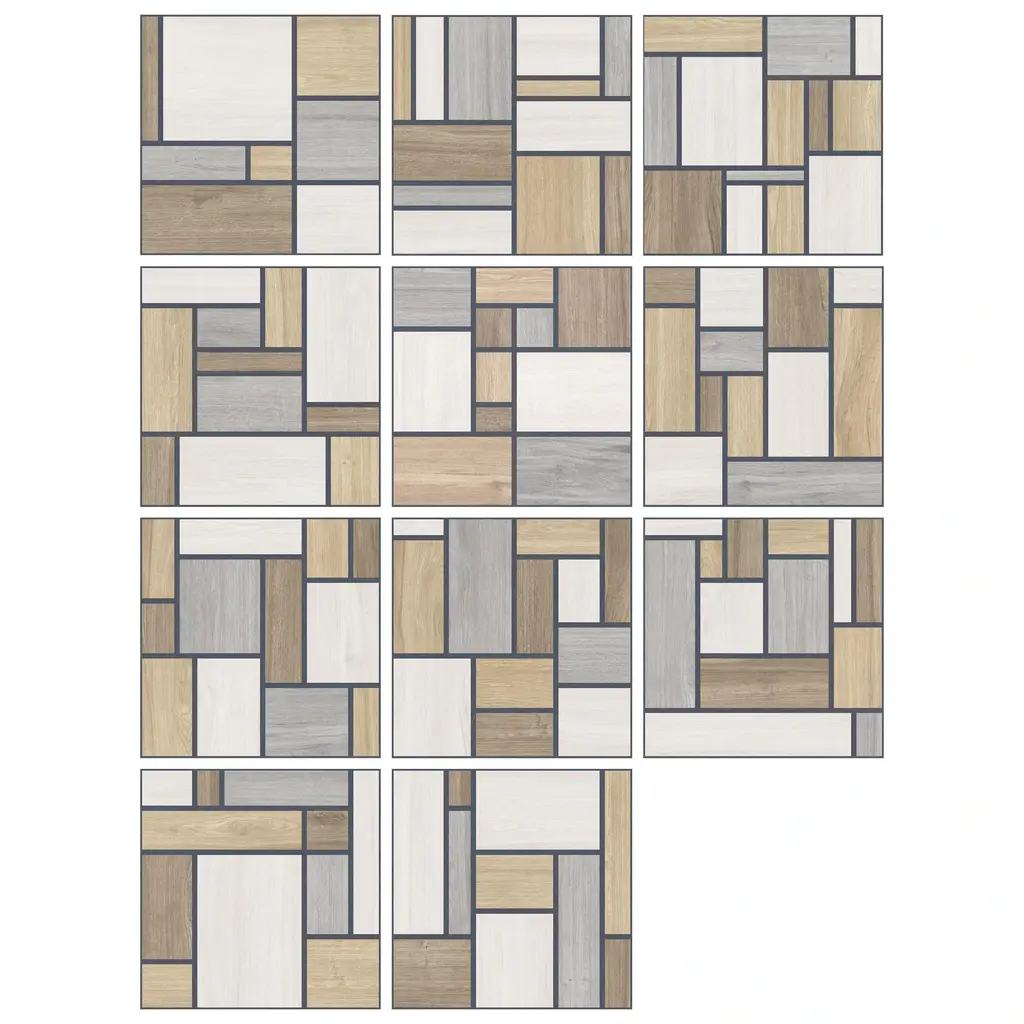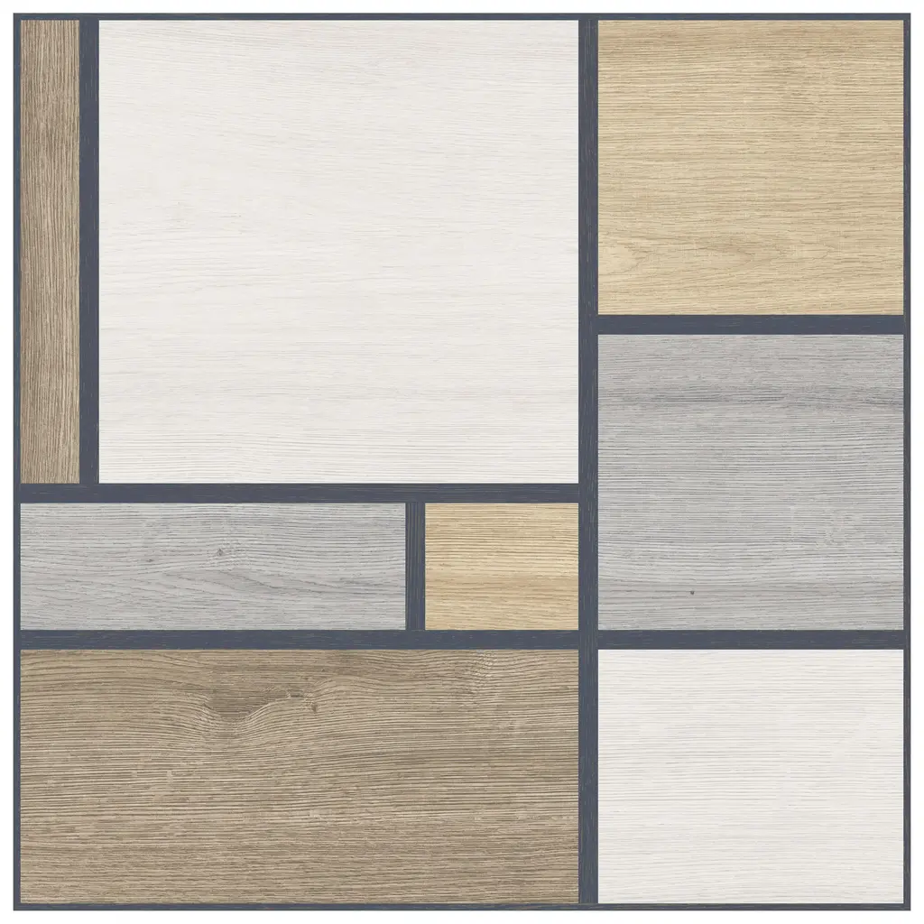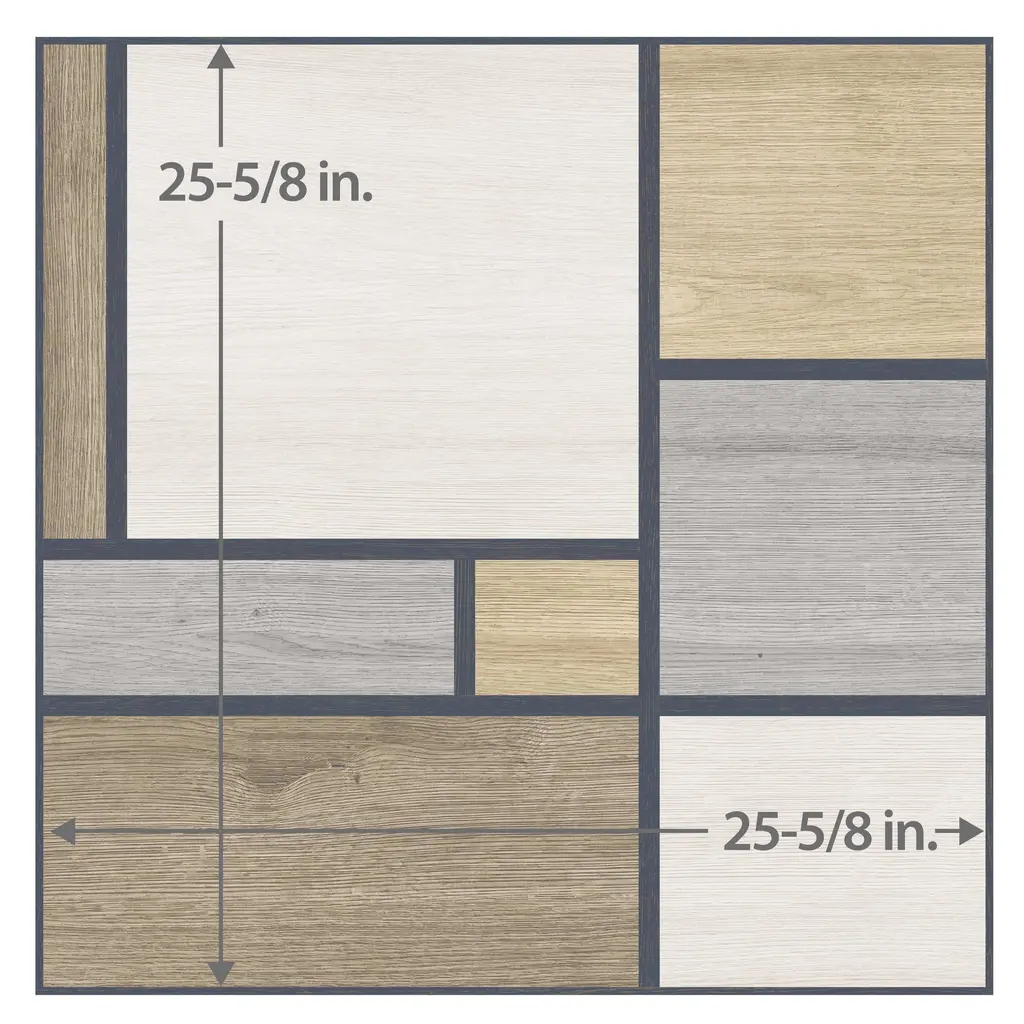 Replicating a wood look, our Llama Mondrian Porcelain Floor and Wall Tile features a mixed textured finish, providing decorative appeal that adapts to a variety of stylistic contexts. The Llama Mondrian Porcelain Tile is a creative fusion of abstract art with the elegant wood-looks of our Llama Collection. Containing 11 different print variations that are randomly distributed throughout each case, this brown square tile offers a one-of-a-kind look. With its impervious, frost-resistant features, this tile is an ideal selection for a variety of spaces including indoor and outdoor commercial and residential installations, kitchens, bathrooms, backsplashes, showers, hallways, entryways, patios, pools and fireplace facades. Discover more products from the Merola Tile Llama Collection to complete your design. To ensure optimal results, please consult with your installer and review the product specifications to confirm that this tile meets the specific needs of your project. 13.83 square feet, 3 pieces per case. Case weight is 61.29 lbs. Grade 1, first-quality porcelain tile for floor and wall use 25.63 in. width x 25.63 in. length x 0.39 in. thick Glazed, mixed texture with a mixed finish and substantial variation in tone PEI Rating IV has high resistance to abrasion and is suitable for heavy-duty residential and commercial kitchens, hotels, exhibition and sales rooms with some dirt conditions Impervious tiles have a water absorption of less than 0.5% for indoor and outdoor use and are frost resistant This tile is ADA approved for slip resistance with a DCOF value of 0.42 or higher. Completely frost resistant for indoor or outdoor applications; use a latex-modified thinset for acceptable bond strength Please note: A sample of this product may be a partial piece cut from the full size tile in order to provide an affordable and convenient way for customers to judge the quality and finish of this item. Samples are not returnable.