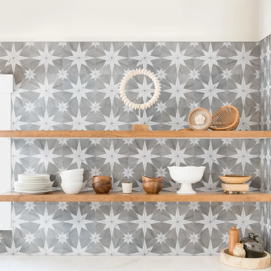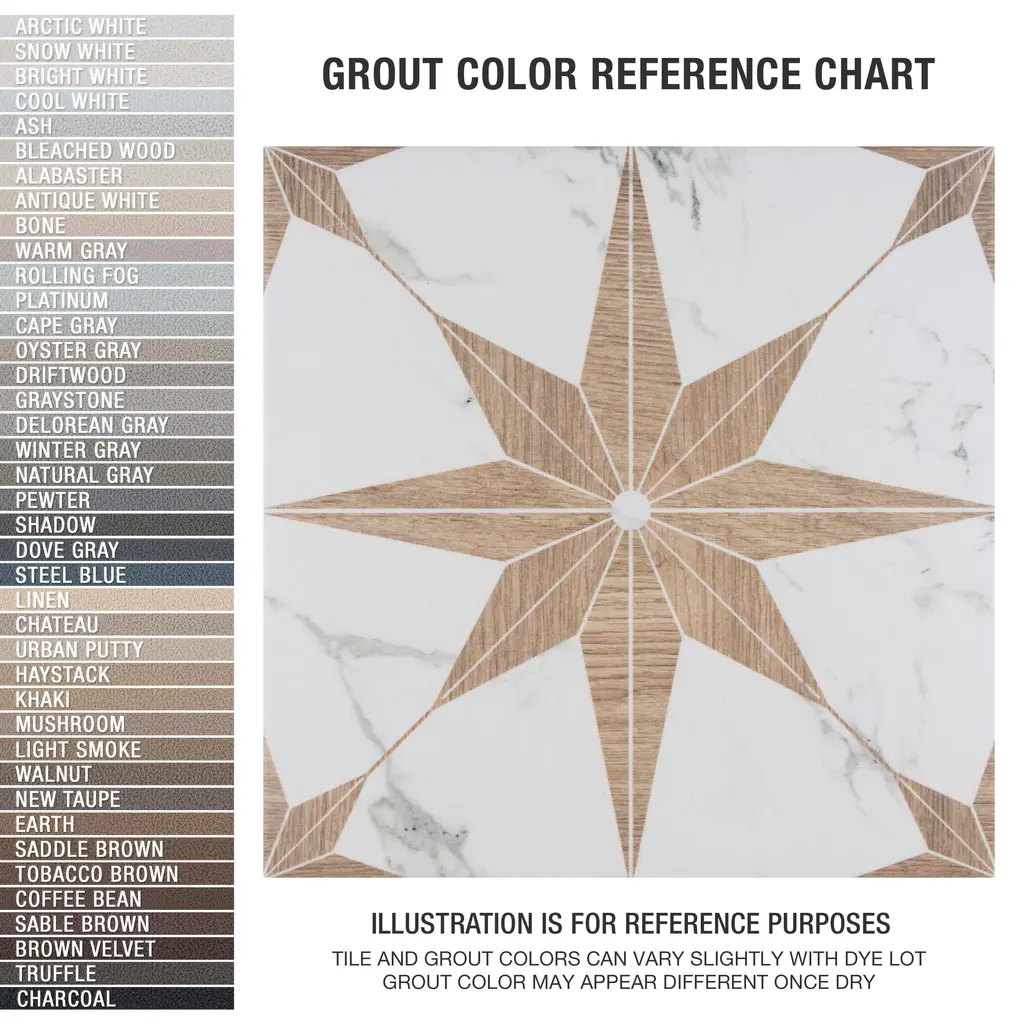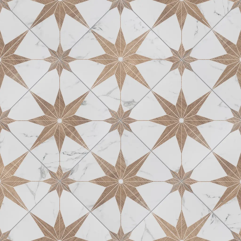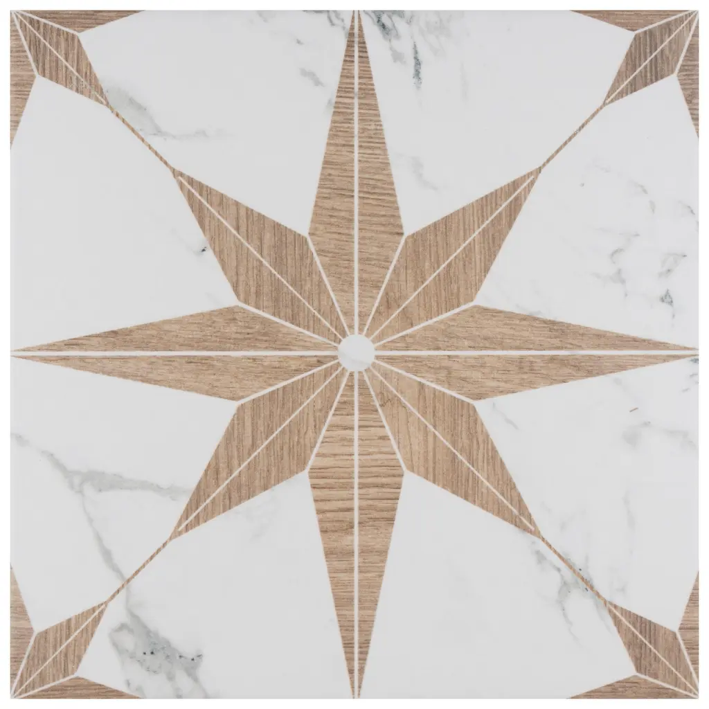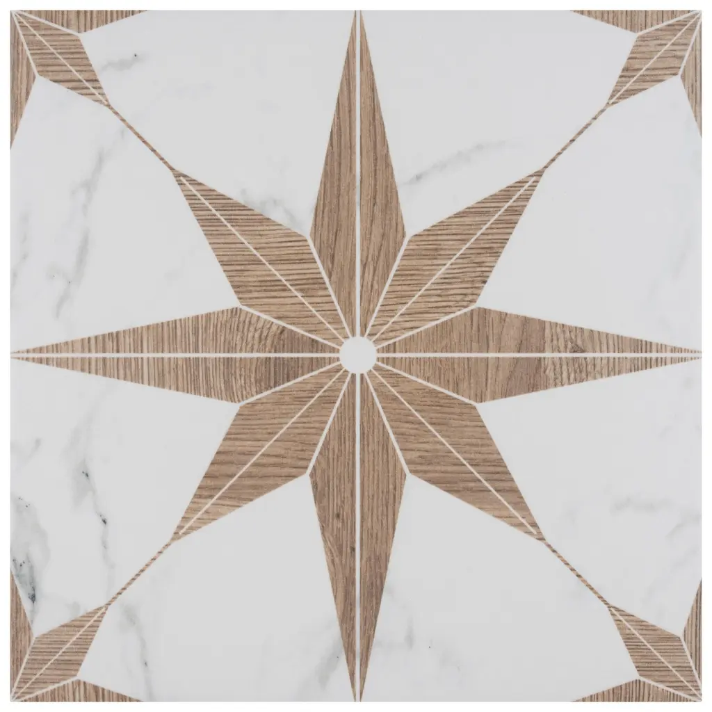 Capturing the appearance of a marble look, our Llama Stella Loire Noce Porcelain Floor and Wall Tile features a mixed textured finish, providing decorative appeal that adapts to a variety of stylistic contexts. Combining our Llama and Timeless Collections, the Llama Loire series merges marble's timeless beauty with wood's natural charm. These tiles blend elegance and warmth with a unique, textured relief, creating a distinctive, sensory-rich décor experience that enhances any space. Containing 23 different print variations that are randomly distributed throughout each case, this white square tile offers a one-of-a-kind look. With its impervious, frost-resistant features, this tile is an ideal selection for a variety of spaces including indoor and outdoor commercial and residential installations, kitchens, bathrooms, backsplashes, showers, hallways, entryways, patios, pools and fireplace facades. Discover more products from the Merola Tile Llama Collection to complete your design. To ensure optimal results, please consult with your installer and review the product specifications to confirm that this tile meets the specific needs of your project. 10.88 square feet, 16 pieces per case. Case weight is 45.81 lbs. Grade 1, first-quality porcelain tile for floor and wall use 9.75 in. width x 9.75 in. length x 0.38 in. thick Glazed, mixed texture with a mixed finish and slight variation in tone PEI Rating IV has high resistance to abrasion and is suitable for heavy-duty residential and commercial kitchens, hotels, exhibition and sales rooms with some dirt conditions Impervious tiles have a water absorption of less than 0.5% for indoor and outdoor use and are frost resistant This tile is ADA approved for slip resistance with a DCOF value of 0.42 or higher. Completely frost resistant for indoor or outdoor applications; use a latex-modified thinset for acceptable bond strength Please note: A sample of this product may be a partial piece cut from the full size tile in order to provide an affordable and convenient way for customers to judge the quality and finish of this item. Samples are not returnable.