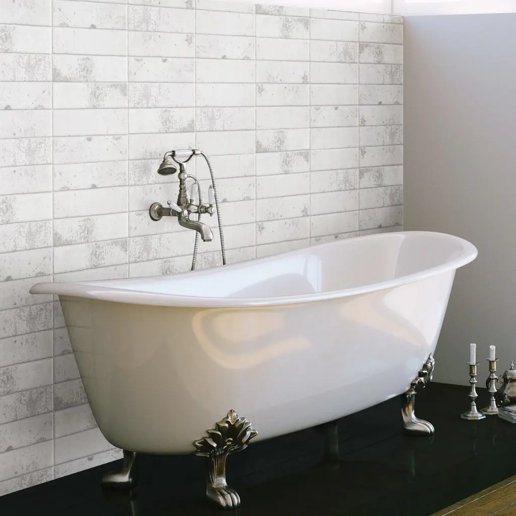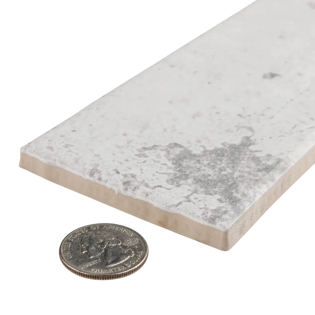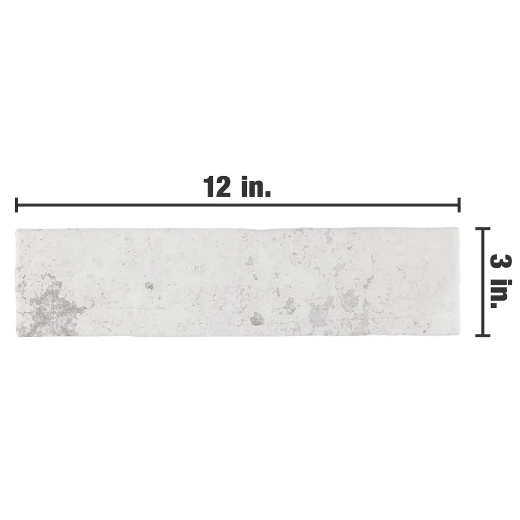 Our London White Glossy Ceramic Wall Tile Tiles provides decorative rustic charm through its worn brick look. This elongated subway tile features distressed patterns with splashes of embossed glossy glazing in grey color tones that flow dynamically throughout each piece. To add further contrast and dimension to the design, this wall tile features a slightly textured surface and subtle edge irregularities that give the tile an organic handcrafted appearance. This stylish design is visually appealing and versatile, blending beautifully with a range of looks from vintage industrial to modern day. Intended for interior wall use, it is an excellent selection for kitchen backsplashes, bathroom showers, and fireplace facades. Tile is the better choice for your space. This tile is made from natural ingredients, making it a healthy choice as it is free from allergens, VOCs, formaldehyde and PVC. 5.72 square feet, 22 pieces per case. Case weight is 13.2 lbs. Grade 1, first-quality ceramic tile for wall use 3 in. width x 12 in. length x 0.3 in. thick Glazed, slightly textured finish with a mixed finish and moderate variation in tone PEI Rating 0 is suitable for wall use only Non-Vitreous tiles have water absorption of more than 7% for indoor use DCOF value is not available for this product. Please reference the PEI and MOHS rating for installation. Not frost resistant Please note: A sample of this product may be a partial piece cut from the full size tile in order to provide an affordable and convenient way for customers to judge the quality and finish of this item. Samples are not returnable.