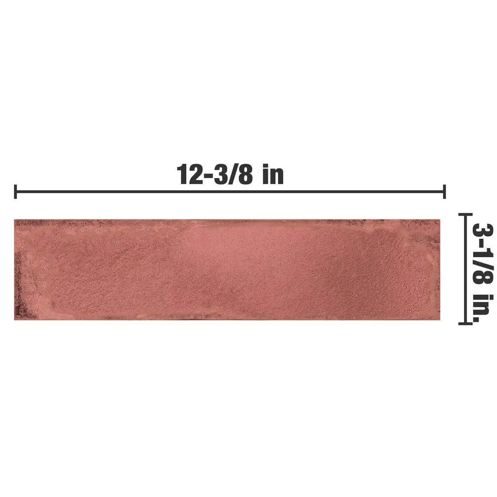 Offering a subway look, our Luca Garnet Ceramic Wall Tile features a smooth, glossy finish, providing decorative appeal that adapts to a variety of stylistic contexts. Containing 15 different print variations that are randomly distributed throughout each case, this pink rectangle tile offers a one-of-a-kind look. With its non-vitreous features, this tile is an ideal selection for indoor commercial and residential installations, including kitchens, bathrooms, backsplashes, showers, hallways and fireplace facades. This tile is a perfect choice on its own or paired with other products in the Luca Collection. Tile is the better choice for your space! 7.0 square feet, 25 pieces per case. Case weight is 20.64 lbs. Grade 1, first-quality ceramic tile for wall use 3.13 in. width x 12.38 in. length x 0.31 in. thick Glazed, smooth finish with a high sheen and substantial variation in tone PEI Rating 0 is suitable for wall use only Non-Vitreous tiles have water absorption of more than 7% for indoor use DCOF value is not available for this product. Please reference the PEI and MOHS rating for installation. Not frost resistant Please note: A sample of this product may be a partial piece cut from the full size tile in order to provide an affordable and convenient way for customers to judge the quality and finish of this item. Samples are not returnable.