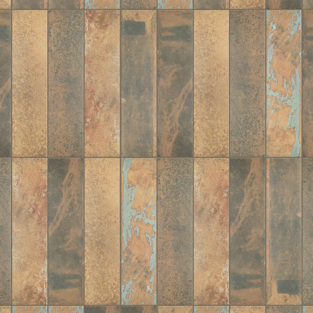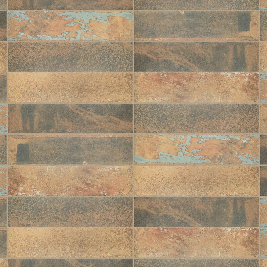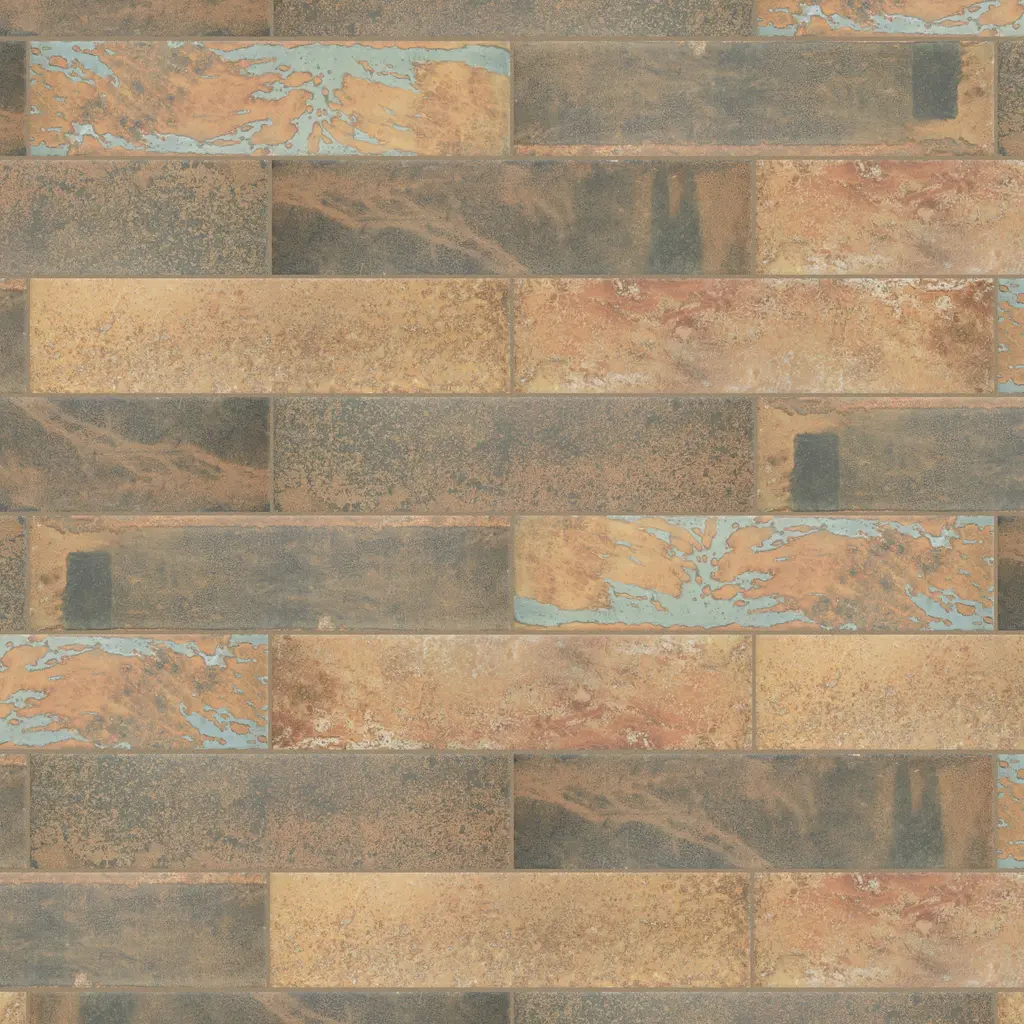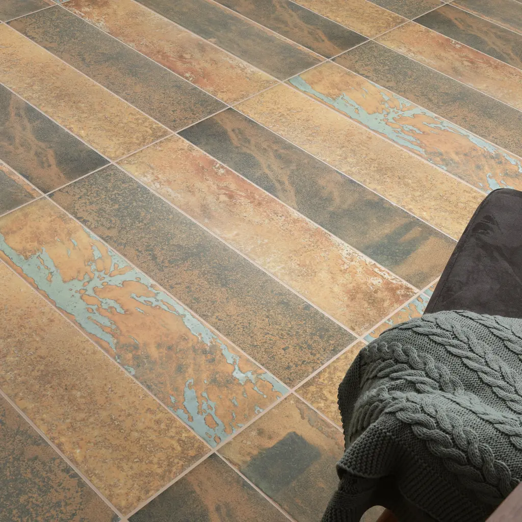 Reminiscent of oxidized metal, our Maheno Mix Porcelain Floor and Wall Tile evokes industrial elegance and sophistication. This plank tile features weathered pattern variations in terracotta, charcoal brown, teal green, and brown tones that are complemented by rusty shading for an aged metal appearance. With a textured, matte finish, this rustic porcelain tile offers chic decorative appeal that can blend into virtually any design theme, ranging from contemporary projects to traditional installations. Available in 73 print variations that are randomly distributed throughout each case, this tile offers a one-of-a-kind look. Its impervious, frost-resistant, and durable features make this an ideal choice for indoor and outdoor installations including kitchens, bathrooms, backsplashes, showers, hallways, entryways, and patios. Tile is the better choice for your space. This tile is made from natural ingredients, making it a healthy choice as it is free from allergens, VOCs, formaldehyde, and PVC.