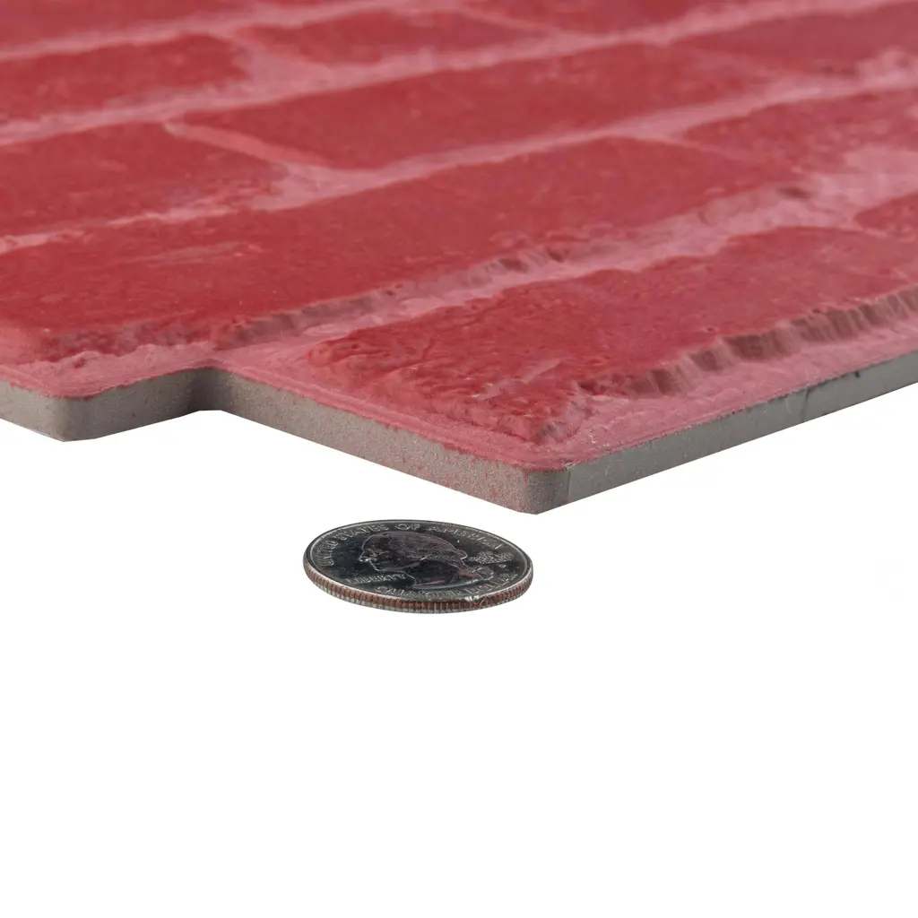 Offering a brick look, our Manhattan Rojo Porcelain Wall Tile features a medium textured, matte finish, providing decorative appeal that adapts to a variety of stylistic contexts. With its impervious, frost-resistant features, this red specialty tile is an ideal selection for both indoor and outdoor commercial and residential installations, including kitchens, bathrooms, backsplashes, showers, hallways and fireplace facades. This tile is a perfect choice on its own or paired with other products in the Manhattan Collection. Tile is the better choice for your space! 12.6 square feet, 7 pieces per case. Case weight is 52.03 lbs. Grade 1, first-quality porcelain tile for wall use 12.25 in. width x 21 in. length x 0.39 in. thick Glazed, medium textured finish with a low sheen and uniform appearance in tone PEI Rating 0 is suitable for wall use only Impervious tiles have a water absorption of less than 0.5% for indoor and outdoor use and are frost resistant DCOF value is not available for this product. Please reference the PEI and MOHS rating for installation. Completely frost resistant for indoor or outdoor applications; use a latex-modified thinset for acceptable bond strength Please note: A sample of this product may be a partial piece cut from the full size tile in order to provide an affordable and convenient way for customers to judge the quality and finish of this item. Samples are not returnable.