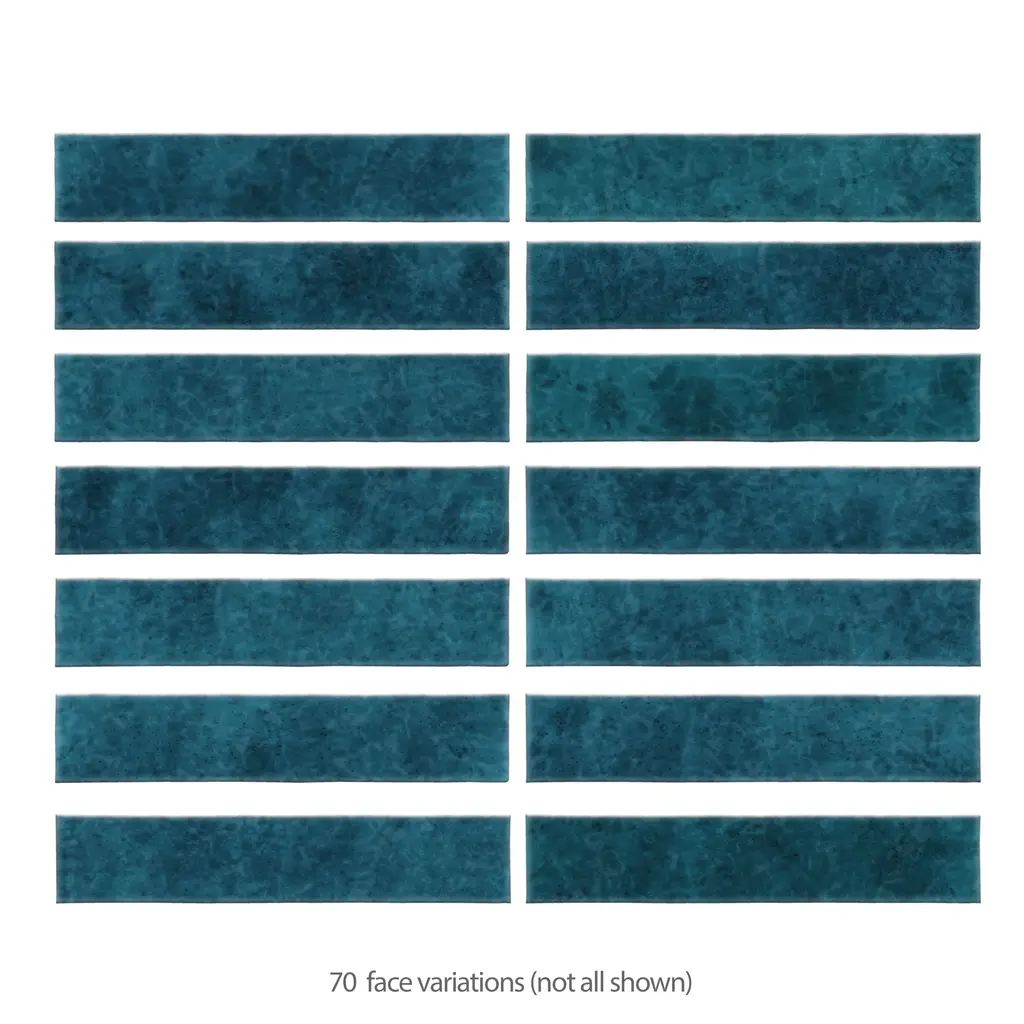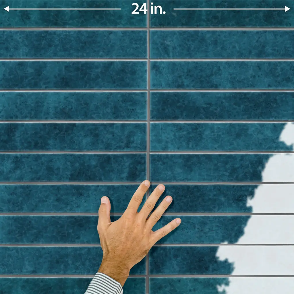 Replicating a handmade look, our Menorca Amun Ceramic Wall Tile features a smooth, glossy finish, providing decorative appeal that adapts to a variety of stylistic contexts. A tribute to Menorca's vibrant festivals and natural landscapes, these zellige-inspired white body ceramic tiles feature bold colors, dynamic patterns, and artisanal charm with irregular edges and crackle glazing, creating a lively, sophisticated atmosphere perfect for personalized, elegant spaces. Containing 70 different print variations that are randomly distributed throughout each case, this blue rectangle tile offers a one-of-a-kind look. With its non-vitreous features, this tile is an ideal selection for indoor commercial and residential installations, including kitchens, bathrooms, backsplashes, showers, hallways and fireplace facades. This tile is a perfect choice on its own or paired with other products in the Menorca Collection. Tile is the better choice for your space! 6.44 square feet, 28 pieces per case. Case weight is 18.34 lbs. Grade 1, first-quality ceramic tile for wall use 2.5 in. width x 12.88 in. length x 0.33 in. thick Glazed, smooth finish with a high sheen and substantial variation in tone PEI Rating 0 is suitable for wall use only Non-Vitreous tiles have water absorption of more than 7% for indoor use DCOF value is not available for this product. Please reference the PEI and MOHS rating for installation. Not frost resistant Please note: A sample of this product may be a partial piece cut from the full size tile in order to provide an affordable and convenient way for customers to judge the quality and finish of this item. Samples are not returnable.