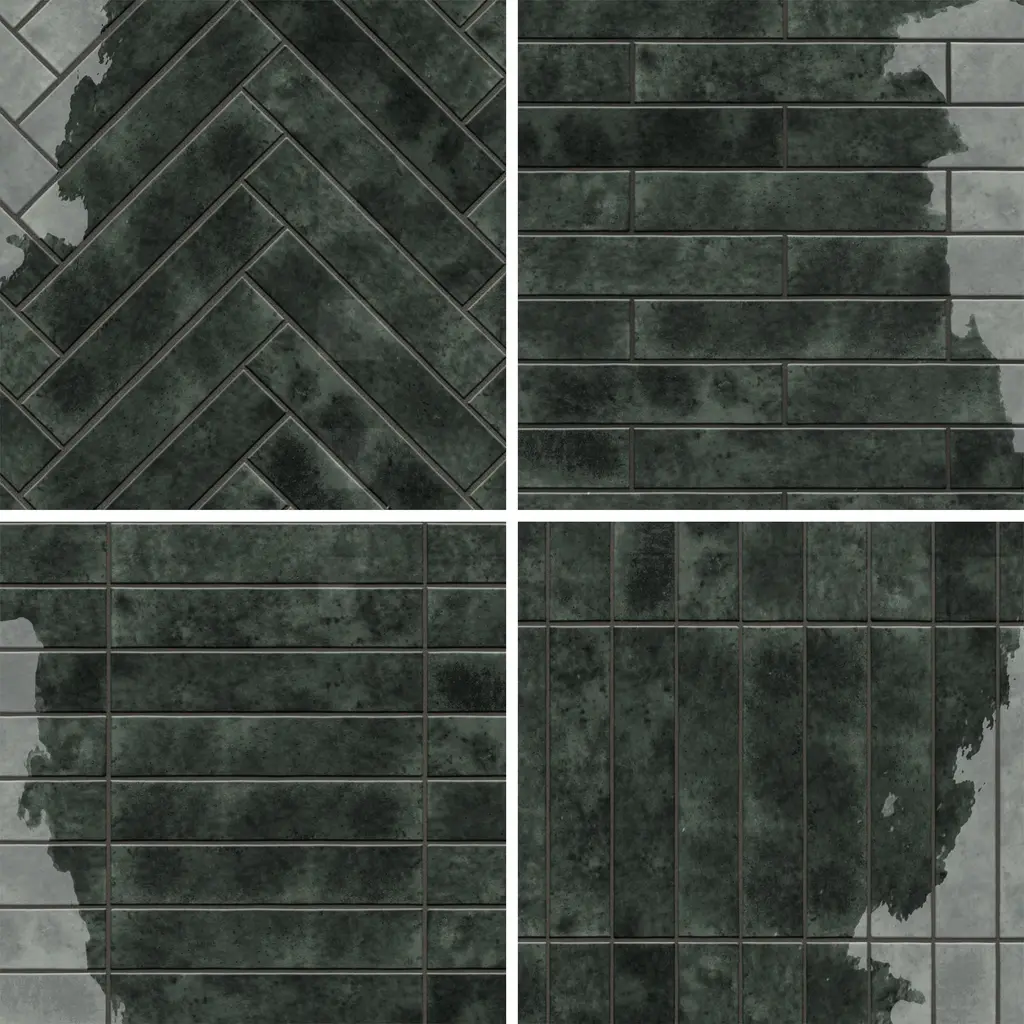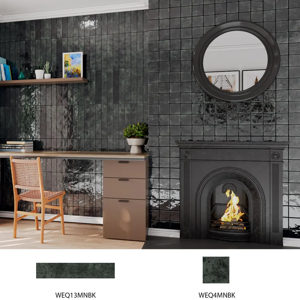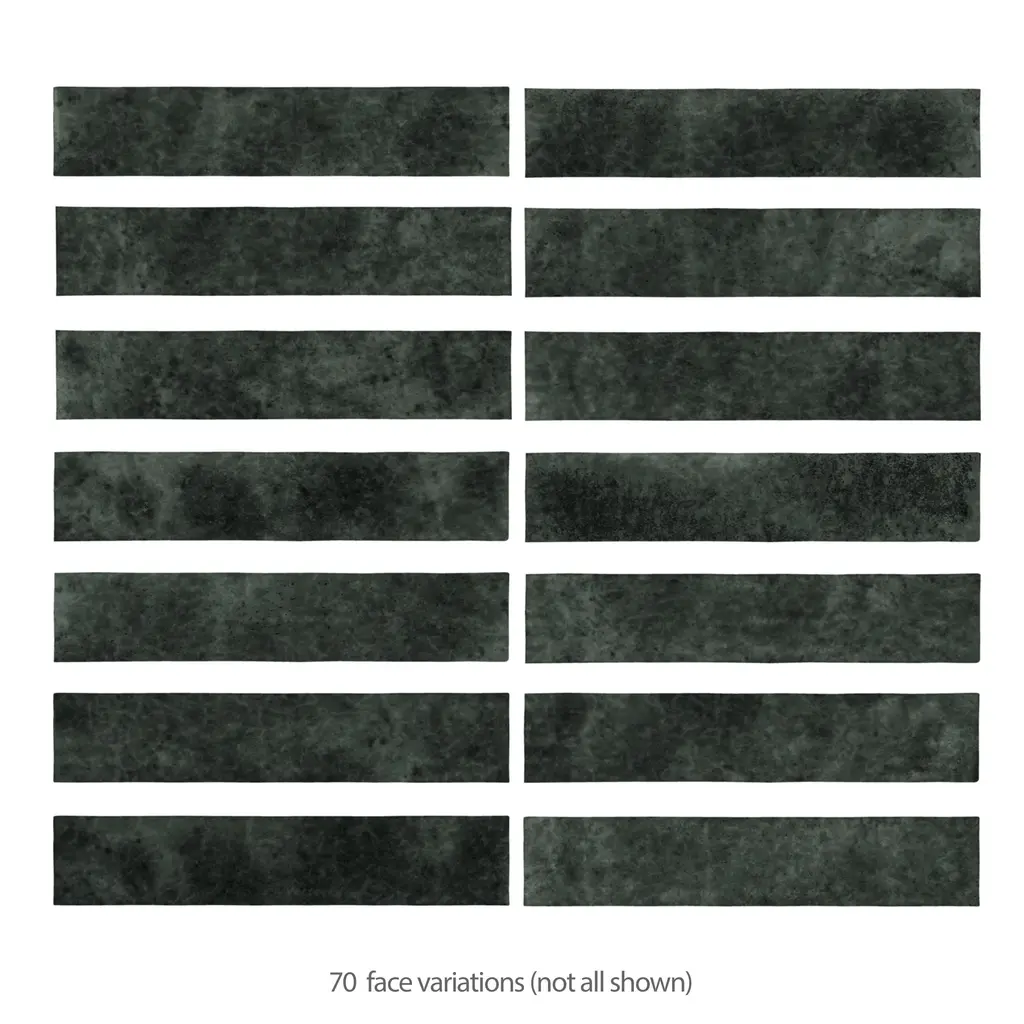 Replicating a handmade look, our Menorca Forest Black Ceramic Wall Tile features a smooth, glossy finish, providing decorative appeal that adapts to a variety of stylistic contexts. A tribute to Menorca's vibrant festivals and natural landscapes, these zellige-inspired white body ceramic tiles feature bold colors, dynamic patterns, and artisanal charm with irregular edges and crackle glazing, creating a lively, sophisticated atmosphere perfect for personalized, elegant spaces. Containing 70 different print variations that are randomly distributed throughout each case, this black rectangle tile offers a one-of-a-kind look. With its non-vitreous features, this tile is an ideal selection for indoor commercial and residential installations, including kitchens, bathrooms, backsplashes, showers, hallways and fireplace facades. This tile is a perfect choice on its own or paired with other products in the Menorca Collection. Tile is the better choice for your space! 6.44 square feet, 28 pieces per case. Case weight is 18.34 lbs. Grade 1, first-quality ceramic tile for wall use 2.5 in. width x 12.88 in. length x 0.33 in. thick Glazed, smooth finish with a high sheen and substantial variation in tone PEI Rating 0 is suitable for wall use only Non-Vitreous tiles have water absorption of more than 7% for indoor use DCOF value is not available for this product. Please reference the PEI and MOHS rating for installation. Not frost resistant Please note: A sample of this product may be a partial piece cut from the full size tile in order to provide an affordable and convenient way for customers to judge the quality and finish of this item. Samples are not returnable.