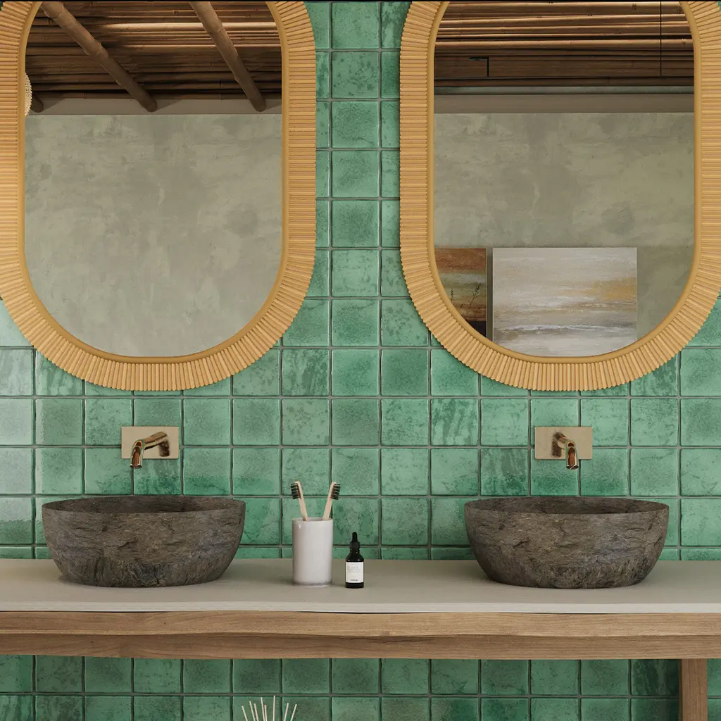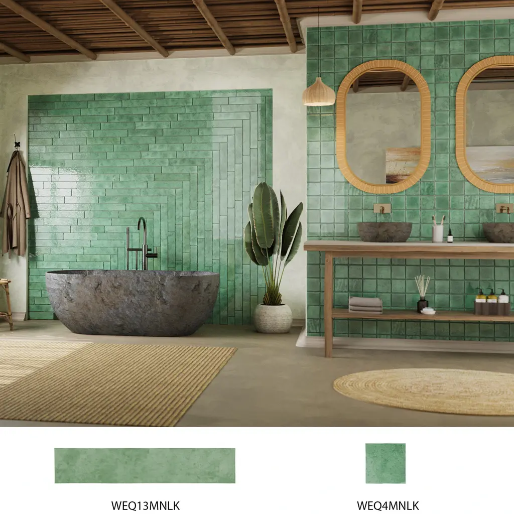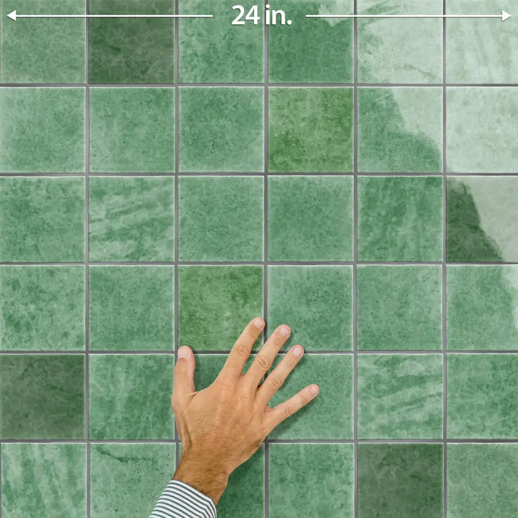 Replicating a handmade look, our Menorca Lake Ceramic Wall Tile features a smooth, glossy finish, providing decorative appeal that adapts to a variety of stylistic contexts. A tribute to Menorca's vibrant festivals and natural landscapes, these zellige-inspired white body ceramic tiles feature bold colors, dynamic patterns, and artisanal charm with irregular edges and crackle glazing, creating a lively, sophisticated atmosphere perfect for personalized, elegant spaces. Containing 70 different print variations that are randomly distributed throughout each case, this green square tile offers a one-of-a-kind look. With its non-vitreous features, this tile is an ideal selection for indoor commercial and residential installations, including kitchens, bathrooms, backsplashes, showers, hallways and fireplace facades. This tile is a perfect choice on its own or paired with other products in the Menorca Collection. Tile is the better choice for your space! 6.6 square feet, 60 pieces per case. Case weight is 18.34 lbs. Grade 1, first-quality ceramic tile for wall use 4 in. width x 4 in. length x 0.33 in. thick Glazed, smooth finish with a high sheen and substantial variation in tone PEI Rating 0 is suitable for wall use only Non-Vitreous tiles have water absorption of more than 7% for indoor use DCOF value is not available for this product. Please reference the PEI and MOHS rating for installation. Not frost resistant Please note: A sample of this product may be a partial piece cut from the full size tile in order to provide an affordable and convenient way for customers to judge the quality and finish of this item. Samples are not returnable.