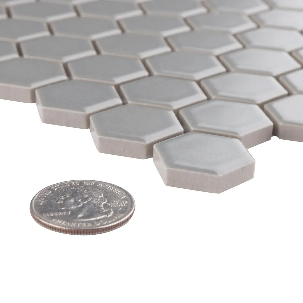 Transform your space into a tribute to retro design with our Metro Hex Matte Light Grey Porcelain Floor and Wall Mosaic Tile. As a modern deviation from the classic mosaic, this fresh option is a throwback to traditional retro design with a contemporary feel. Matte light grey hexagons are arranged on an interlocking mesh to create a seamless installation. This minimalistic geometric porcelain mosaic is unique yet simplistic enough to integrate into any design, ranging from traditional style renovations to modern home projects. Its ADA-compliant, impervious and frost resistant features make this an ideal tile for indoor and outdoor use, including backsplashes, bathrooms, showers, kitchens and fireplace facades. Tile is the better choice for your space. This tile is made from natural ingredients, making it a healthy choice as it is free from allergens, VOCs, formaldehyde and PVC.
