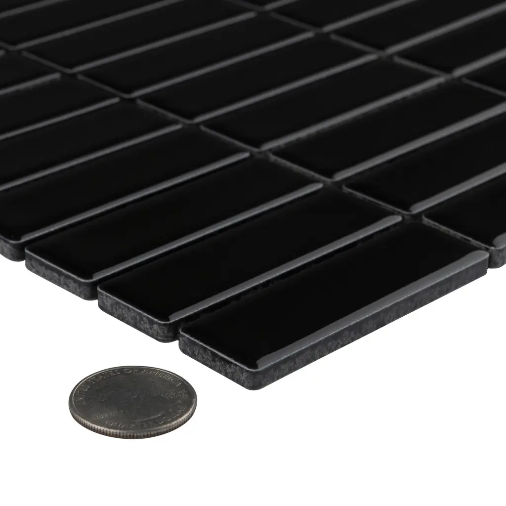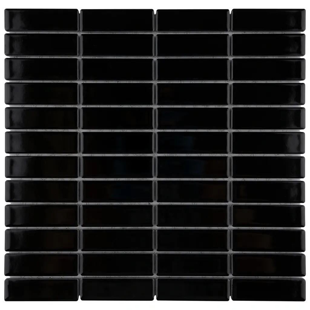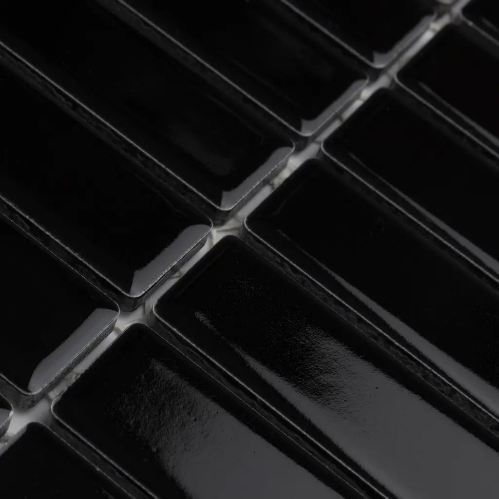 Our Metro Brick Stacked Glossy Black 11-1/2 in. x 11-3/4 in. Porcelain Floor and Wall Mosaic Tile instantly elevates spaces through a refreshing dose of timeless design. As an innovative twist on the classic mosaic, this floor and wall product is comprised of subway shaped chips in black with a smooth surface. Glossy rectangles are arranged in a stacked pattern on an interlocking mesh to create a unique and seamless installation. This minimalistic geometric porcelain mosaic is unique yet simplistic enough to integrate into any design, ranging from traditional style renovations to modern home projects. Its impervious and frost-resistant features make this an ideal tile for both indoor and outdoor residential use, including backsplashes, bathrooms, showers, kitchens and fireplace facades. This tile is a perfect choice on its own or paired with other products in the Metro Brick Collection. Tile is the better choice for your space. This tile is made from natural ingredients, making it a healthy choice as it is free from allergens, VOCs, formaldehyde and PVC.9.59 square feet, 10 pieces per case. Case weight is 26 lbs.Grade 1, first-quality porcelain tile for floor and wall use11.50 in. width x 11.75 in. length x 0.26 in. thickP.E.I. Rating II is suitable for all interior walls and light foot traffic such as powder roomsImpervious flooring has a water absorption of less than 0.5% for indoor and outdoor use and is frost resistantCompletely frost resistant for indoor or outdoor applications; use a latex-modified thinset for acceptable bond strengthResidential use onlyAll online orders for this item ship via parcel ground and may arrive in multiple boxes It is recommended you purchase a minimum of 10% overage to account for design cuts and patternsEach line item within an order will be selected from a single dye lot (color) and caliber (size), but multiple orders can result in receiving multiple dye lots and/or calibers. Please ensure that all tile for a project is obtained within one orderAll ceramic / porcelain and natural stone tile within coordinating series may be produced at different times which can cause variation in dye lot (color) and caliber (size) which is authentic to tileSamples are not returnablePlease note: A sample of this product may be a partial piece cut from the full size tile in order to provide an affordable and convenient way for customers to judge the quality and finish of this item. Samples are not returnable.