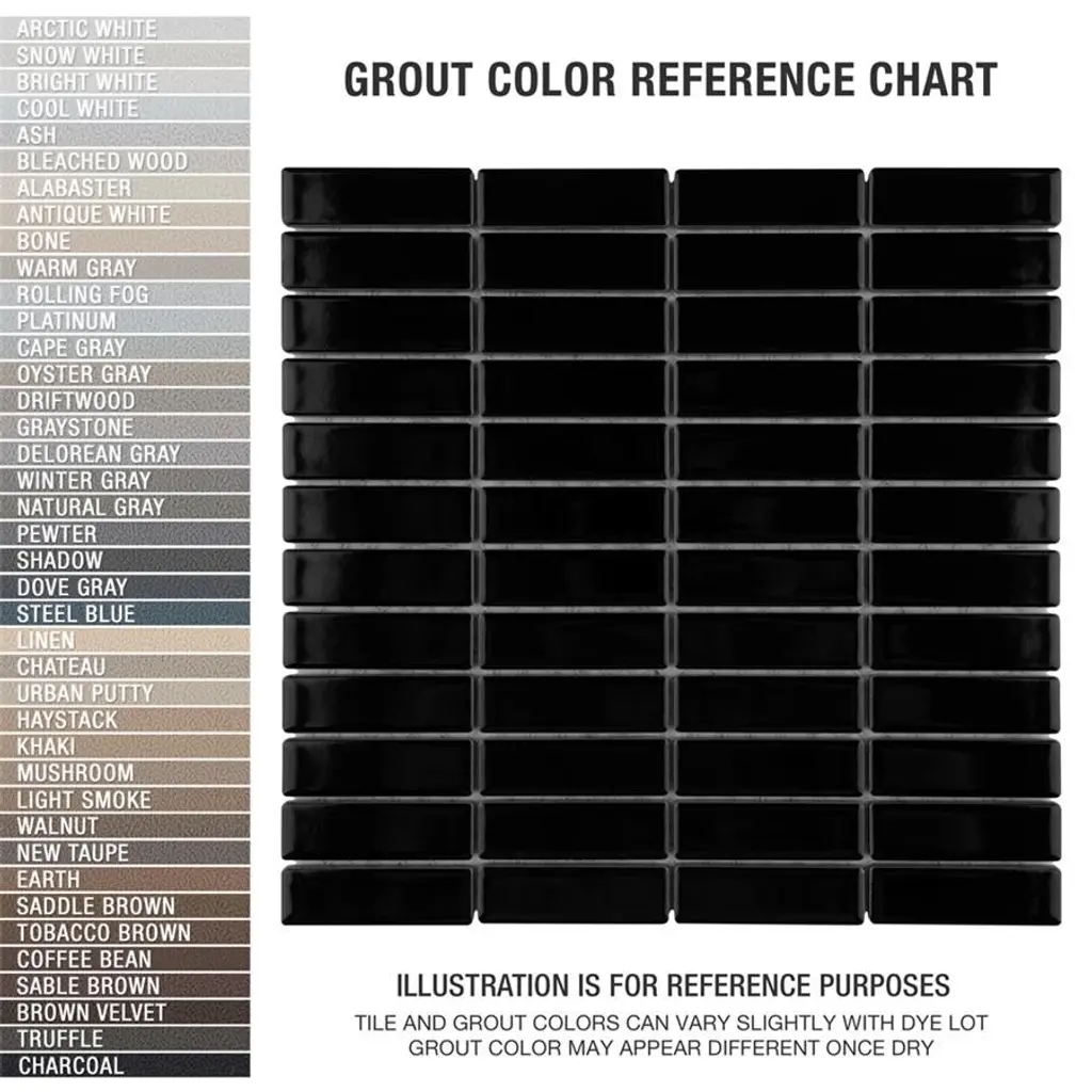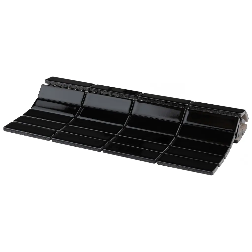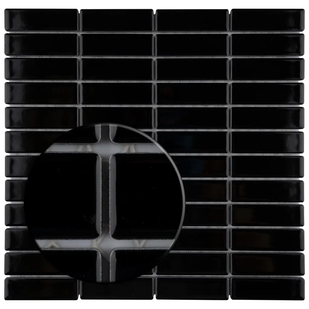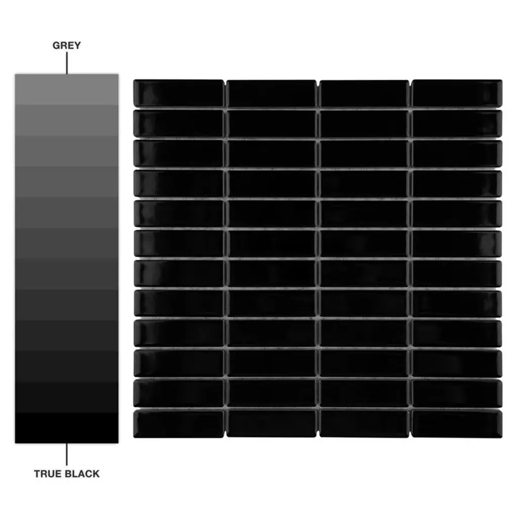 Our Metro Brick Stacked Glossy Black 11-1/2 in. x 11-3/4 in. Porcelain Floor and Wall Mosaic Tile instantly elevates spaces through a refreshing dose of timeless design. As an innovative twist on the classic mosaic, this floor and wall product is comprised of subway shaped chips in black with a smooth surface. Glossy rectangles are arranged in a stacked pattern on an interlocking mesh to create a unique and seamless installation. This minimalistic geometric porcelain mosaic is unique yet simplistic enough to integrate into any design, ranging from traditional style renovations to modern home projects. Its impervious and frost-resistant features make this an ideal tile for both indoor and outdoor residential use, including backsplashes, bathrooms, showers, kitchens and fireplace facades. This tile is a perfect choice on its own or paired with other products in the Metro Brick Collection. Tile is the better choice for your space. This tile is made from natural ingredients, making it a healthy choice as it is free from allergens, VOCs, formaldehyde and PVC.9.59 square feet, 10 pieces per case. Case weight is 26 lbs.Grade 1, first-quality porcelain tile for floor and wall use11.50 in. width x 11.75 in. length x 0.26 in. thickP.E.I. Rating II is suitable for all interior walls and light foot traffic such as powder roomsImpervious flooring has a water absorption of less than 0.5% for indoor and outdoor use and is frost resistantCompletely frost resistant for indoor or outdoor applications; use a latex-modified thinset for acceptable bond strengthResidential use onlyAll online orders for this item ship via parcel ground and may arrive in multiple boxes It is recommended you purchase a minimum of 10% overage to account for design cuts and patternsEach line item within an order will be selected from a single dye lot (color) and caliber (size), but multiple orders can result in receiving multiple dye lots and/or calibers. Please ensure that all tile for a project is obtained within one orderAll ceramic / porcelain and natural stone tile within coordinating series may be produced at different times which can cause variation in dye lot (color) and caliber (size) which is authentic to tileSamples are not returnablePlease note: A sample of this product may be a partial piece cut from the full size tile in order to provide an affordable and convenient way for customers to judge the quality and finish of this item. Samples are not returnable.