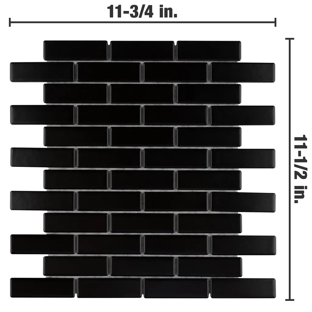 Our Metro Brick Subway Matte Black Porcelain Floor and Wall Mosaic Tile instantly elevates spaces through a refreshing dose of timeless design. As an innovative twist on the classic mosaic, this floor and wall product is comprised of subway shaped chips in black with a smooth surface. Matte rectangles are arranged on an interlocking mesh to create a seamless installation. This minimalistic geometric porcelain mosaic is unique yet simplistic enough to integrate into any design, ranging from traditional style renovations to modern home projects. Its impervious and frost-resistant features make this an ideal tile for both indoor and outdoor residential use, including backsplashes, bathrooms, showers, kitchens and fireplace facades. This tile is a perfect choice on its own or paired with other products in the Metro Brick Collection. Tile is the better choice for your space. This tile is made from natural ingredients, making it a healthy choice as it is free from allergens, VOCs, formaldehyde and PVC. 9.6 square feet, 10 pieces per case. Case weight is 25 lbs. Grade 1, first-quality porcelain tile for floor and wall use 11.5 in. width x 11.75 in. length x 0.27 in. thick mesh-mounted mosaic Glazed, smooth finish with a low sheen and uniform appearance in tone PEI Rating II is suitable for all interior walls and light foot traffic such as powder rooms Impervious tiles have a water absorption of less than 0.5% for indoor and outdoor use and are frost resistant This tile has no available COF wet rating. This tile is not ADA approved for slip resistance. Completely frost resistant for indoor or outdoor applications; use a latex-modified thinset for acceptable bond strength Please note: A sample of this product may be a partial piece cut from the full size tile in order to provide an affordable and convenient way for customers to judge the quality and finish of this item. Samples are not returnable.